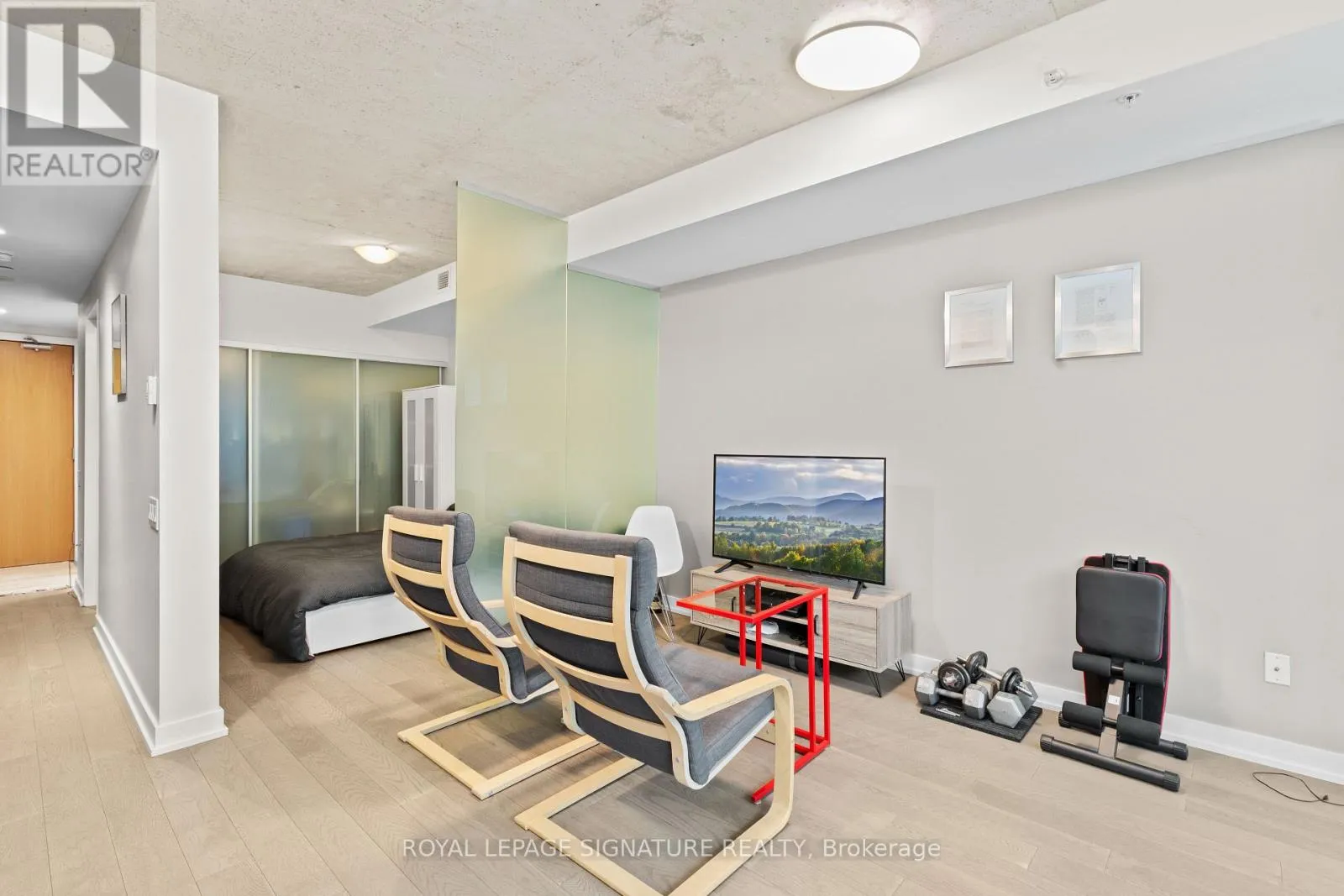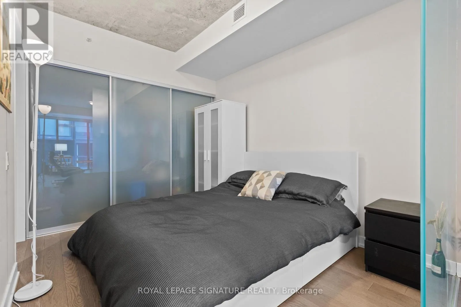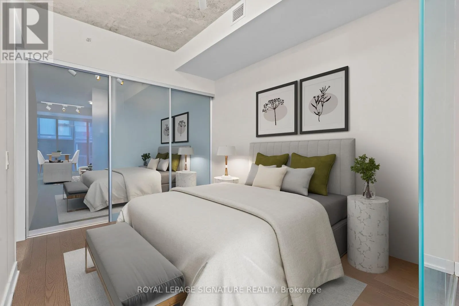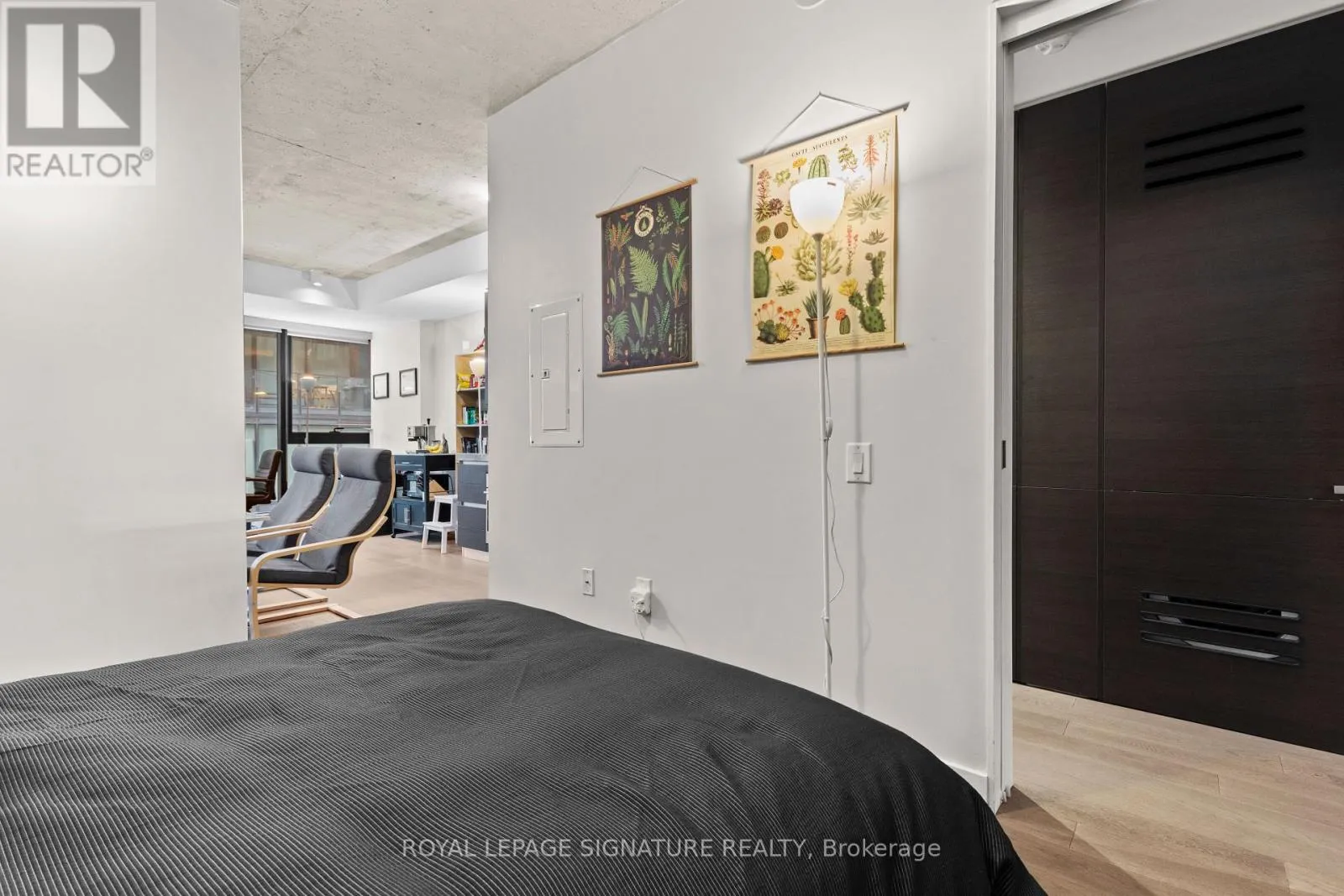 King & Bathurst Welcome to Unit 406 at the Thompson Residences, ideally situated in the heart of Toronto's iconic King West neighbourhood. This boutique one-bedroom suite is the perfect opportunity for a first-time buyer or investor looking for style, space, and location. One of the largest one-bedroom layouts in the building, it offers 583 square feet of functional living space with floor-to-ceiling windows and custom coverings, a sleek Scavolini kitchen with Euro-style appliances, exposed 9-foot concrete ceilings, beautiful engineered hardwood flooring, and a spa-inspired bathroom with a rain shower. Ample in-suite storage and a dedicated locker provide practical convenience. The open-concept living and dining area is ideal for both everyday living and entertaining. Steps to top restaurants, shopping, parks, and transit, this suite is perfectly positioned to experience everything Toronto has to offer. Priced to sell, don't miss this opportunity! (id:27476)