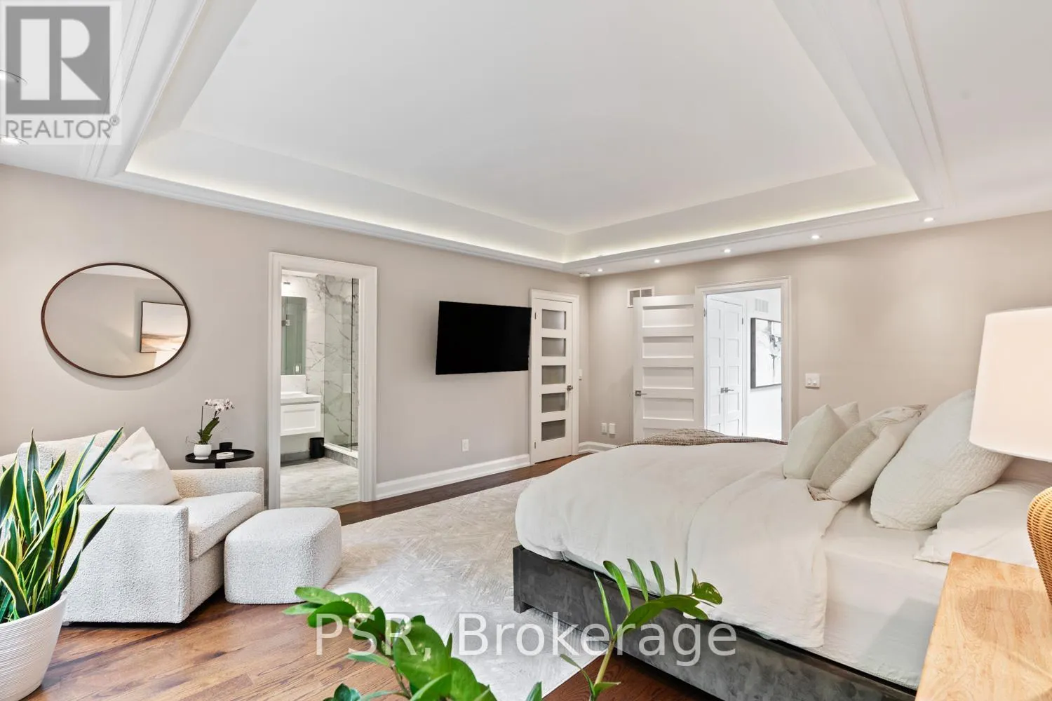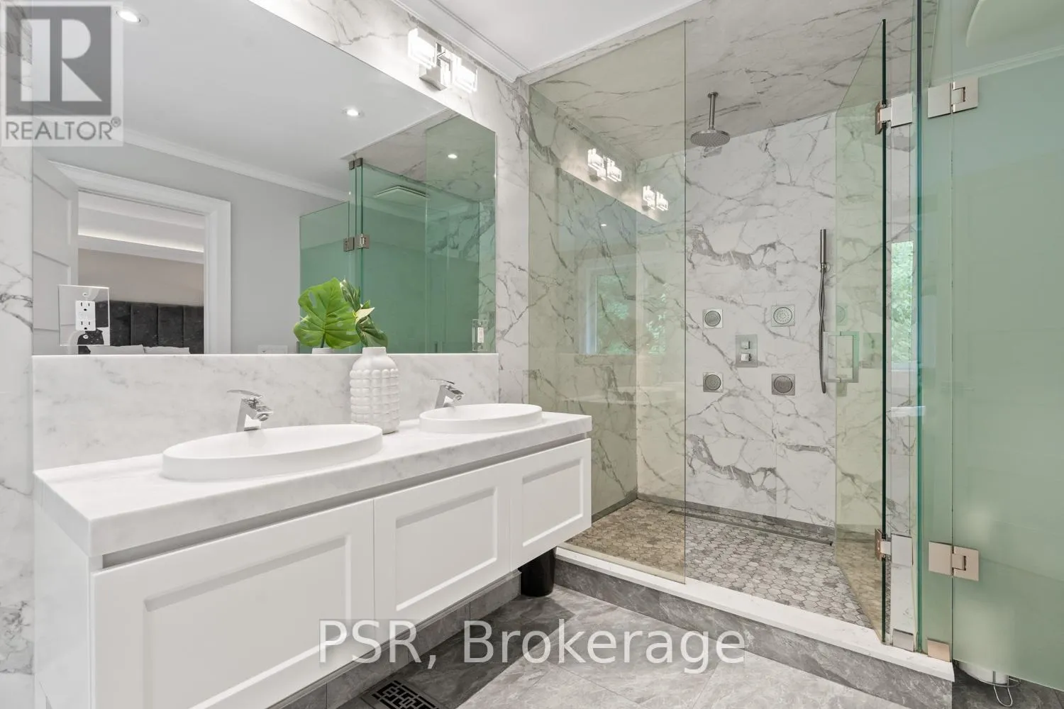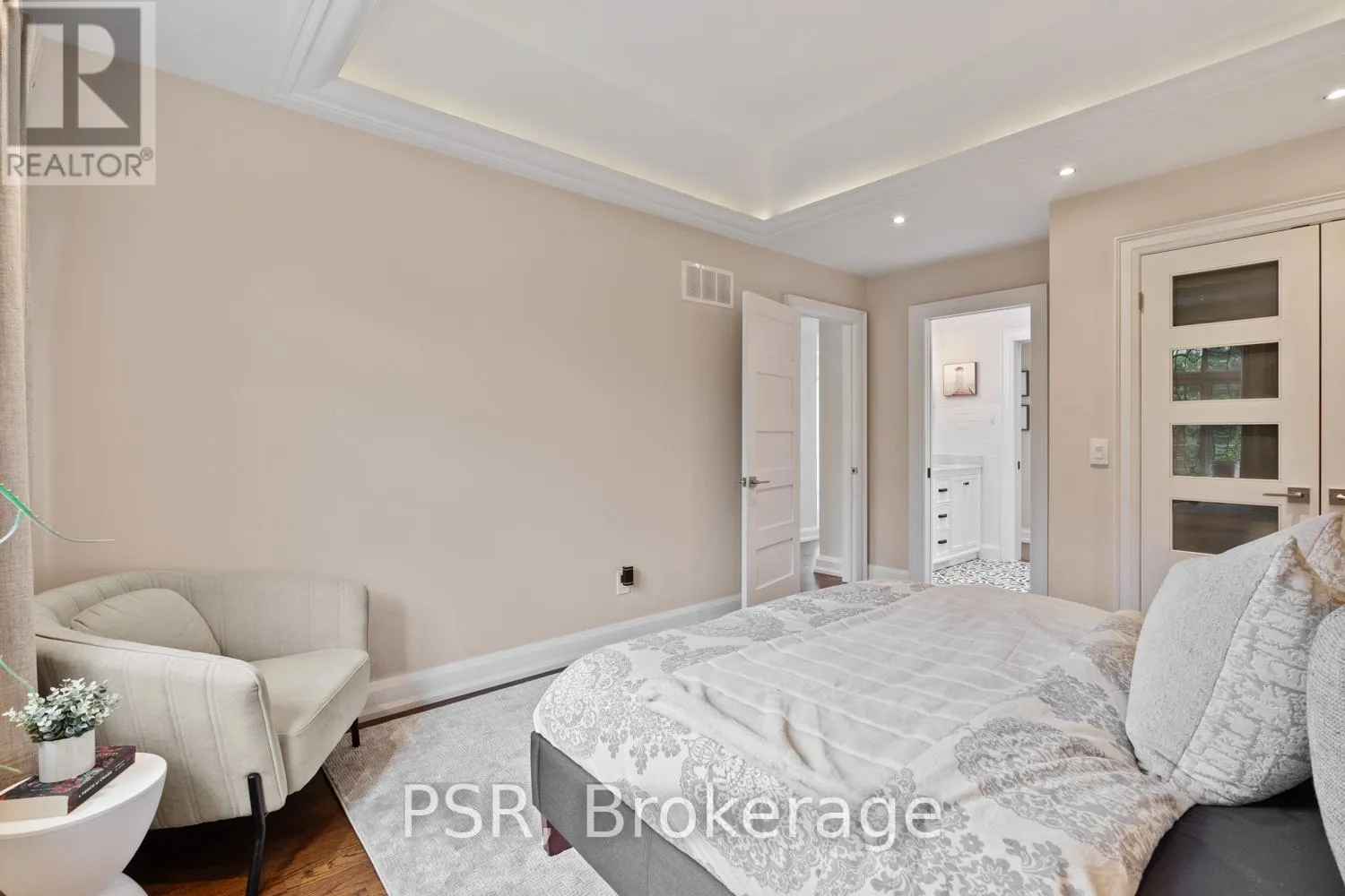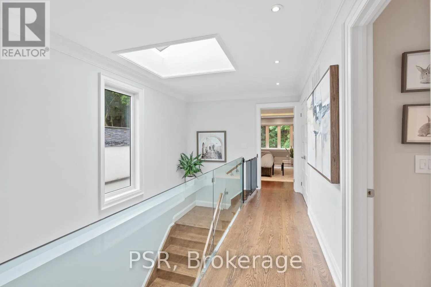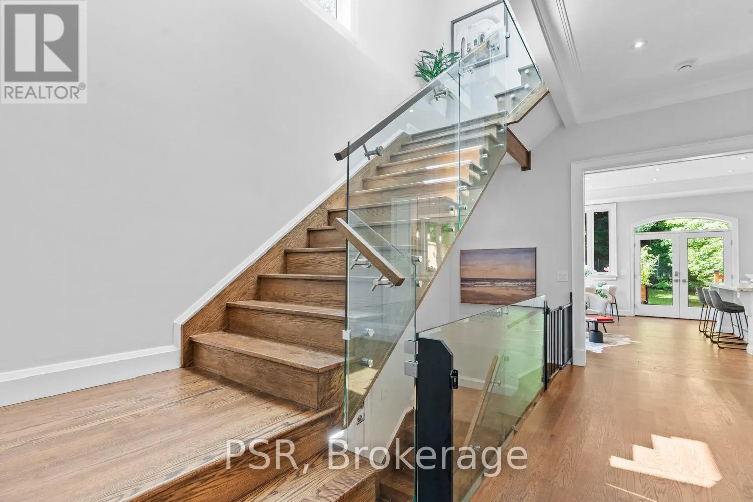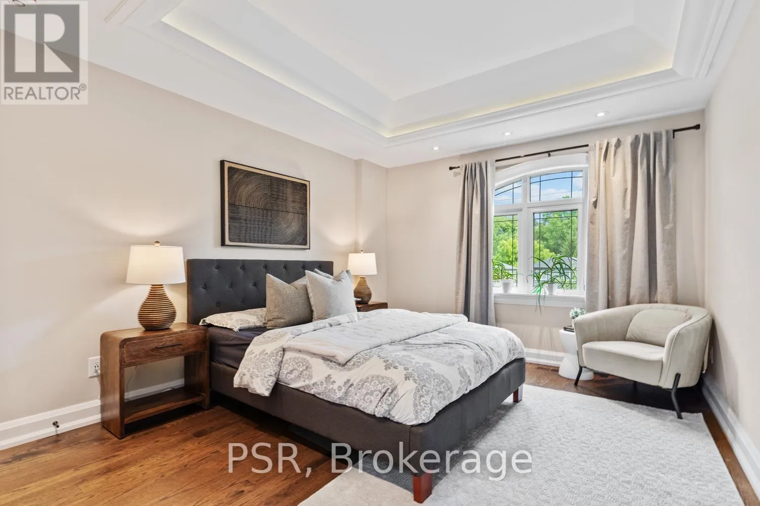 Bloor / South Kingsway This stately Swansea residence, gracing an impressive 190ft-deep lot, offering nearly 4000 square ft of luxurious living space, is a masterpiece of modern sophistication and precision craftsmanship. One of Toronto's most sought-after communities, the vibrant gardens lead to an exquisite granite facade, accentuated by a warm and commanding red-oak door beneath an archway. Step inside, and experience the tranquility of triple-glazed windows, the skylight illuminating the stairwell, the sleek glass railings, the solid oak and porcelain floors, the meticulous millwork, and the recessed ceilings. The main floor's soaring 10ft-ceilings and intimate fireplace enhance the spacious, well-defined living and dining rooms. The resplendent kitchen is a culinary haven, featuring quartz countertops, a grand centre island, an origami-inspired backsplash, a 6-burner gas range, and a fireplace warming the kitchen-side dinette and inglenook. Custom 8ft pocket doors transform the kitchen into a private drawing room, adding an elegance to evening gatherings. Upstairs, every bedroom boasts 9ft ceilings, and every bathroom is appointed with contemporary flair. The palatial primary suite is a serene retreat, complete with a customized walk-in closet with a skylight, micro-forest views, and a lavish 5-piece ensuite designed to pamper and impress. Downstairs offers 8ft ceilings, in-floor heating, a separate entrance, a stylish 4-piece bath, two expansive rec rooms-with one designed for effortless division for more rooms. A roughed-in kitchen ready to accommodate caterers, a nanny, or visiting friends and family. The rear grounds are a true oasis, with towering canopies, open skies, playful chipmunks, and blue jay songs. Enjoy the gas-line barbecue on the deck, terrace lounging, and fireside dining. This urban sanctuary is surrounded by iconic parks, serene waterside trails, Bloor West Village, the Cheese Boutique and the prestigious Swansea Public School and Ursula Franklin Academy. (id:27476)