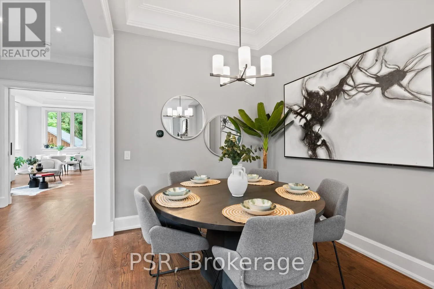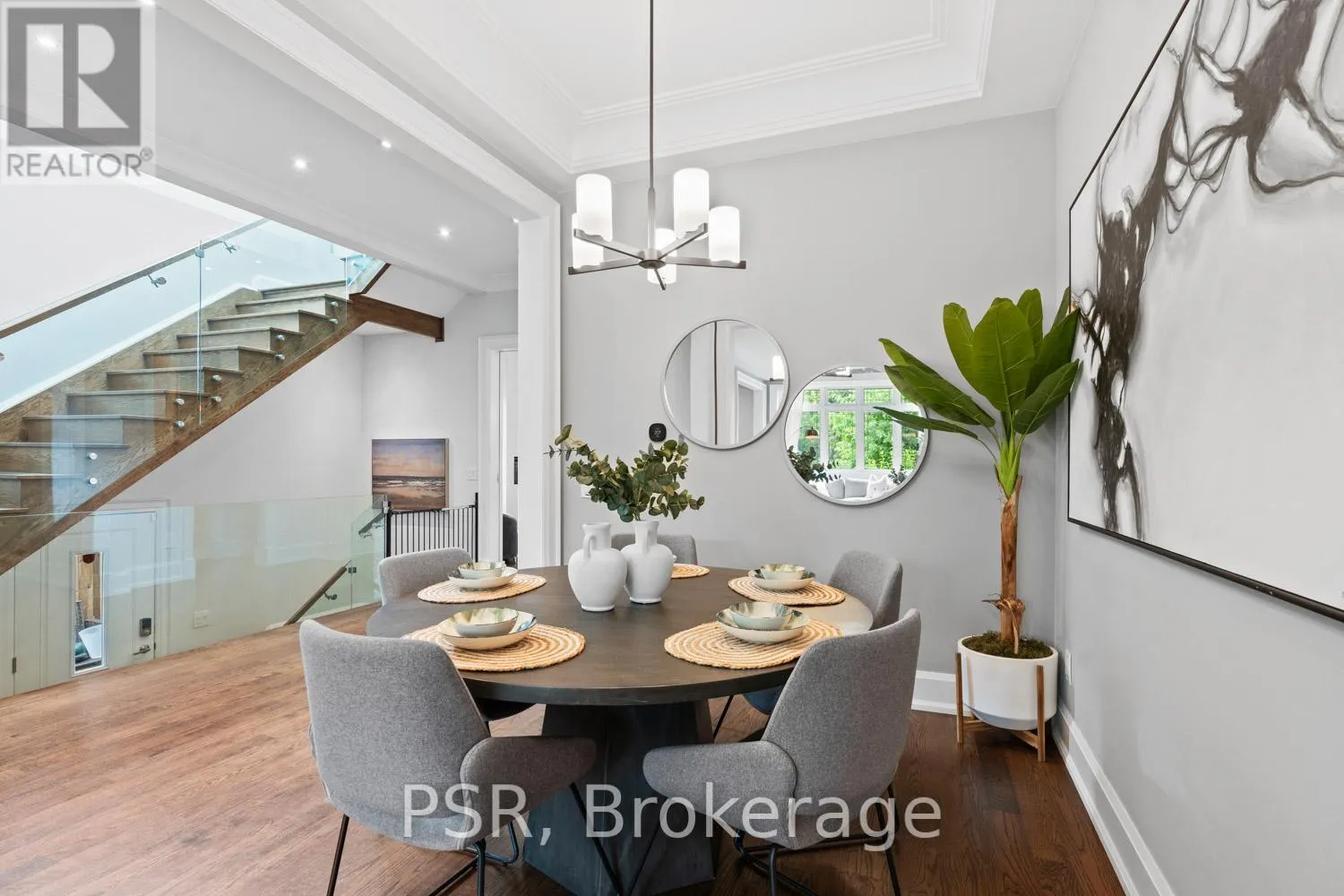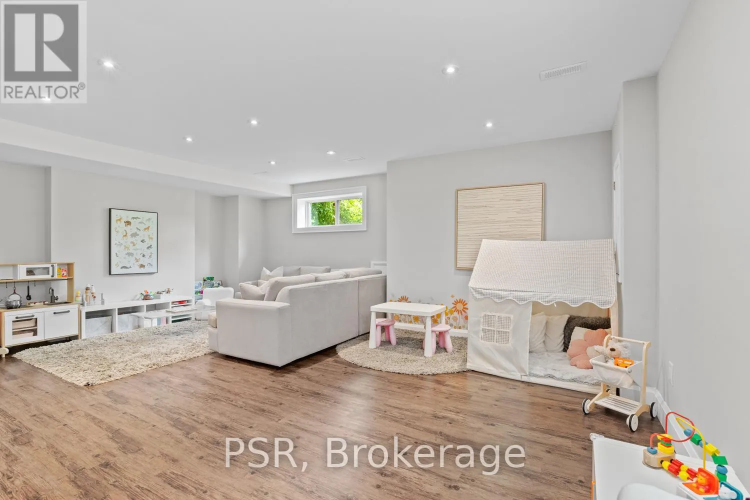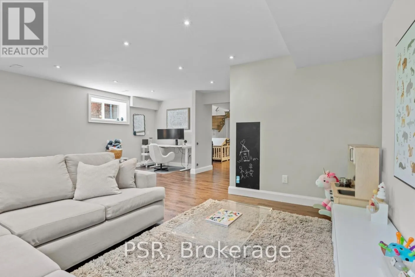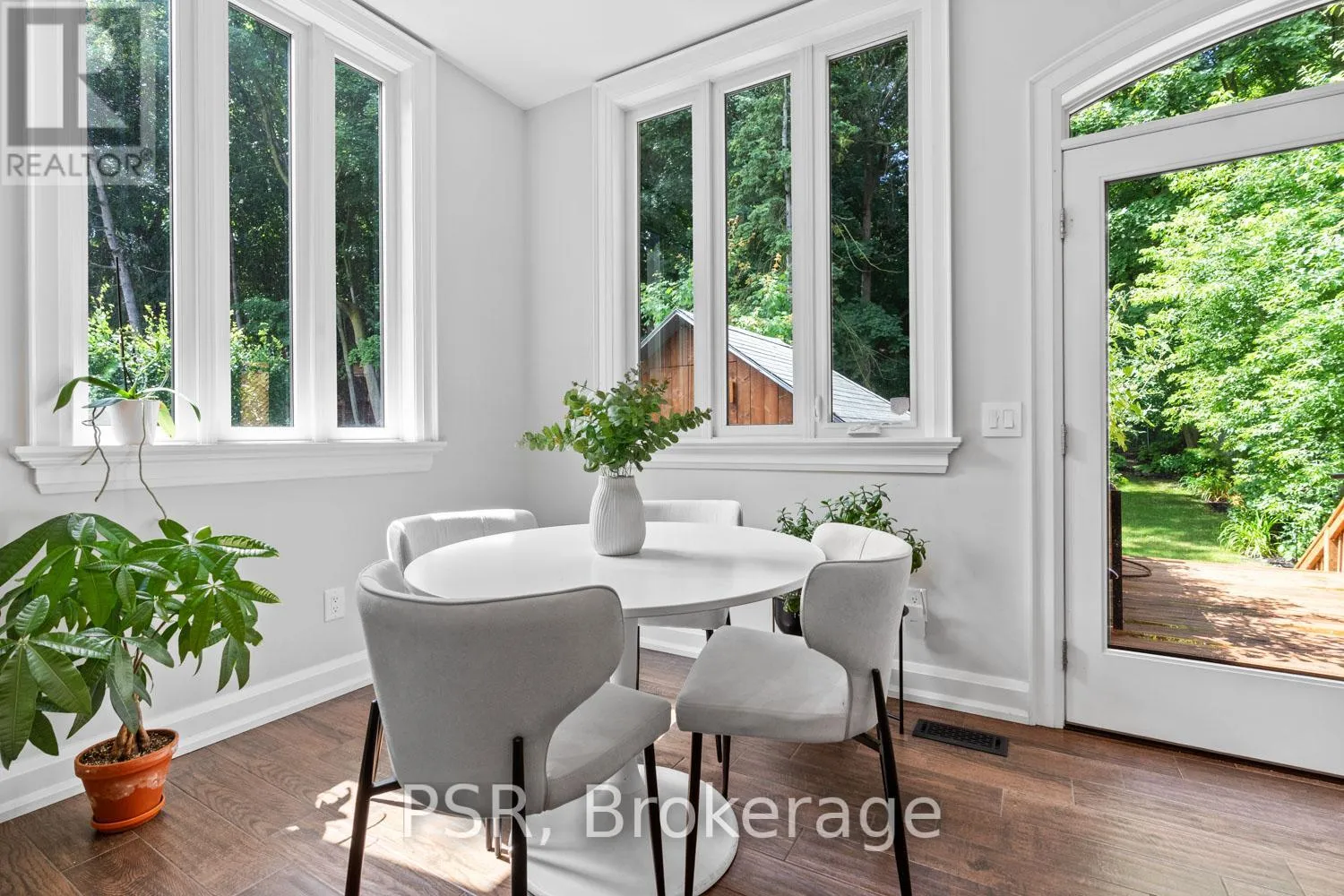 Bloor / South Kingsway This stately Swansea residence, gracing an impressive 190ft-deep lot, offering nearly 4000 square ft of luxurious living space, is a masterpiece of modern sophistication and precision craftsmanship. One of Toronto's most sought-after communities, the vibrant gardens lead to an exquisite granite facade, accentuated by a warm and commanding red-oak door beneath an archway. Step inside, and experience the tranquility of triple-glazed windows, the skylight illuminating the stairwell, the sleek glass railings, the solid oak and porcelain floors, the meticulous millwork, and the recessed ceilings. The main floor's soaring 10ft-ceilings and intimate fireplace enhance the spacious, well-defined living and dining rooms. The resplendent kitchen is a culinary haven, featuring quartz countertops, a grand centre island, an origami-inspired backsplash, a 6-burner gas range, and a fireplace warming the kitchen-side dinette and inglenook. Custom 8ft pocket doors transform the kitchen into a private drawing room, adding an elegance to evening gatherings. Upstairs, every bedroom boasts 9ft ceilings, and every bathroom is appointed with contemporary flair. The palatial primary suite is a serene retreat, complete with a customized walk-in closet with a skylight, micro-forest views, and a lavish 5-piece ensuite designed to pamper and impress. Downstairs offers 8ft ceilings, in-floor heating, a separate entrance, a stylish 4-piece bath, two expansive rec rooms-with one designed for effortless division for more rooms. A roughed-in kitchen ready to accommodate caterers, a nanny, or visiting friends and family. The rear grounds are a true oasis, with towering canopies, open skies, playful chipmunks, and blue jay songs. Enjoy the gas-line barbecue on the deck, terrace lounging, and fireside dining. This urban sanctuary is surrounded by iconic parks, serene waterside trails, Bloor West Village, the Cheese Boutique and the prestigious Swansea Public School and Ursula Franklin Academy. (id:27476)