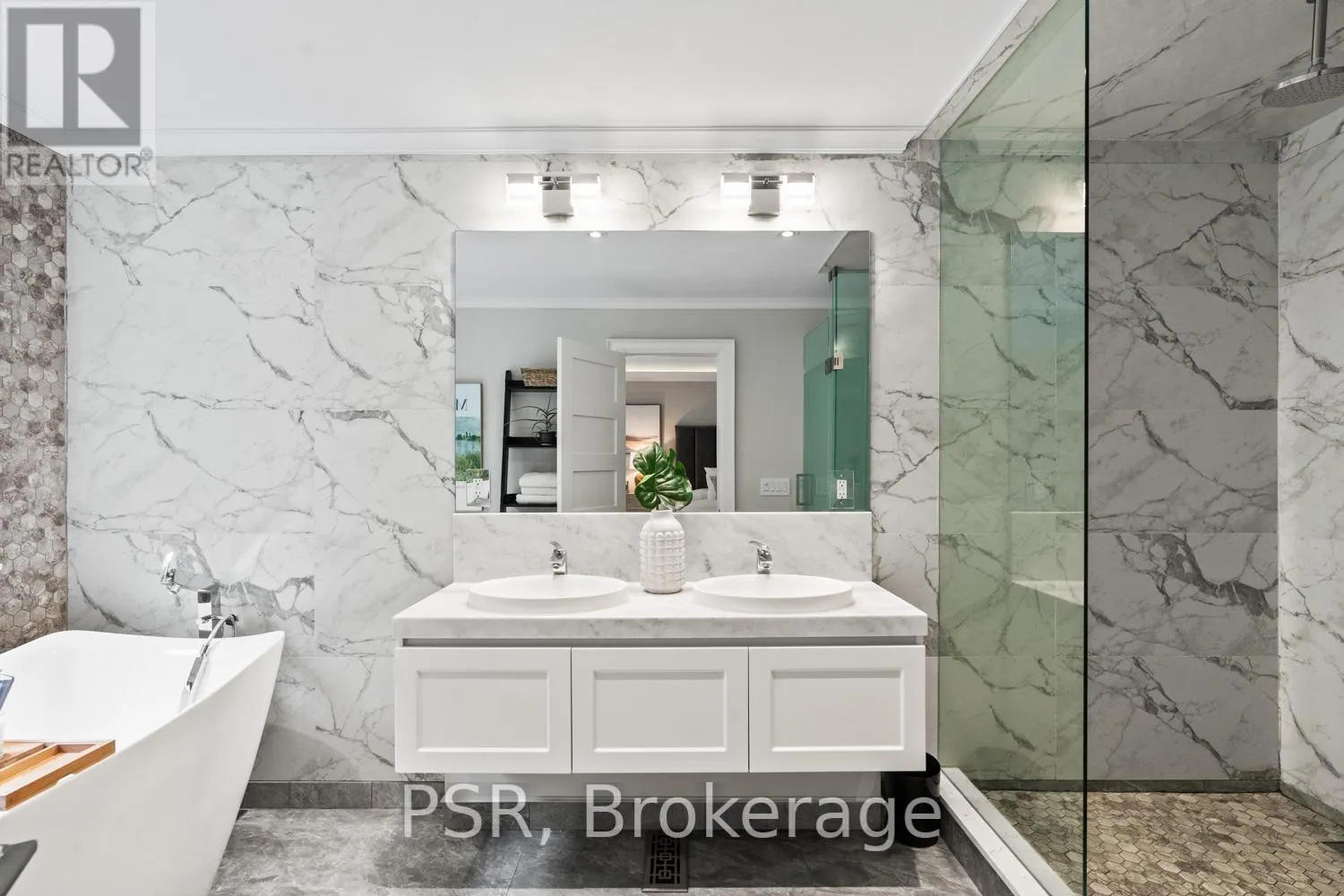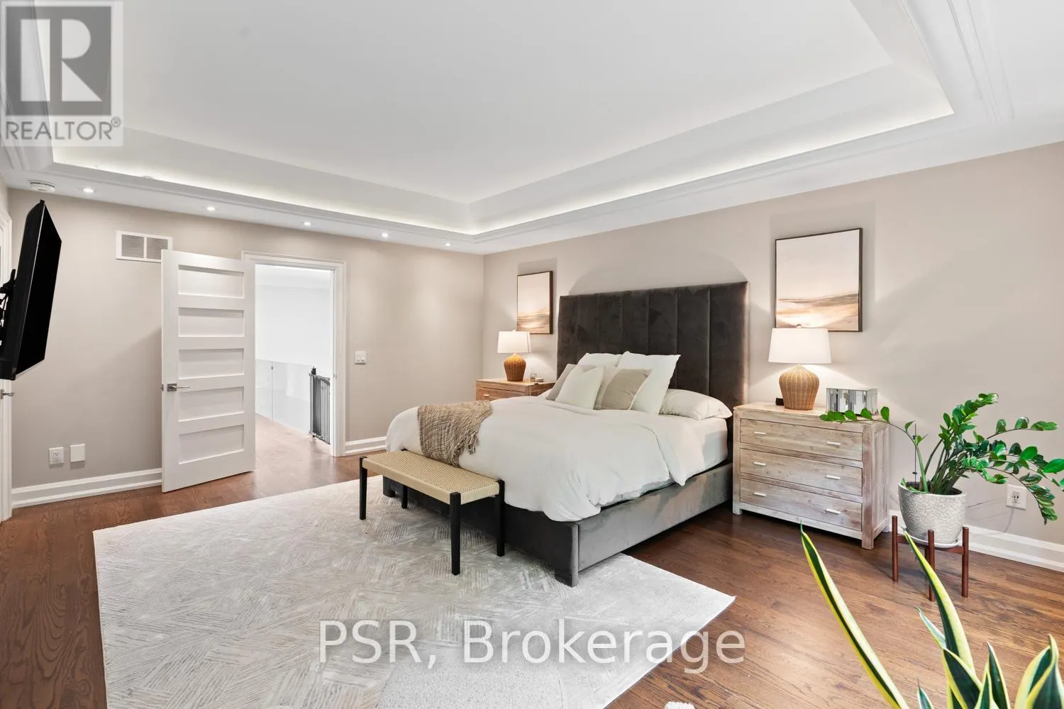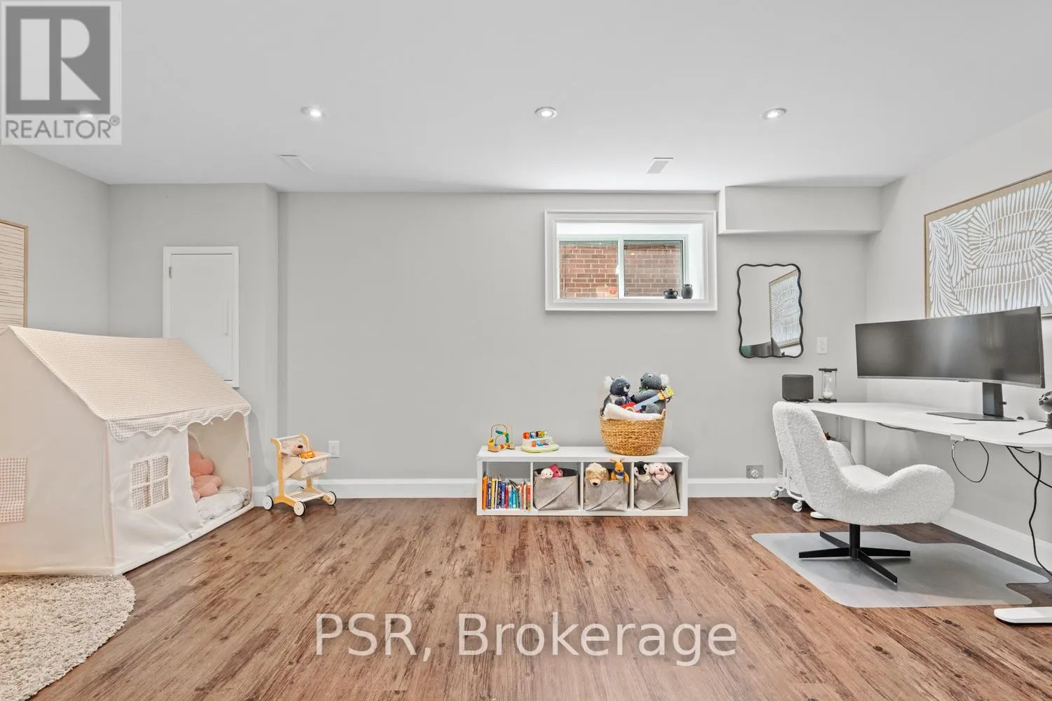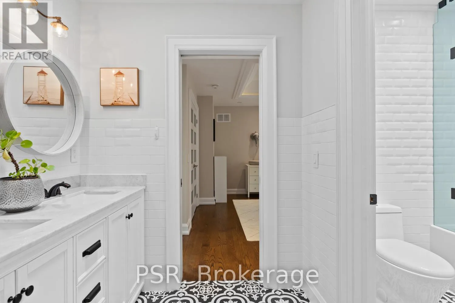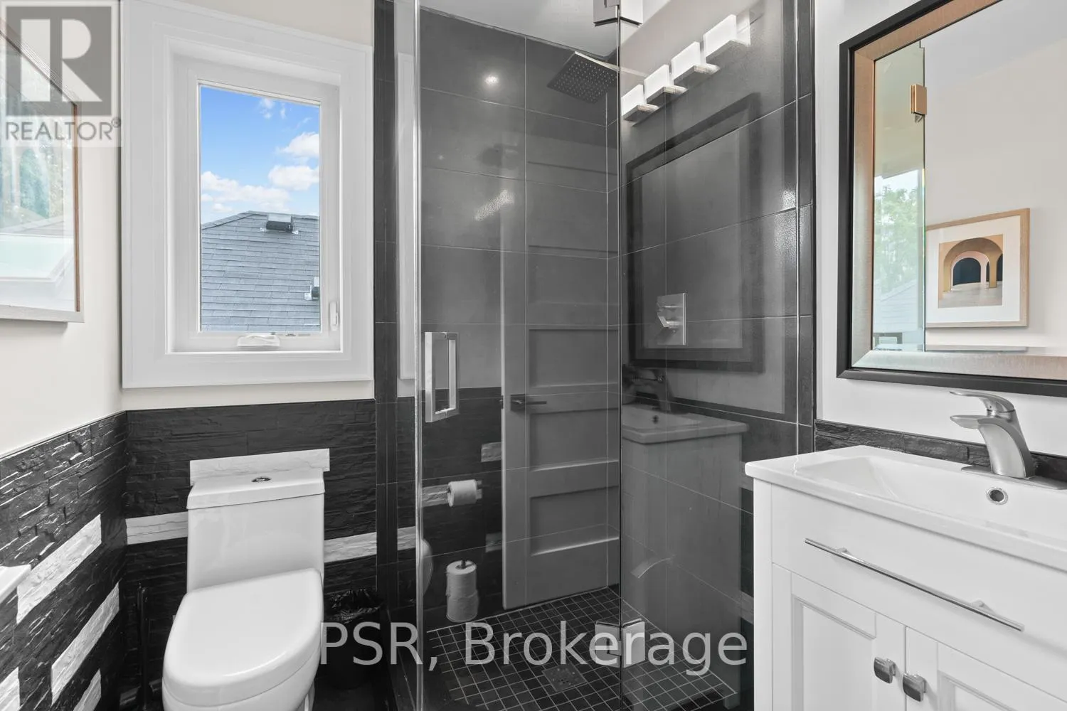 Bloor / South Kingsway This stately Swansea residence, gracing an impressive 190ft-deep lot, offering nearly 4000 square ft of luxurious living space, is a masterpiece of modern sophistication and precision craftsmanship. One of Toronto's most sought-after communities, the vibrant gardens lead to an exquisite granite facade, accentuated by a warm and commanding red-oak door beneath an archway. Step inside, and experience the tranquility of triple-glazed windows, the skylight illuminating the stairwell, the sleek glass railings, the solid oak and porcelain floors, the meticulous millwork, and the recessed ceilings. The main floor's soaring 10ft-ceilings and intimate fireplace enhance the spacious, well-defined living and dining rooms. The resplendent kitchen is a culinary haven, featuring quartz countertops, a grand centre island, an origami-inspired backsplash, a 6-burner gas range, and a fireplace warming the kitchen-side dinette and inglenook. Custom 8ft pocket doors transform the kitchen into a private drawing room, adding an elegance to evening gatherings. Upstairs, every bedroom boasts 9ft ceilings, and every bathroom is appointed with contemporary flair. The palatial primary suite is a serene retreat, complete with a customized walk-in closet with a skylight, micro-forest views, and a lavish 5-piece ensuite designed to pamper and impress. Downstairs offers 8ft ceilings, in-floor heating, a separate entrance, a stylish 4-piece bath, two expansive rec rooms-with one designed for effortless division for more rooms. A roughed-in kitchen ready to accommodate caterers, a nanny, or visiting friends and family. The rear grounds are a true oasis, with towering canopies, open skies, playful chipmunks, and blue jay songs. Enjoy the gas-line barbecue on the deck, terrace lounging, and fireside dining. This urban sanctuary is surrounded by iconic parks, serene waterside trails, Bloor West Village, the Cheese Boutique and the prestigious Swansea Public School and Ursula Franklin Academy. (id:27476)