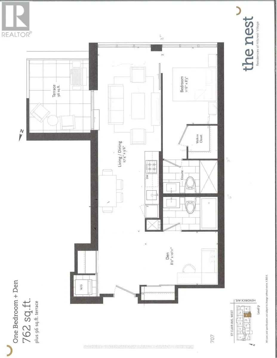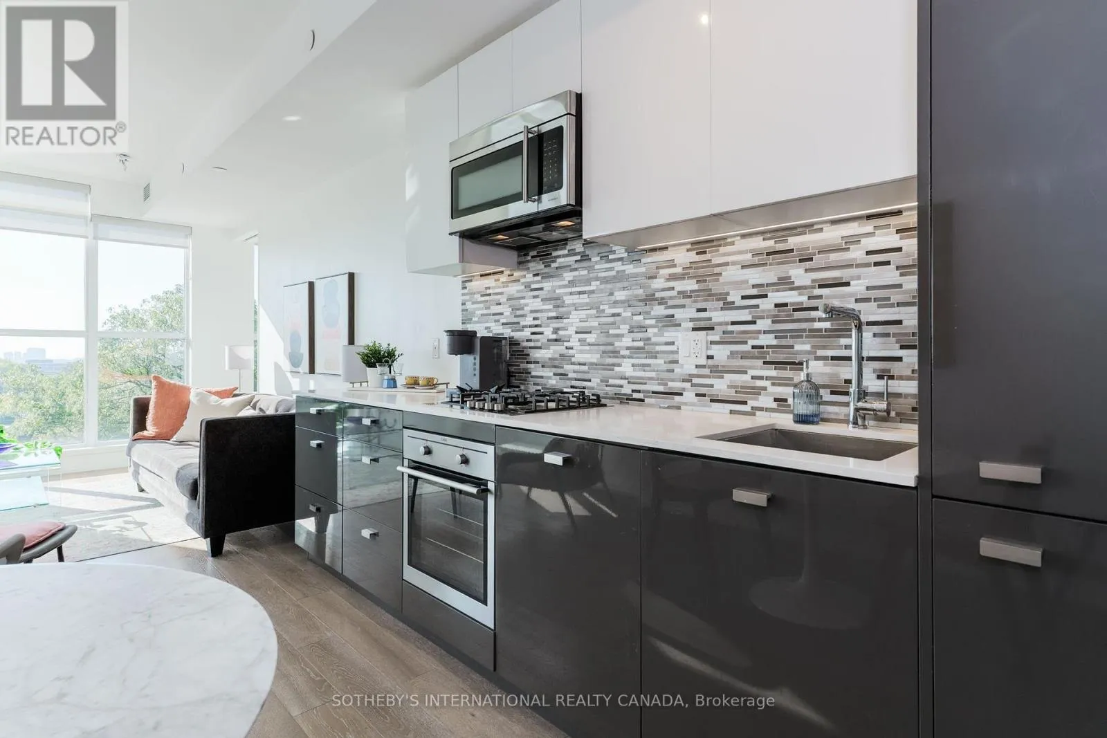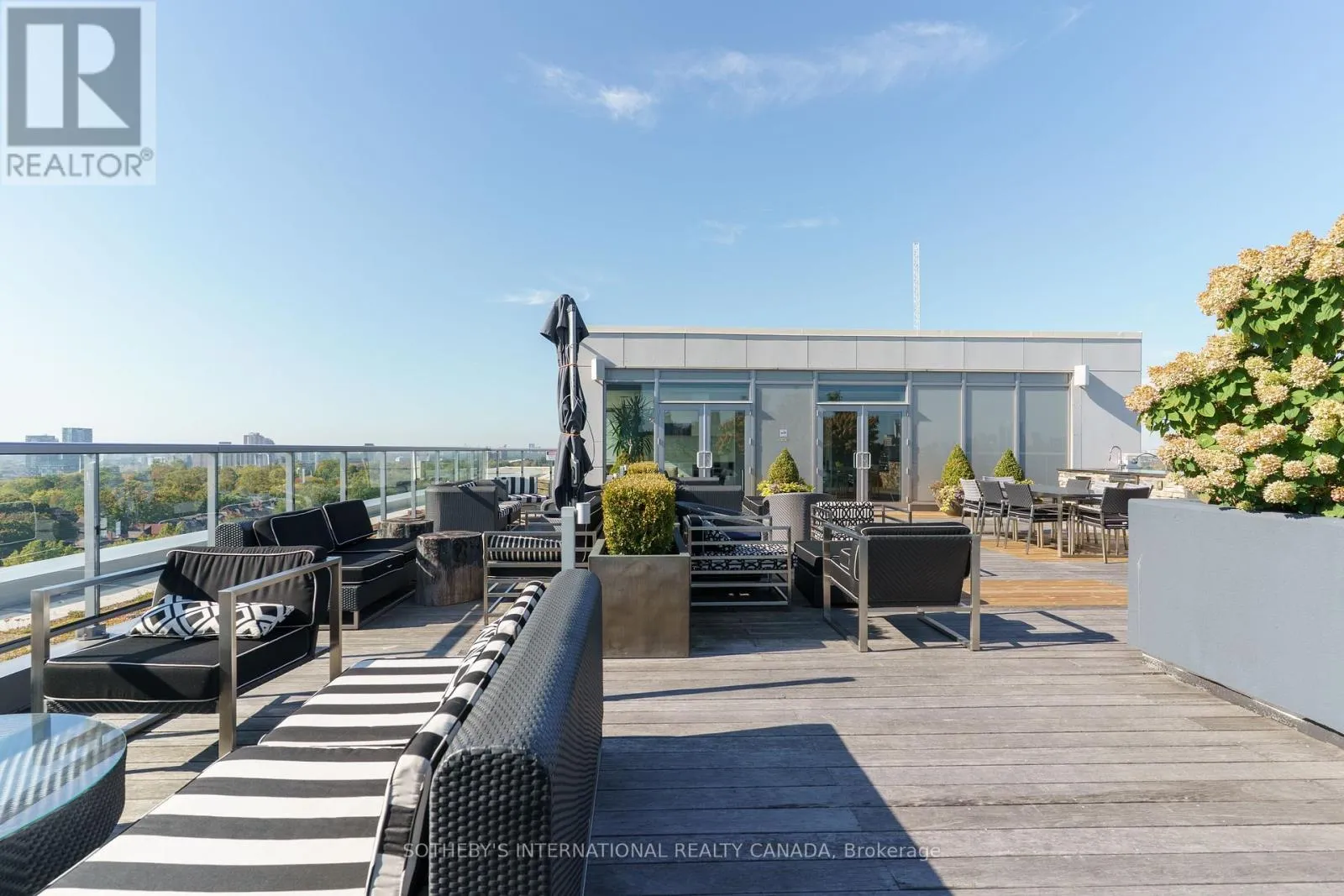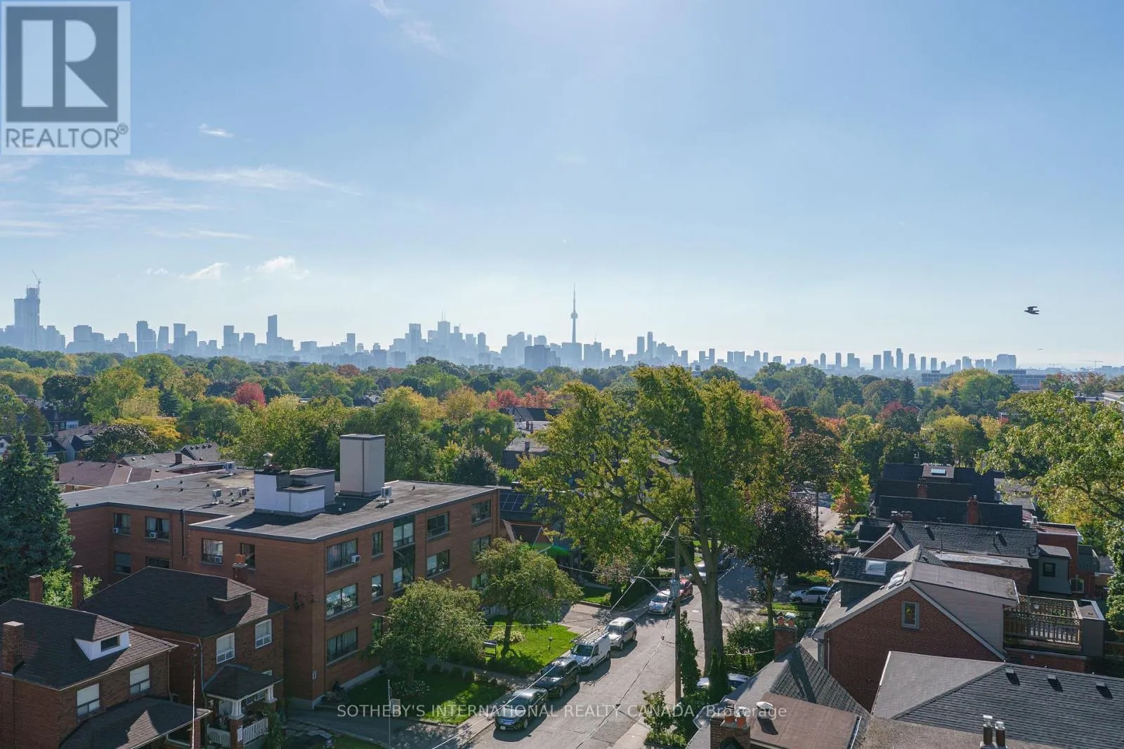 Cross Streets: St. Clair Avenue West at Winona. ** Directions: St. Clair Avenue West, west of Christie street,on north side. Welcome to The Nest Condos, Modern Living in the Heart of Hillcrest Village/Wychwood, This immaculate 1-bedroom + den, 2 bathroom suite is nestled in one of Toronto's most vibrantand walkable neighbourhoods. Beautifully maintained, the condo features a spacious, open-concept layout with bright south-facing exposure that floods the space with natural light. Enjoy stunning views of the CN Tower and city skyline from both your living room window and private 96 sq.ft. balcony. The sleek, modern kitchen is outfitted with built-in European appliances, quartz countertops, an upgraded backsplash, and a gas cooktop-perfect for home chefs. Step out onto the oversized balcony, equipped with a gas BBQ hookup, ideal for outdoor dining and entertaining. The primary bedroom retreat includes a stylish 3-piece ensuite and a custom built-in closet. A separate Den and second full bathroom offer excellent versatility-perfect for guests, remote work, or additional living space. Residents enjoy access to premium amenities, including one of thecity's best rooftop party rooms and patios with panoramic views. Located just steps from localshops, cafés, restaurants, bakeries, and the year-round Wychwood Barns farmers' market. You're also minutes from Corso Italia and within easy reach of public transit just 12 minutes to St.Clair West Station and 22 minutes to Yonge-St. Clair. This is a rare opportunity to own in a highly desirable boutique building in one of Toronto's most dynamic communities. Maintenance fees include gas and high-speed internet. (id:27476)