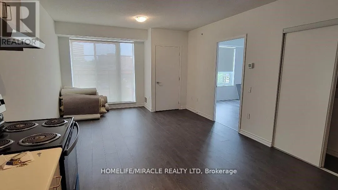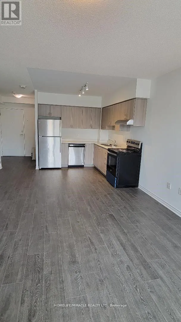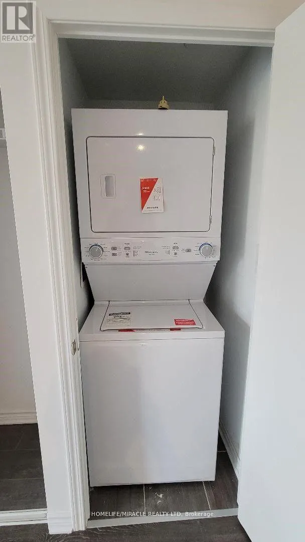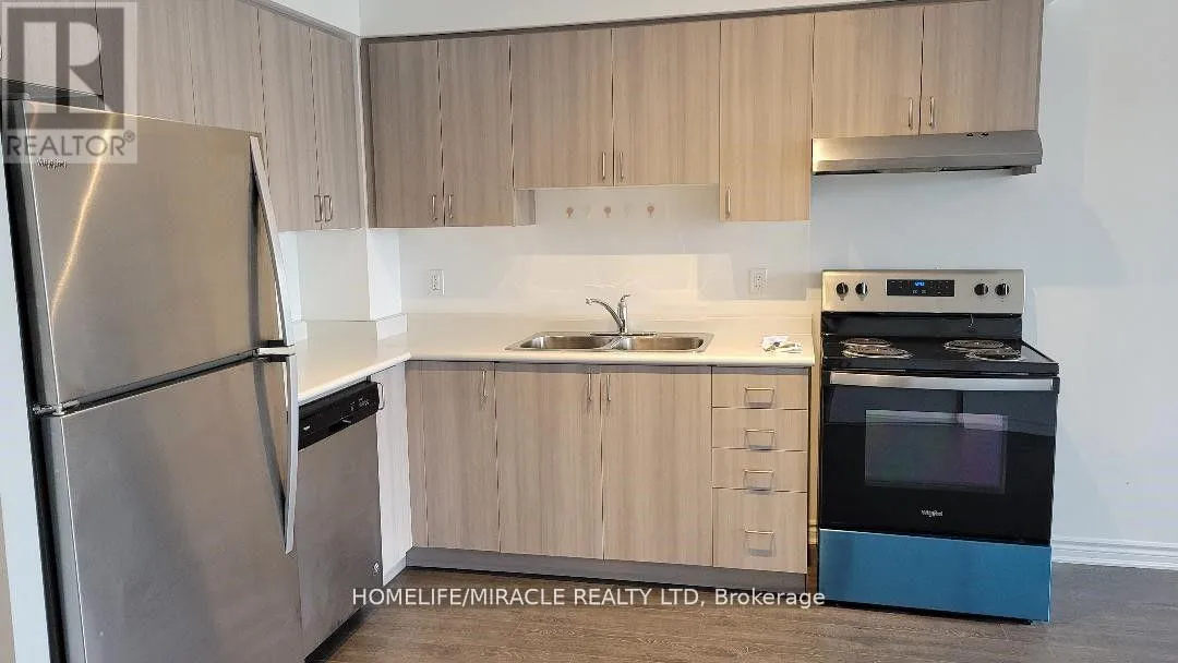Falaise RD and Kingston Rd. Less than 5 year old condo, close to Centennial College and U of T Scarborough campus. The full size Primary Bedroom has 3 piece ensuite (with standing shower). The Den is large enough and is being used as 2nd Bedroom it can also be used as an office, with close access to full 4 piece common washroom (with bath tub). Open Concept with Good size leaving/family area and Kitchen, with all stainless steel appliances. The Entire unit is Carpet free. Ensuite Laundry with Washer/Dryer combo. Very Low maintenance for a luxurious condo like this, just $ 468/Month, which also includes buildings insurance, common element exp, heat and A.C.as well. Water and electricity metered separately. One owned, exclusive underground parking on Level B (# 40) and good size Locker (that can fit bicycle) on level B (# 67) is included in the price. Buyer and Buyer's agent to verify all rooms, room sizes, measurements and Taxes. Status Certi available on request. Property is vacant, with lockbox for easy showing. (id:27476)