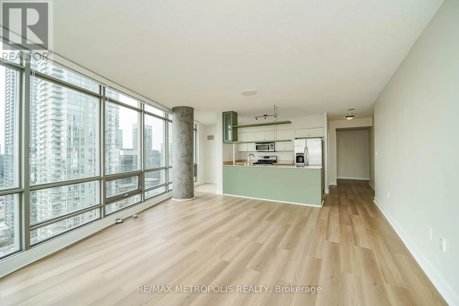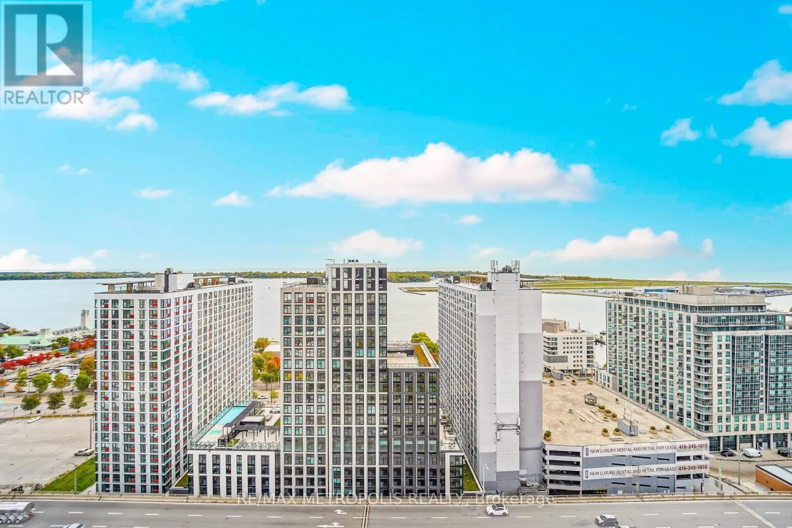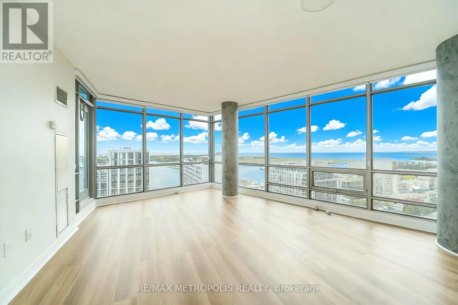 SPADINA AVE/LAKE SHORE BLVD W Million-dollar views meet downtown sophistication in this exceptional corner suite at Harbourview Estates. Soaring above the city, this 2-bedroom plus den residence spans over 1,260 sq. ft., showcasing panoramic southwest vistas of the lake, islands, and skyline through floor-to-ceiling windows. The den is a fully enclosed space, ideal as a third bedroom or a quiet home office. Recently updated with new wide-plank laminate floors throughout, this bright and carpet-free layout offers both comfort and style.The modern kitchen is designed with function and flair, featuring an island with breakfast bar seating, sleek built-in appliances, and an adjacent pantry for added storage. The primary bedroom enjoys unobstructed views, a generous walk-in closet, and a spa-inspired ensuite bath. The open balcony invites you to take in breathtaking sunsets and marina breezes.Residents have access to the 30,000 sq. ft. SuperClub: enjoy a 25m indoor pool, full gym, spin & yoga studios, basketball and squash courts, tennis, bowling, billiards, ping pong, and more - plus BBQ terraces and a children's play zone. Included are one owned parking space, a storage locker, high-speed internet, and Bell Fibe TV.This is lakeside living redefined - where luxury meets lifestyle, just steps from the waterfront and downtown vibrancy. (id:27476)