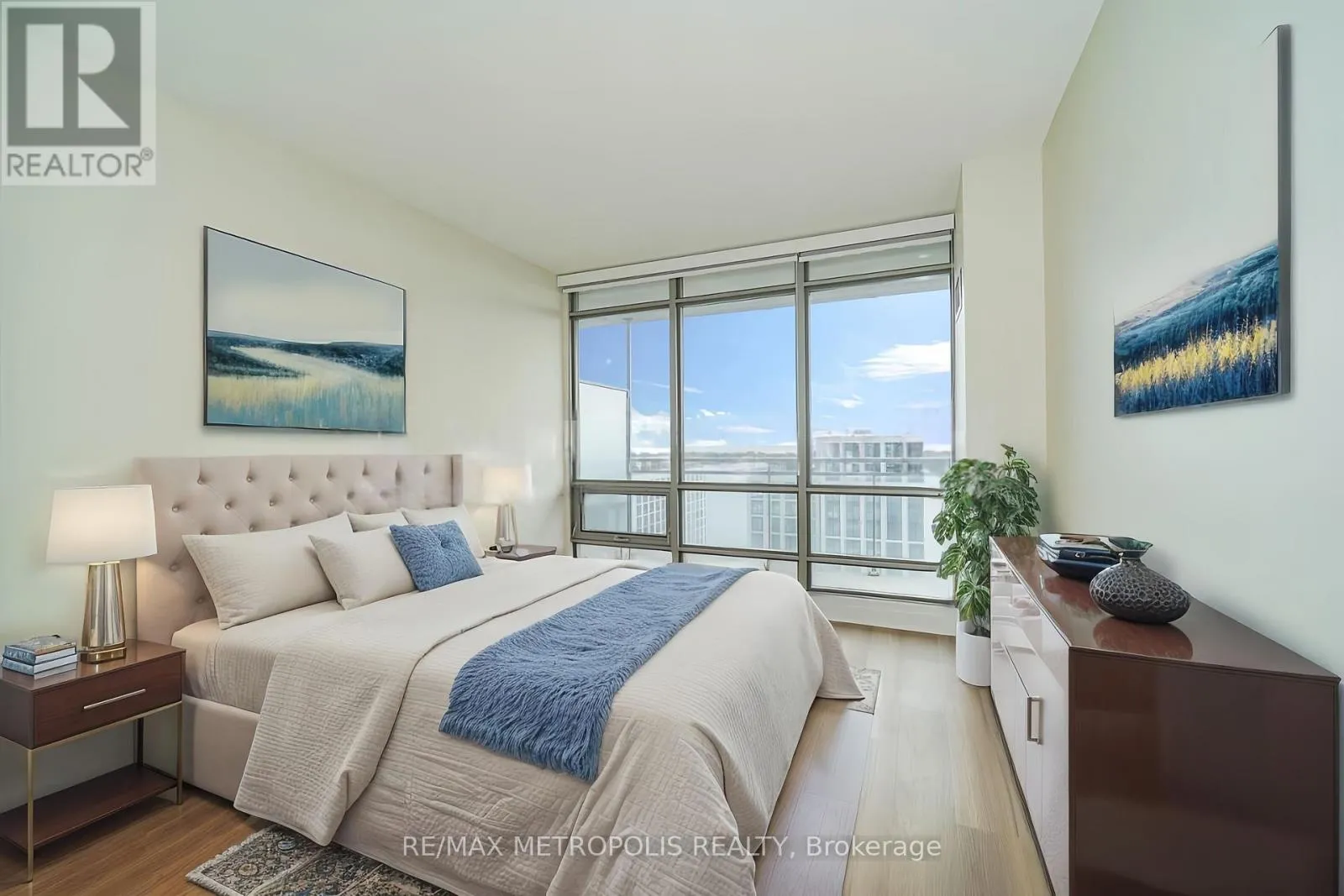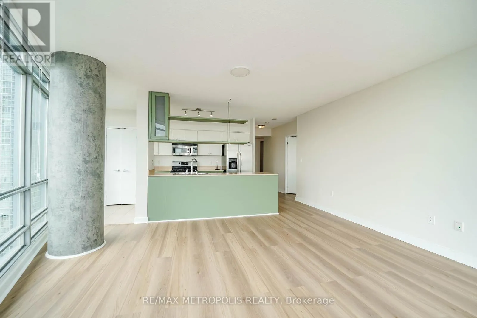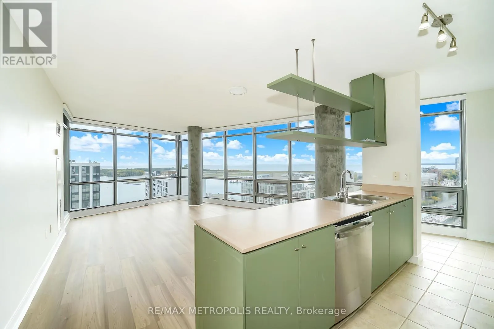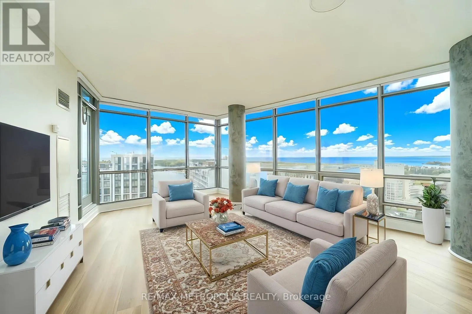 SPADINA AVE/LAKE SHORE BLVD W Million-dollar views meet downtown sophistication in this exceptional corner suite at Harbourview Estates. Soaring above the city, this 2-bedroom plus den residence spans over 1,260 sq. ft., showcasing panoramic southwest vistas of the lake, islands, and skyline through floor-to-ceiling windows. The den is a fully enclosed space, ideal as a third bedroom or a quiet home office. Recently updated with new wide-plank laminate floors throughout, this bright and carpet-free layout offers both comfort and style.The modern kitchen is designed with function and flair, featuring an island with breakfast bar seating, sleek built-in appliances, and an adjacent pantry for added storage. The primary bedroom enjoys unobstructed views, a generous walk-in closet, and a spa-inspired ensuite bath. The open balcony invites you to take in breathtaking sunsets and marina breezes.Residents have access to the 30,000 sq. ft. SuperClub: enjoy a 25m indoor pool, full gym, spin & yoga studios, basketball and squash courts, tennis, bowling, billiards, ping pong, and more - plus BBQ terraces and a children's play zone. Included are one owned parking space, a storage locker, high-speed internet, and Bell Fibe TV.This is lakeside living redefined - where luxury meets lifestyle, just steps from the waterfront and downtown vibrancy. (id:27476)