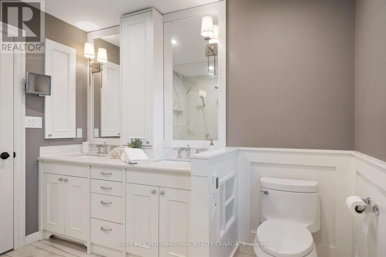 Cross Streets: York Mills and Leslie. ** Directions: Go north from Denlow on Caravan and turn right. Bright, expansive and perfect for everyday living. Nestled on a quiet tree-lined crescent where families strive and community runs strong, walk to Denlow school and Banbury community centre and park. Fabulous landscaped front garden full of perennials and a basketball hoop on the double drive. Lovely double door entrance, skylight, marble floors and 3 double hall closets. It also boasts formal living and dining rooms with hardwood floors and built-in sound system. This larger than most 4 + 2 bedroom home with 5 bathrooms, 2 ensuites ,offers recent updates and graceful functionality with its extra 4 foot addition across the back of the kitchen and family room. As a result you get modern family living with an extra large eat-in kitchen with a walk-out to fenced back garden and a larger family room with gas fireplace. The most recent upgrades, refreshed laundry room with separate side door entrance, brand new main floor powder room and basement finished with a large recreation/tv room and 2 more bedrooms, 3 piece bathroom, a walk-in cedar closet among the ample storage. The Large primary has a wall to wall built-in closet with drawers, shelves and hanging, walk-in closet and newer ensuite with heated floors and a heated towel rack. Three more bedrooms, one with a built-in desk, drawers and shelves and another with a newer ensuite. All three are a good size and have double closets.Fabulous family home in the coveted Denlow area. (id:27476)
