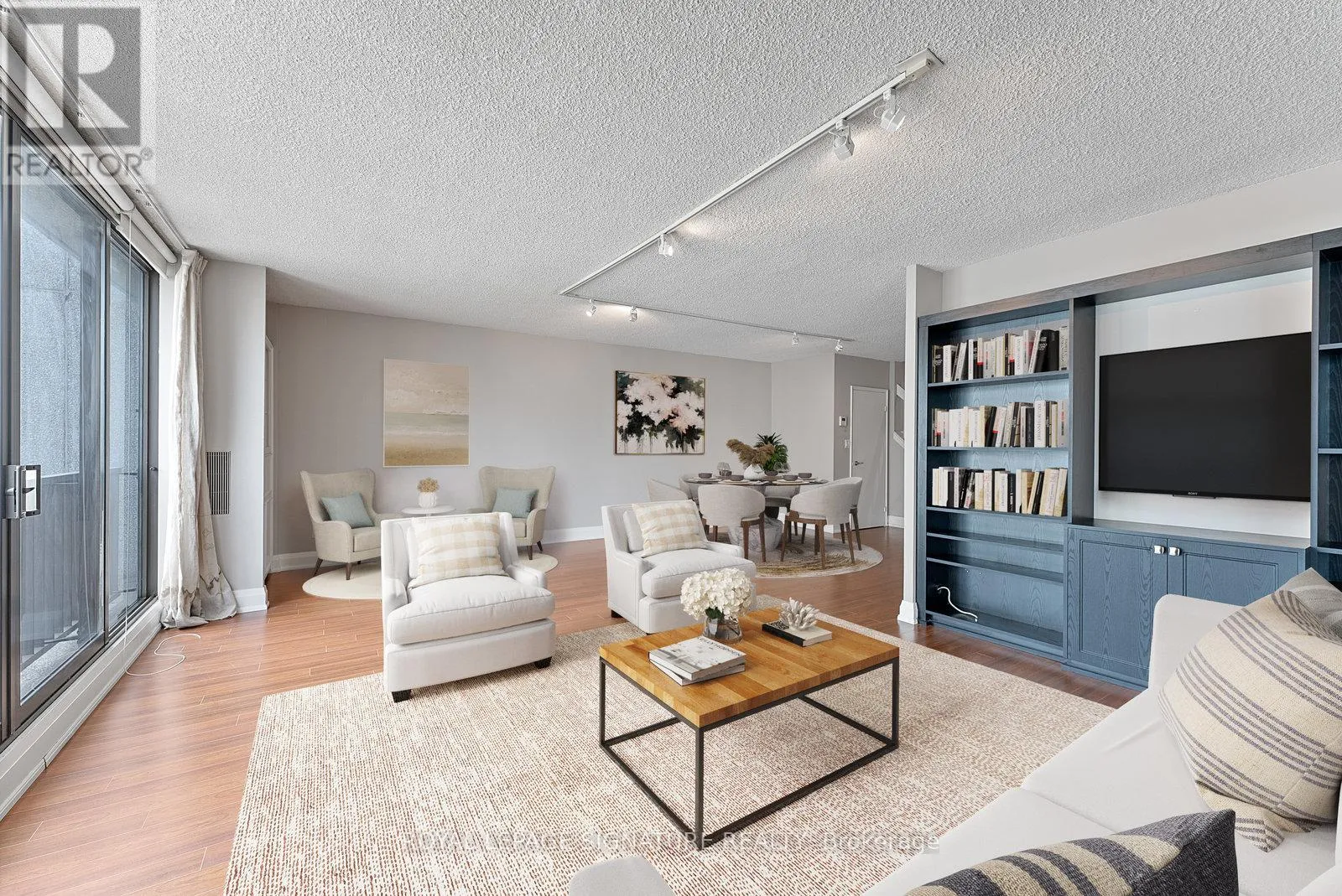 Bay St/ Queens Quay Welcome to Unit #2436 at 33 Harbour Sq, a unique two-storey residence in the heart of Toronto's Harbourfront. Step into a bright, spacious living area with wall-to-wall windows overlooking the waterfront. The combined living and dining area features custom built-ins and a Juliette balcony, creating a perfect blend of function and comfort. The separate kitchen includes pot lights, full-sized appliances, and ample storage, while the dining area easily accommodates a six-person table; ideal for entertaining. Upstairs, the principal bedroom offers a walk-in closet and a 3-piece ensuite. Enjoy exceptional building amenities including rooftop pool, exercise room, and squash courts. Just steps to CN Tower, Scotia Bank Arena, TTC, shopping, restaurants, and Downtown core. (id:27476)