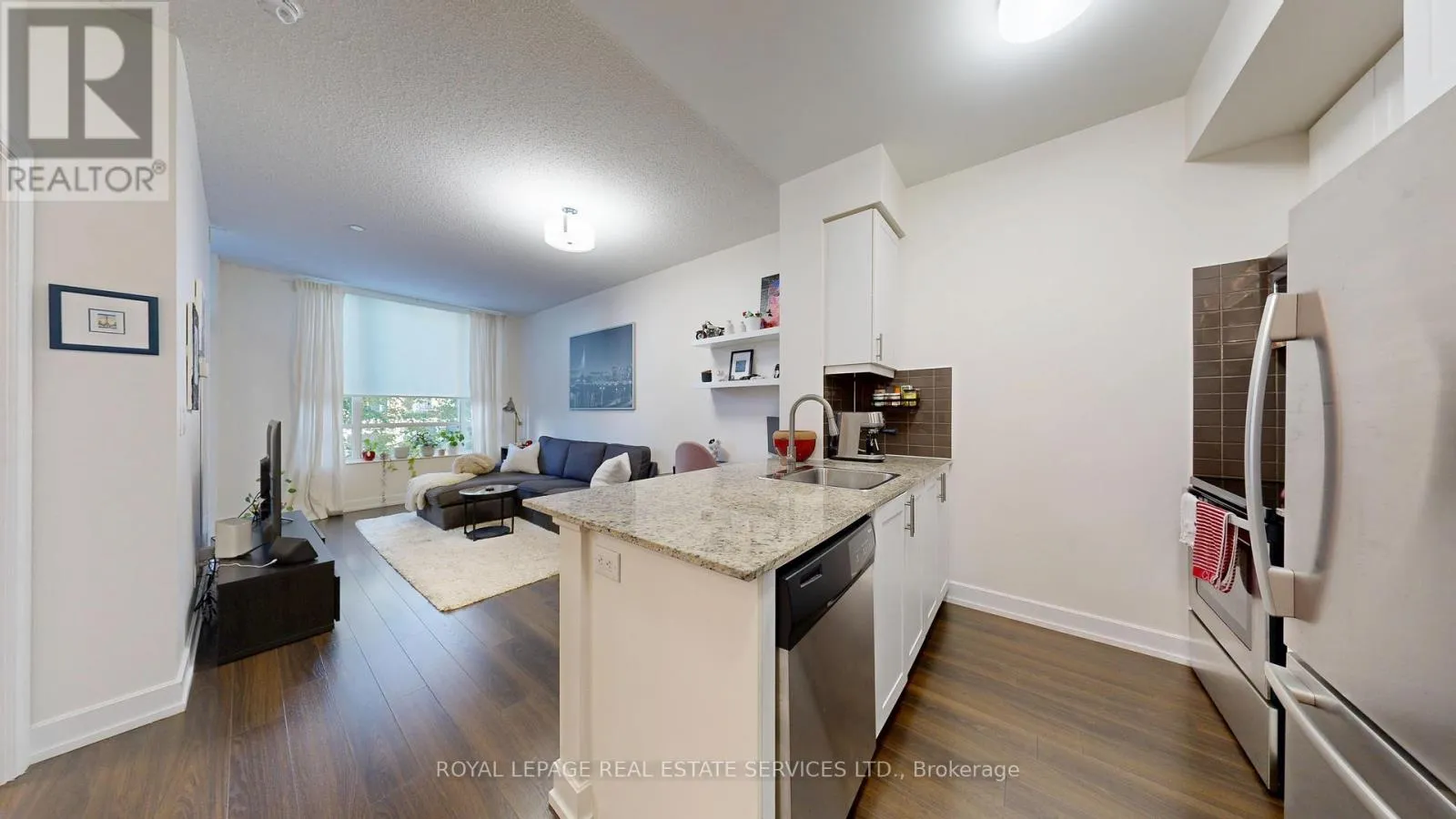 Cross Streets: Eva Rd / Hwy 427. ** Directions: South on Hwy 427 Exit Eva Rd, Turn Right on Eva Rd. 6 Eva Rd is located in the Prestigious Tridel-built West Village Community. Unit 216 is an Open Concept Condo with a flowing layout and open concept Living Area. The Kitchen sports a Breakfast Bar with Stainless Steel Appliances. There is a walk-out to the open Balcony with a charming view looking out onto trees and greenery, which also provide privacy. Amenities include 24-hour concierge, fitness center, indoor swimming pool with spa and steam room, party room, theatre, guest suites and Visitor Parking. Pets are allowed with restrictions. The Condo building is steps to parks, paths, basketball/tennis courts, Centennial Park and skating rinks. It offers transit access to Kipling and Islington Subways, Go Stn. and Sherway Gardens. Direct highway access via 427, 401, to Pearson International Airport, QEW and Downtown. (id:27476)