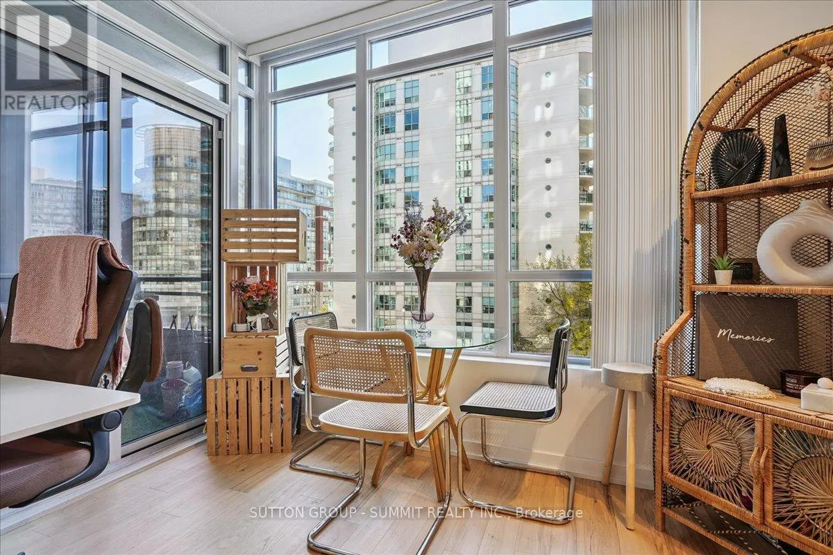 Cross Streets: Lake Shore Rd W/Bathurst. ** Directions: Lake Shore Rd W/Dan Leckie Way - Enter off Housey St. It's rare to find such a well maintained, upgraded One Bedroom Condo Apartment with Owned Parking + Locker that also has an actual separated Den and lower than average condo fees. With over 680 sq ft of living space, this bright + open concept, south-facing unit has been tastefully upgraded and maintained. The Open Concept, designer Italian Kitchen with upgraded quartz counters (2021) + black granite sink (2021) flows seamlessly into the bright Living Room making entertaining a breeze. A private Balcony off the Living Room allows for easy outdoor enjoyment. Building amenities include the eighth floor luxury outdoor terrace with roof top patio, alfresco bar, hot-tub, BBQ pit, fireplace + showers. Additional amenities include a large gym, guest suites, saunas, party room, boardroom + theatre. No Airbnb or short term rentals building. Pets allowed. Engineered hardwood throughout (2021), all-in-one washer-dryer (2022), Bosch dishwasher (2025). Located near Bathurst and Lakeshore, city amenities are easily accessible - Billy Bishop Airport, Groceries across the street, TTC at your doorstep, Entertainment District, Fort York, Financial District, Exhibition Place, BMO Field, Rogers Centre all nearby. (id:27476)