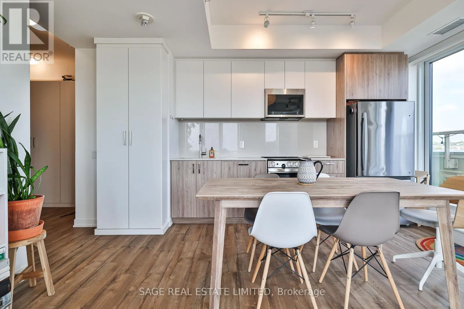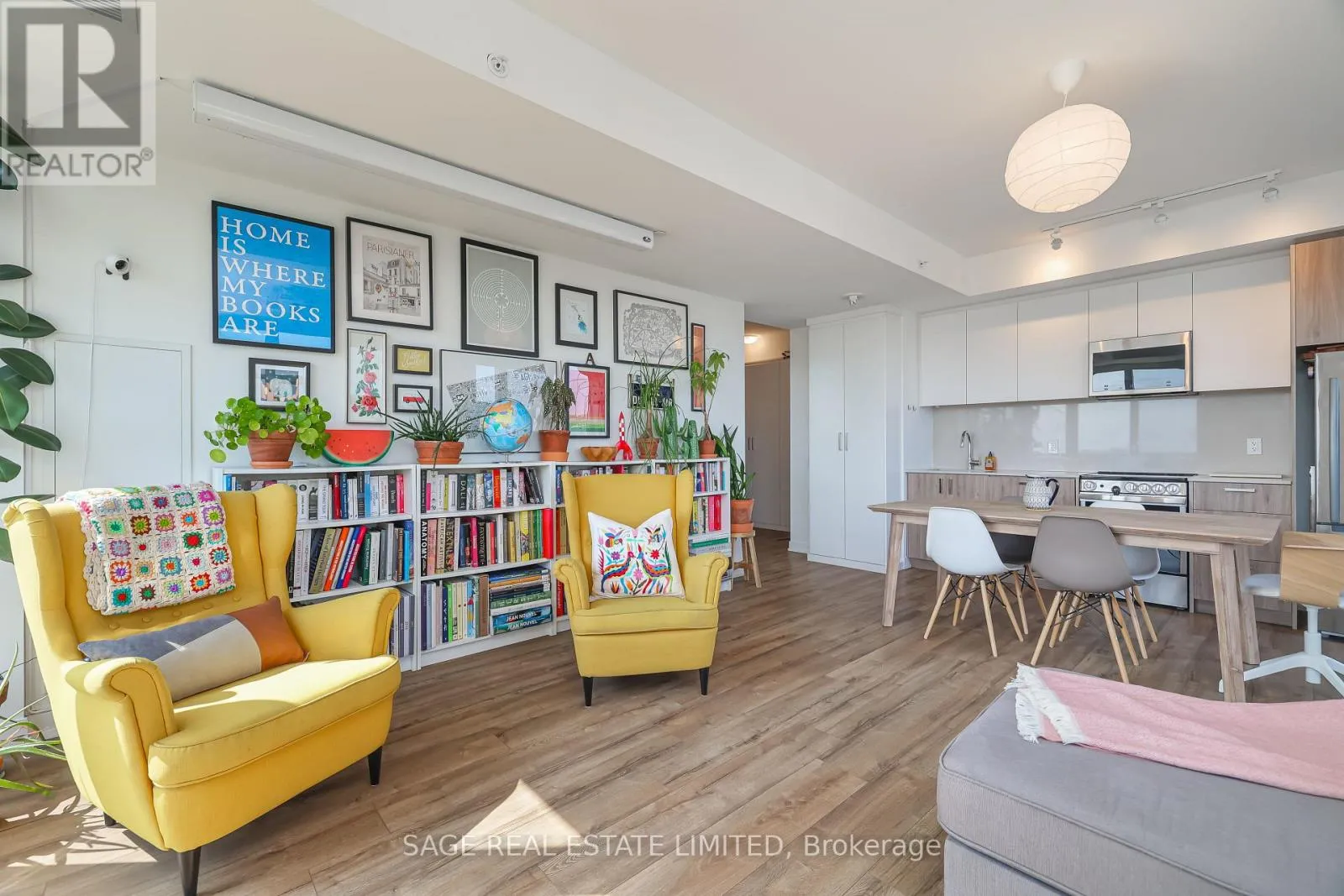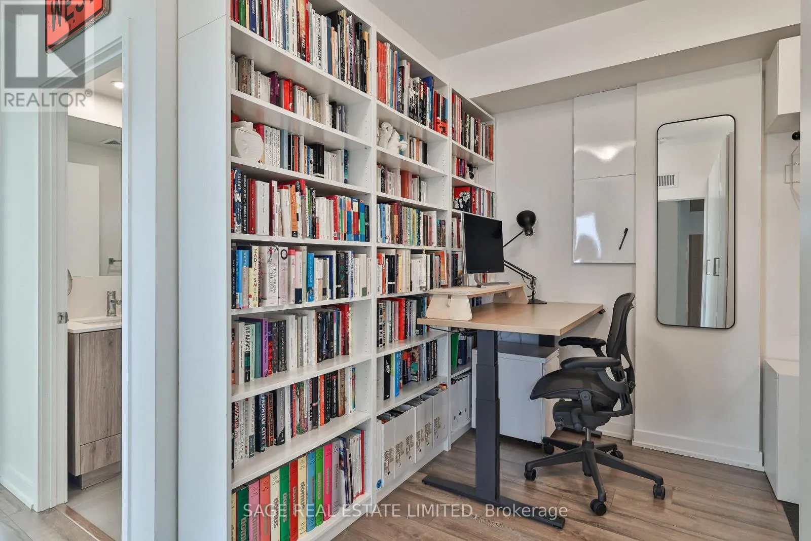 Cross Streets: St clair ave /Weston. ** Directions: Visitor parking on P1. Your slice of heaven at 1787! Savvy buyers, don't miss this top layout in one of Toronto's best-kept secret buildings. This 940 sq ft unit defines "freehold alternative" in all the best ways! We always love a corner unit, and this one greets you at the end of the hall next to a convenient grocery nook. The entry (with oversized storage and ensuite laundry) opens to an open den (perfectly tucked away for work from home meetings) and additional storage. The open-concept main area includes two separate balconies with upgraded flooring and SE views all the way to the lake. The floor-to-ceiling windows bathe the unit in light, ideal for plant lovers. We love the kitchen with upgraded backsplash and counters, a hidden dishwasher, and a FULL-SIZED FRIDGE! Both bedrooms and bathrooms are large and private, but I think our favourite unexpected feature here is all the integrated built-in storage throughout added by the current owners. In a world of condos, where there never seems to be quite enough space, your problems are solved here. What else could a buyer possibly want? Parking? Check! We've even got you covered with an EV charger. Locker? Check! Well-managed (and supremely pet-friendly) Scout Condos is a West side hidden gem with 24 hour concierge. We love the amenities and little touches that (as our sellers describe) "make it feel like you have all the perks of living in a condo while not missing out on living in a house!" There are two terraces with bbqs, two party rooms (which serve as work spaces for residents when not rented), a pet wash, children's playroom, workshop, great gym, community garden, bike storage, billiards room, and even electronic lockboxes for packages. No detail has been missed! Junction-adjacent and extremely walkable and commutable. The streetcar stops outside your door, but you are infinitely close to shops, the stockyards, restaurants, great schools (including French immersion), biking trails, and all the amenities of the Earlscourt CC! (id:27476)