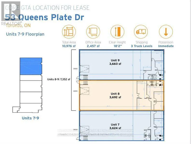 Queens Plate/Vice Regent Industrial space with easy access to highway 401, 407, 409 and 427. Shipping with access for 53' trailers (id:27476)