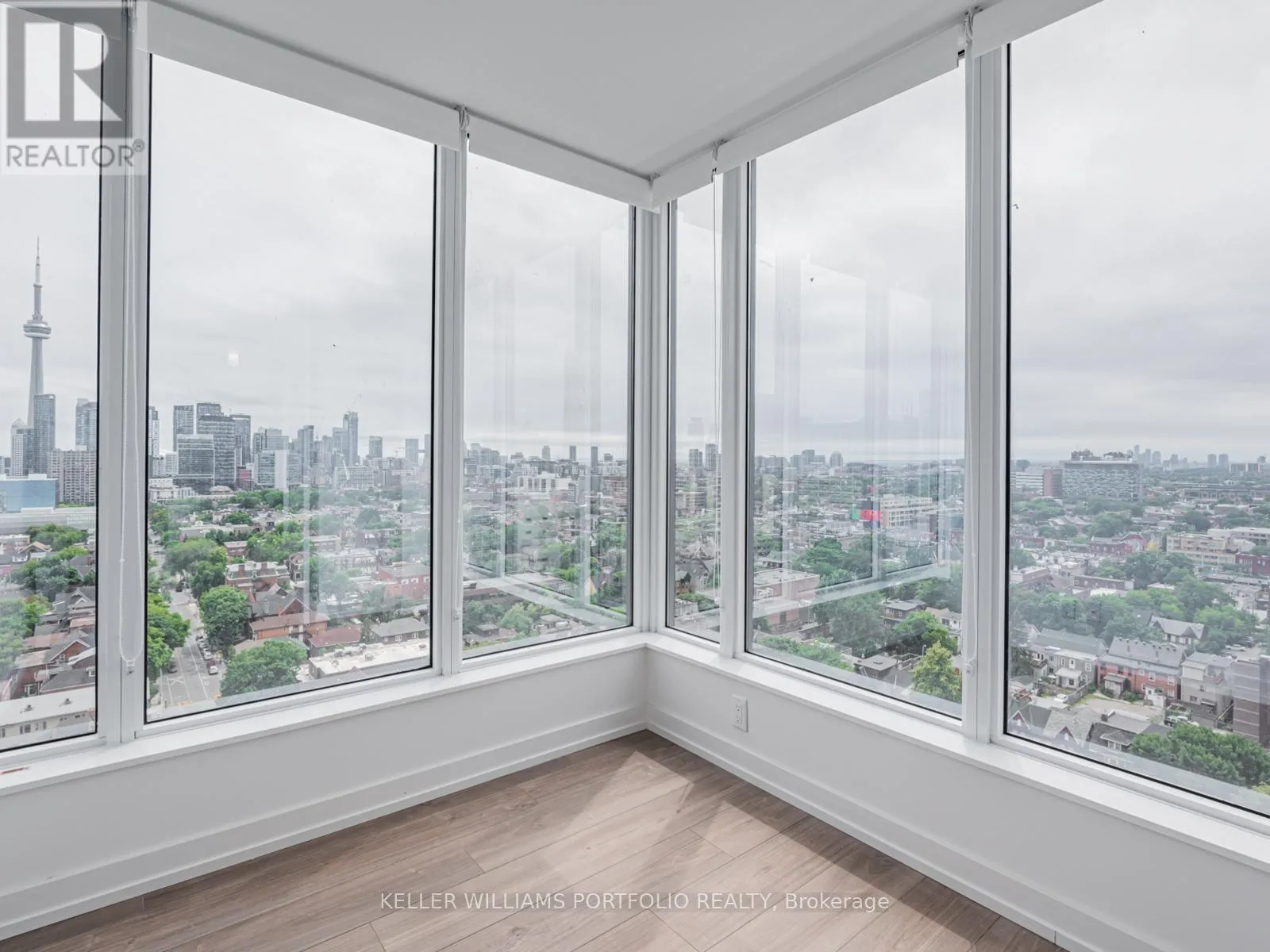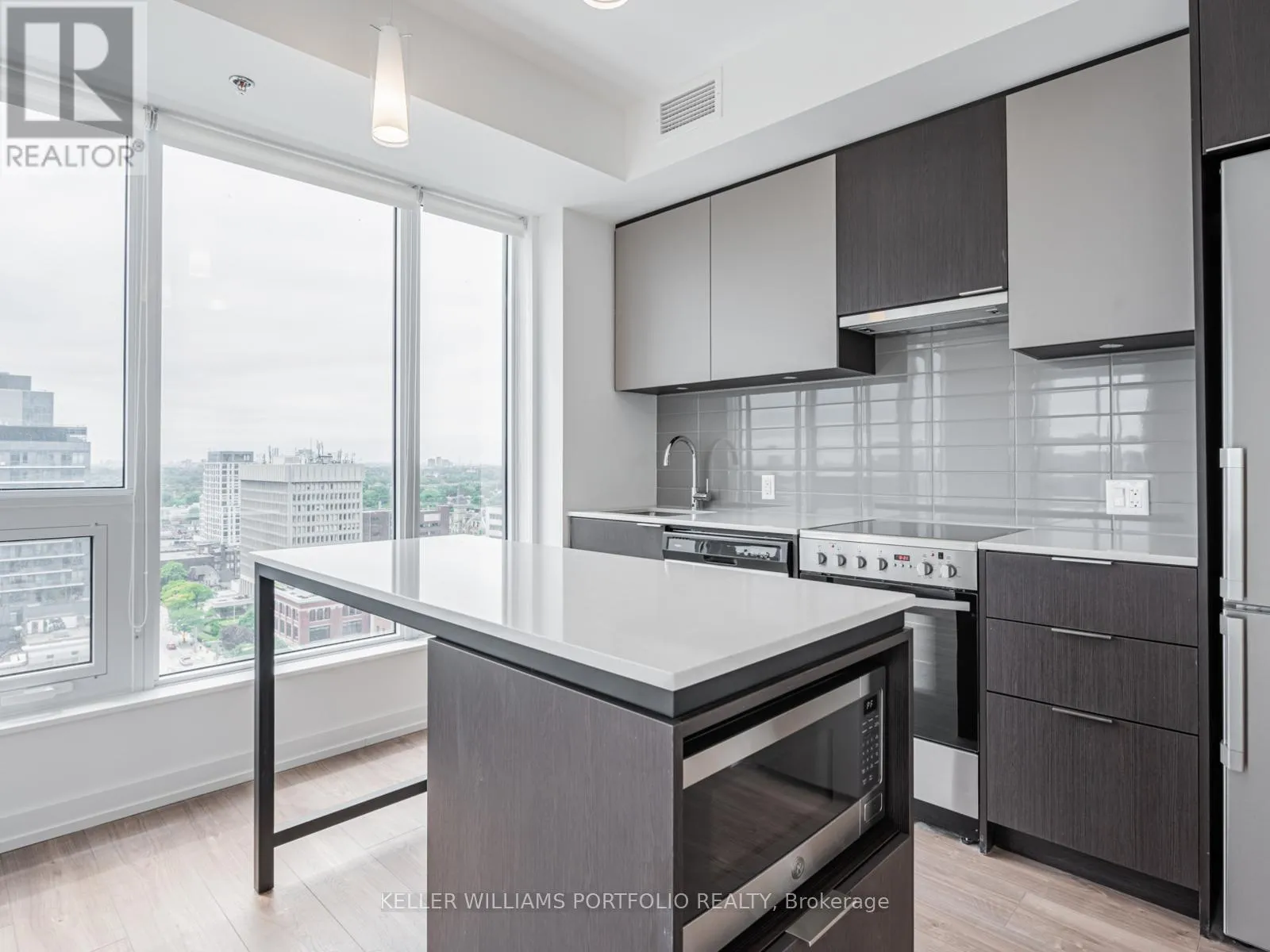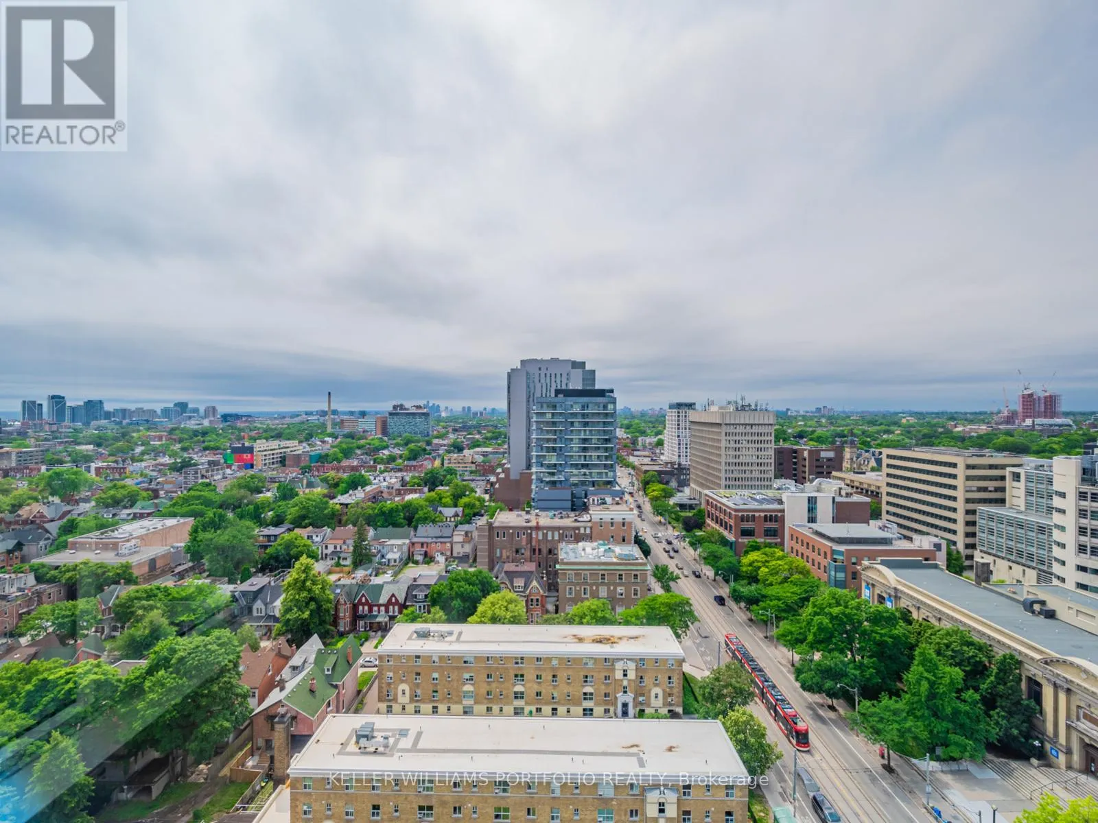 St George / College St Beautiful 1+1 Bedrm. South West Coroner, Den Has South And West Large Window And Door! Unit Comes W/ 2 Full Bathrms! Practical Layout Around 575Sq.Ft No Space To Waste. At The Front Of The South Entrance Of U Of T! Unobstructed Bright CityView, Island Table With Microwave, Quartz Countertop, Laminate Flooring Through Out, Steps To School Banks, Major 5 Hospitals, Restaurants, Queens Park, Shops, Etc. (id:27476)