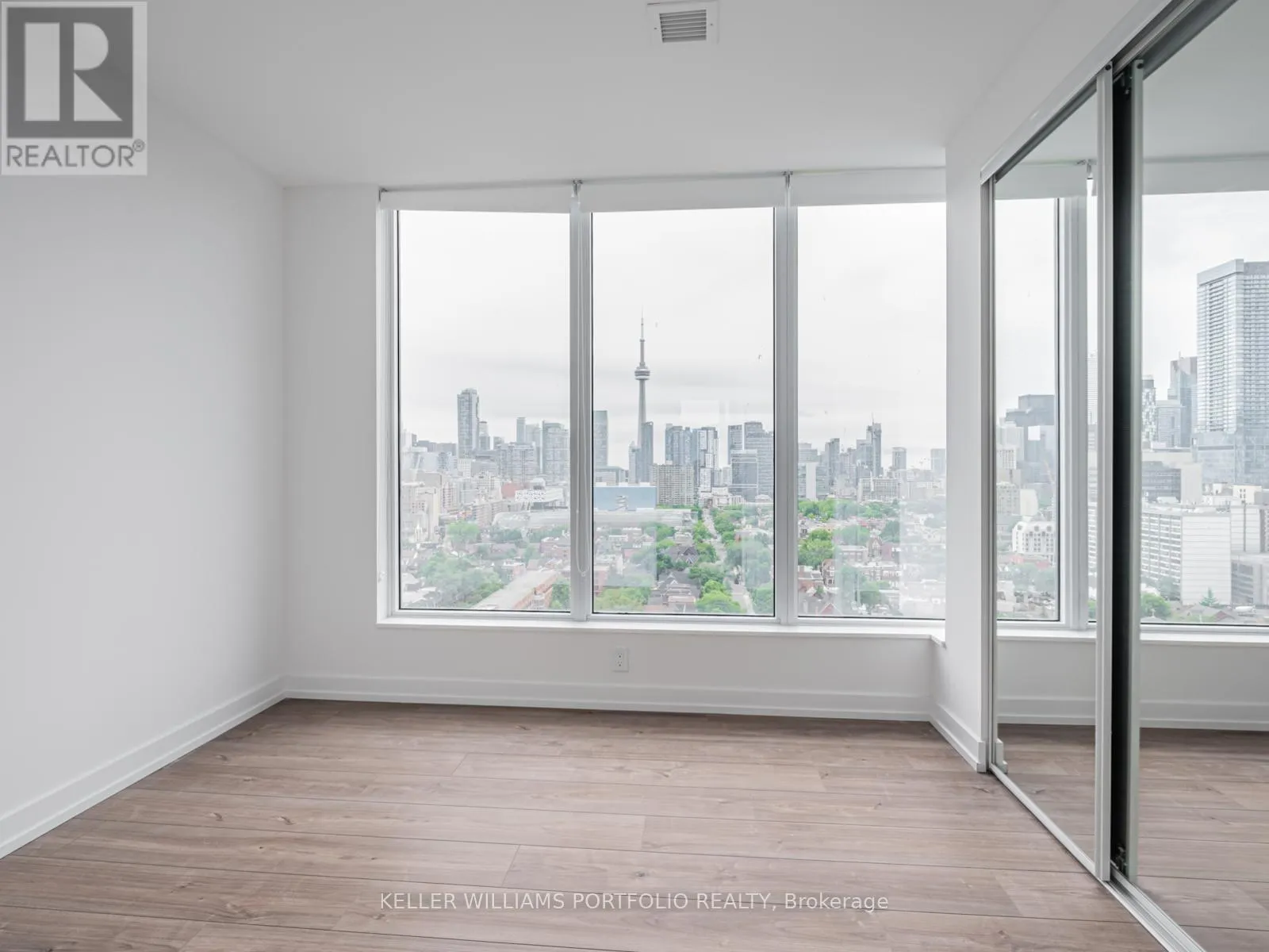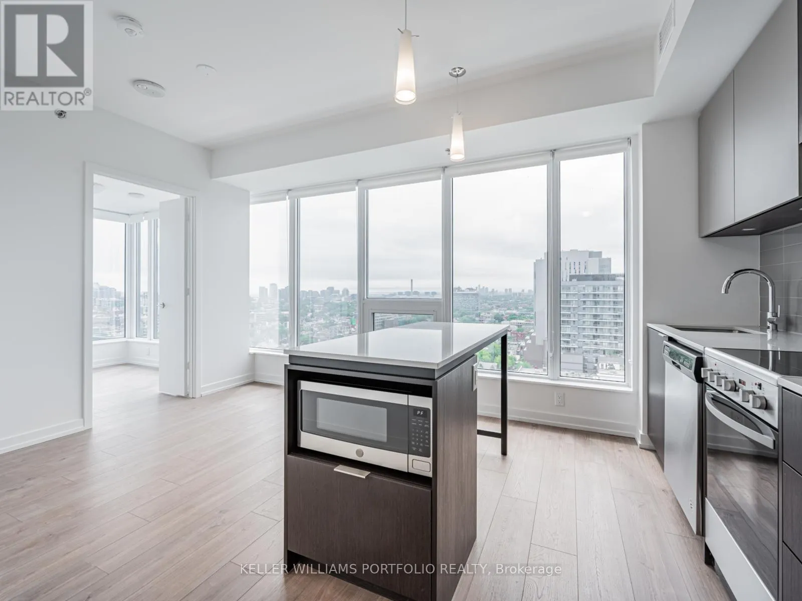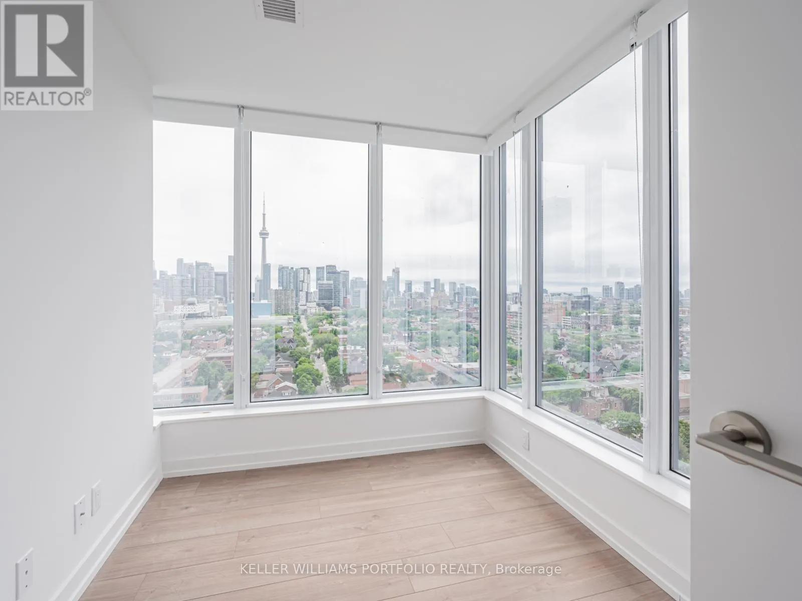 St George / College St Beautiful 1+1 Bedrm. South West Coroner, Den Has South And West Large Window And Door! Unit Comes W/ 2 Full Bathrms! Practical Layout Around 575Sq.Ft No Space To Waste. At The Front Of The South Entrance Of U Of T! Unobstructed Bright CityView, Island Table With Microwave, Quartz Countertop, Laminate Flooring Through Out, Steps To School Banks, Major 5 Hospitals, Restaurants, Queens Park, Shops, Etc. (id:27476)