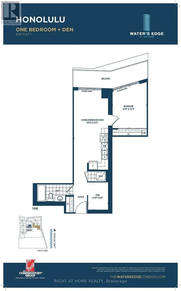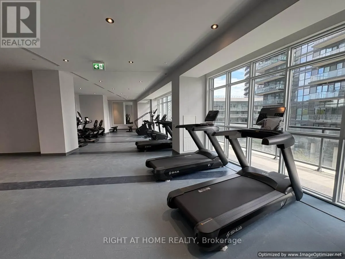 Lakeshore/Parklawn Waterfront Condo Living at Waters Edge Condos. This bright & spacious 658sf, 1 Bedroom + Den, & 1 Bathroom unit offers natural light with floor to ceiling windows, 9' high ceilings & plank laminate floors throughout, located in the same floor with amenities. Open concept living, dining and kitchen. Living room is spacious with a walk out to the private 100sf balcony. The kitchen is great for entertaining with stainless steel built-in appliances, quartz countertop. The spacious bedroom has your own walkout to balcony. 4pc Washroom, Ensuite Laundry. Parking & Locker included. Steps away from shops, restaurants, grocery stores, park, lake, trails, transit & major highways. Full Condo Amenities include 24 Hour Security/Concierge, Indoor Pool, Sauna and Hot Tub. Billiards Room, Movie Theatre, Party Room and Guest Suites. Free Visitor Parking. (id:27476)