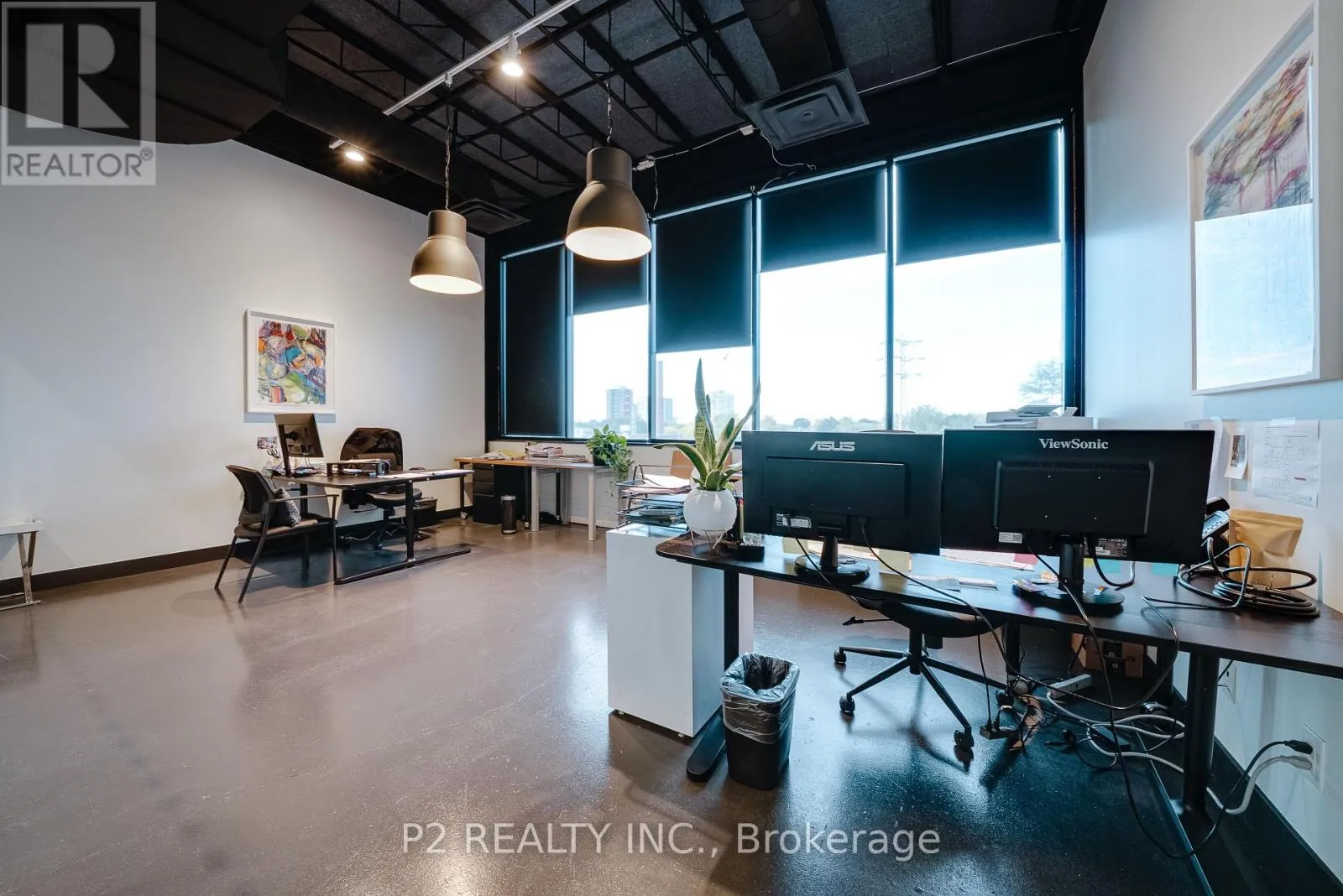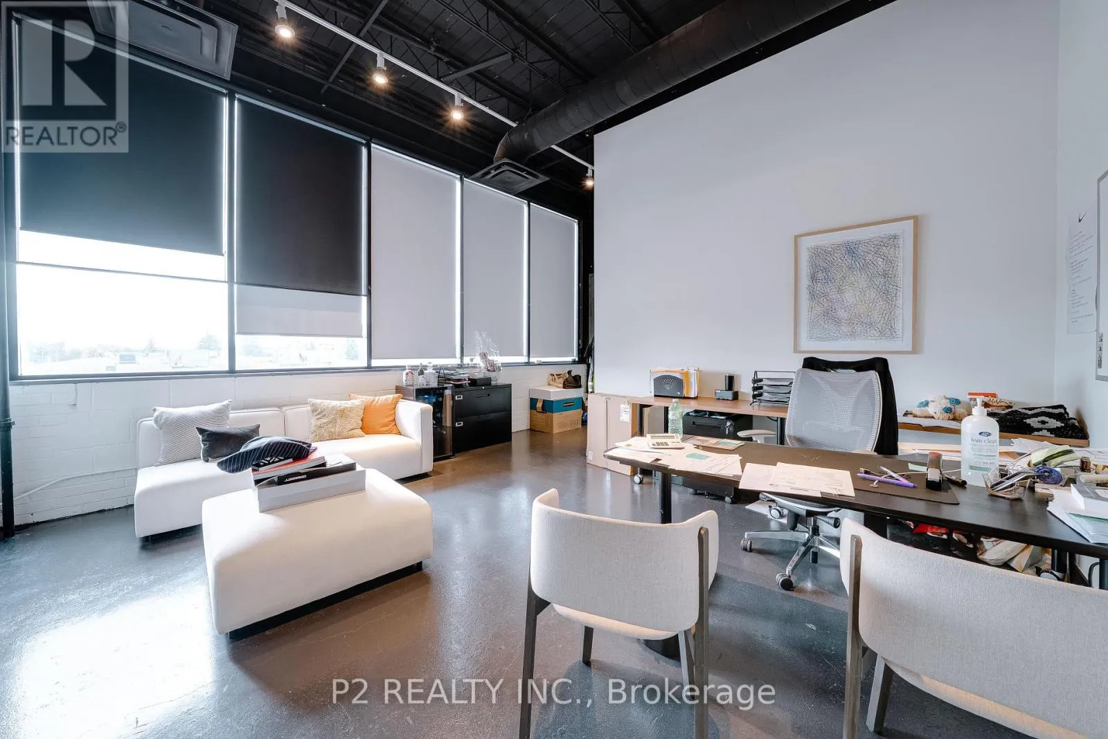 Cross Streets: Caledonia Road & Bowie Avenue. ** Directions: E. Located in the historic Hilroy Paper Factory, this distinctive North York space offers a unique blend of character & functionality. Approx. 10,200 sq. ft. of loft-style 2nd-floor office/showroom space designed to impress both clients & staff. FEATURES INCLUDE: 15+ reserved surface parking spaces for staff & visitors. Prominent, unobstructed exposure on Caledonia Road with excellent signage opportunities. Bright, well-designed offices, boardrooms & collaborative spaces. Polished concrete floors with exposed brick & beam details that highlight the buildings industrial heritage. Private kitchen/bar area & dedicated washrooms for staff convenience. Sprinklers, gas forced air heating & air conditioning throughout, 13' 8" clear height offering a spacious open feel. ACCESSIBLILTY: Immediate TTC access at the front door & Walking distance to the future Crosstown LRT & nearby local amenities including dining, retail & services. Quick access to Allen Rd, Hwy 401 & other major routes for convenient connectivity. This is an ideal opportunity for businesses seeking a stylish & functional ofc/showroom space in a landmark building looking for a unique presence in central T.O with excellent transit access & ample parking. (id:27476)