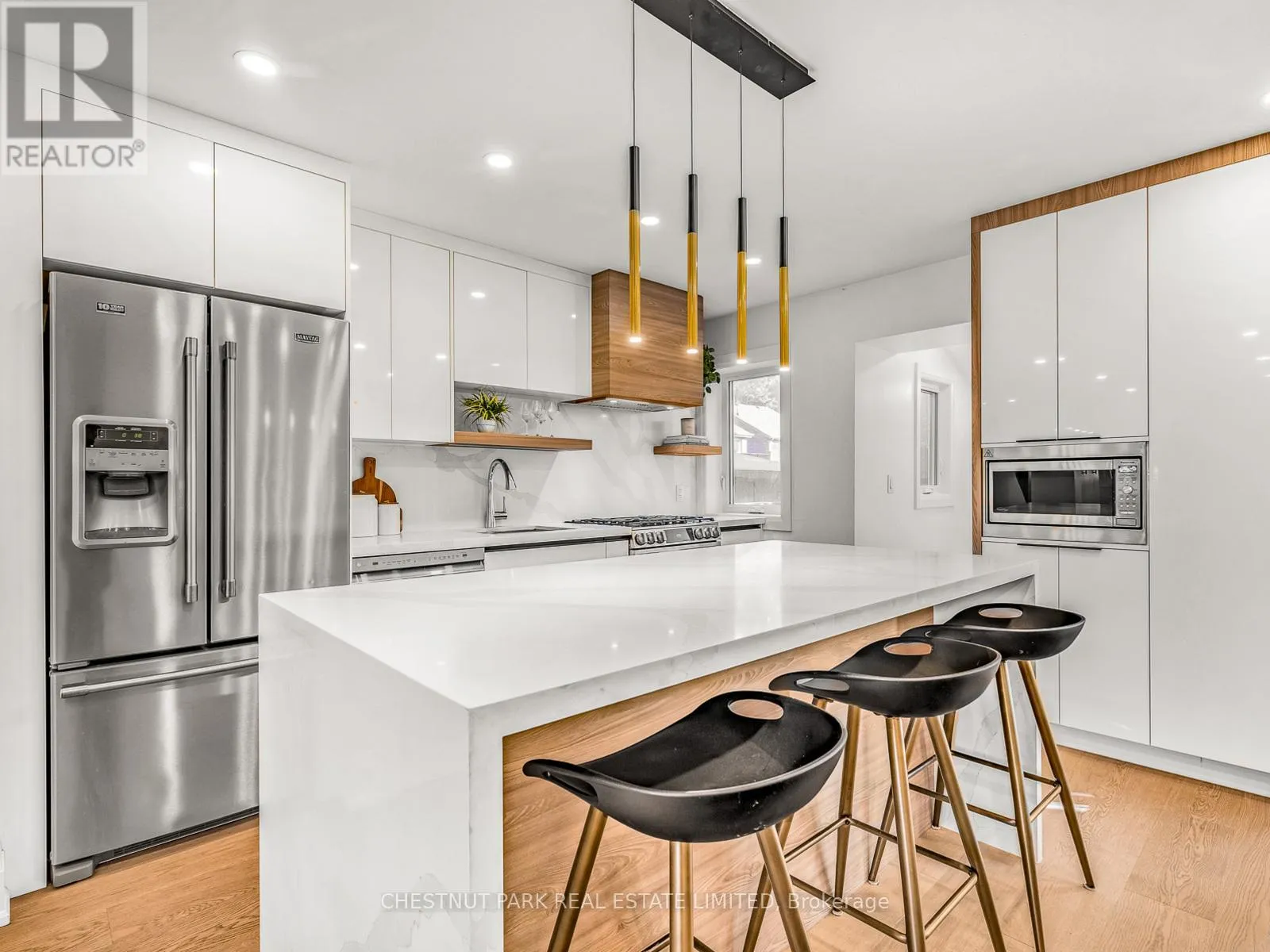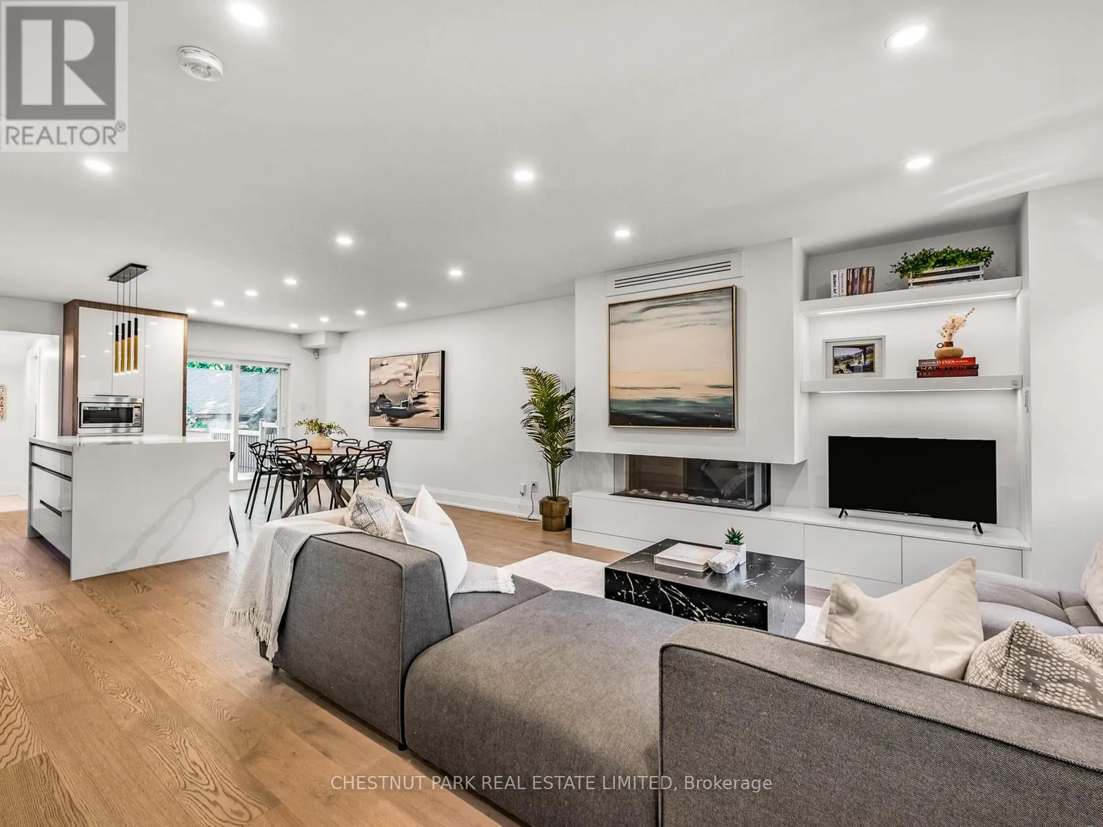 Cross Streets: Yonge St & Craighurst. ** Directions: West of Yonge. Renovated, open concept Lytton Park home that has been beautifully maintained, this home blends timeless character with thoughtful modern updates.The main floor features a bright, open-concept layout, rare main floor powder room, pot lights, and hardwood floors. A welcoming mudroom with custom floor-to-ceiling built-ins sets the tone as you step inside. The inviting living room offers a cozy fireplace flanked by elegant built-in shelving perfect for relaxed evenings. The adjoining dining area opens directly onto a deck and backyard, making entertaining a breeze. The modern kitchen is as functional as it is stylish, with quartz countertops, stainless steel appliances, a centre island with bar seating, and plenty of storage for busy family life.Upstairs, are three spacious bedrooms, all with hardwood floors, along with a built-in linen closet and a beautifully updated 4-piece bathroom with designer finishes.The lower level offers even more versatile space with a recreation area, an updated 3-piece bathroom, laundry area, and a separate storage room. The backyard features a lovely tiered deck perfect for summer barbecues, a stone patio, low-maintenance astroturf, and a wood platform that is perfect for an additional hang out area. $$$ Spent on Upgrades: Electrical, Plumbing, Roof, AC, Furnace, HWT, Gas Fireplace, Windows, Doors, Floors, Kitchen, 3 Bathrooms, Decks, Fence & More. Licensed front pad parking via a mutual drive adds convenience, and the location truly shines close to top-rated schools including Allenby, Glenview, Lawrence Park CI, North Toronto CI, St. Clements, Havergal, TFS & just steps to Yonge Streets vibrant restaurants and cafés, a short walk to the subway station and so much more. (id:27476)