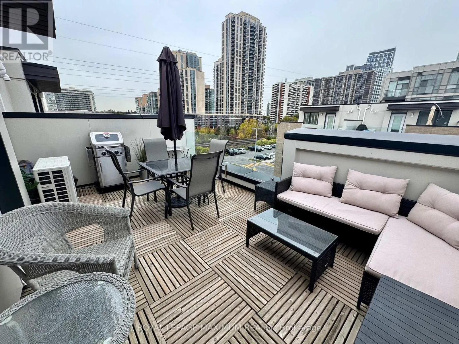 Bloor and Islington Welcome to this stylish and well-appointed condo townhouse featuring 2 bathrooms and 1 underground parking space. Enjoy seamless indoor-outdoor living with a massive 186 sq ft rooftop terrace complete with a gas line for BBQ-Perfect for entertaining or relaxing while taking in stunning city views. Inside, you'll find a modern kitchen with stainless steel appliances, stone countertops, a breakfast bar that comfortable seats 3, and an open layout that overlooks the bright and inviting family room. The spacious primary bedroom offers a private balcony, adding even more outdoor living space. Located just steps from public transit and Islington subway station, and minutes to shops and restaurants. Residents also benefit from underground visitor parking for added convenience. Don't miss this incredible lease opportunity in one of the city's most connected and vibrant neighborhoods! (id:27476)