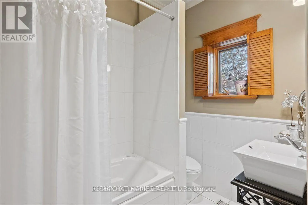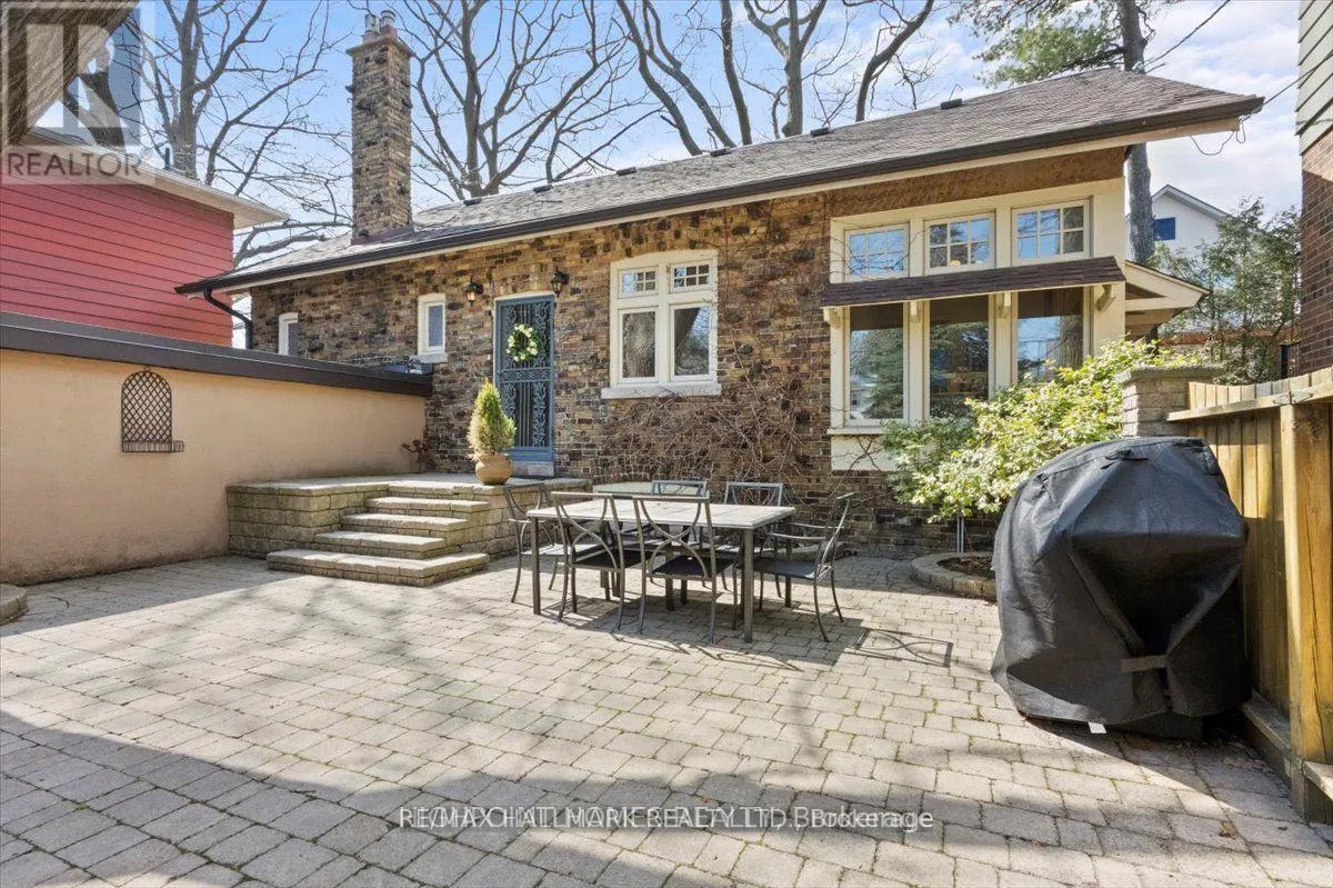 Cross Streets: Kingston & Warden. ** Directions: Drive East on Kingston Turn toward south on Warden. A Mediterranean-inspired century home, beautifully updated while preserving its timeless character, rests on a peaceful non-through street mere steps from the tranquil lakefront. Spacious principal rooms with soaring ceilings and detailed crown mouldings are bathed in natural light, complemented by a sun-filled solarium and a renovated kitchen with granite countertops and abundant cabinetry. Upstairs, you will find a skylight, a luxurious bath with jacuzzi tub and separate shower, the primary suite with a generous walk-in closet and a walkout to a private balcony, as well as an additional bedroom. Outdoors, a secluded stonework front patio shaded by mature trees provides an inviting retreat, while the rear yard offers the ease of minimal maintenance. This residence harmoniously blends elegance, comfort, and an enviable lakeside setting. (id:27476)