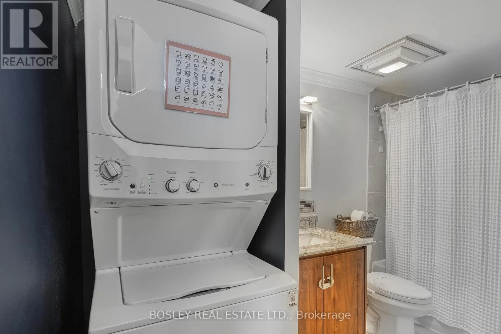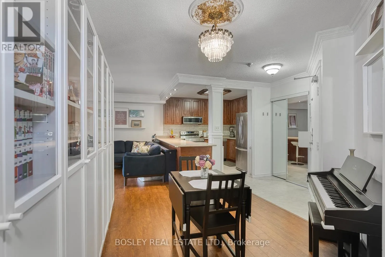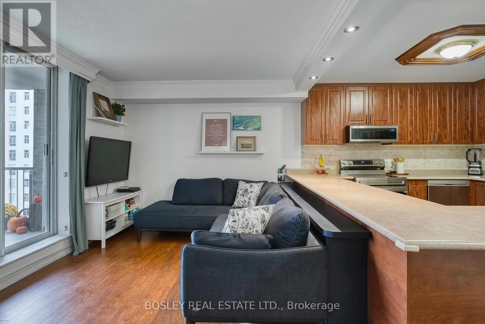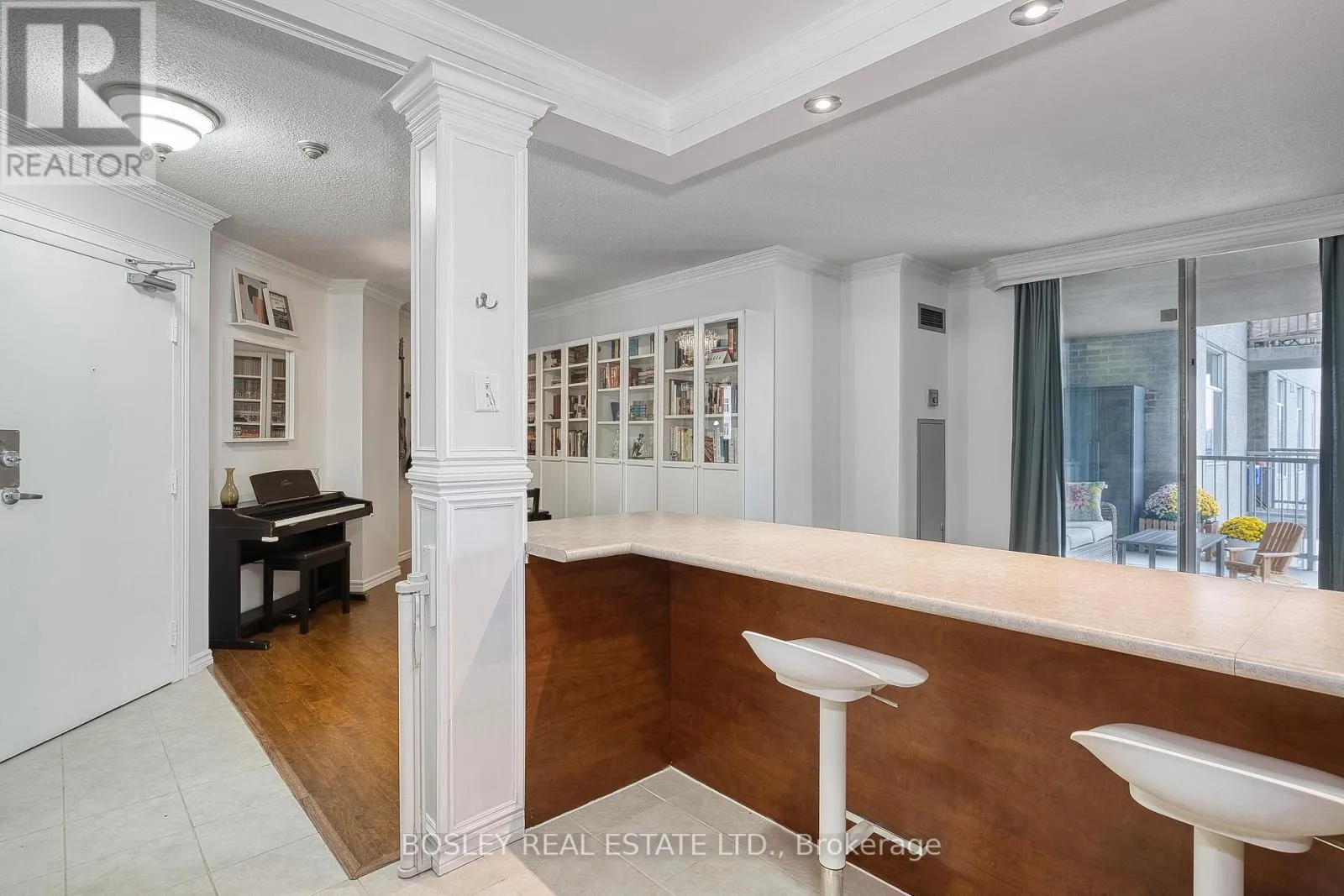 Eglinton and Weston Bright, Beautiful & Move-In Ready! Discover exceptional value in this fully renovated, sun-soaked 2 bedroom condo with sweeping northwest views and an airy, open-concept layout designed for modern living. Step into a stylish kitchen featuring stainless steel appliances, contemporary cabinetry, and a sleek breakfast bar that flows effortlessly into the spacious living and dining areas-perfect for hosting or unwinding at the end of the day. Custom built-in cabinetry beneath the island adds smart, extra storage. Both bedrooms are generously sized, and the tucked away office which was. thoughtfully transformed from the ensuite locker-offers a superb work-from-home space complete with a built-in desk and shelving. An updated 4-piece bath, ensuite laundry, and excellent closet space round out the interior. Enjoy morning coffee or evening sunsets on your large private balcony overlooking beautiful northwest vistas. Situated in a well-maintained building with ample visitor parking, this condo delivers exceptional peace of mind with all utilities included in the maintenance fees-hydro, heat, water, and more. (Please note: this is a no-pets building.). A turnkey home in a prime location-don't miss it! (id:27476)