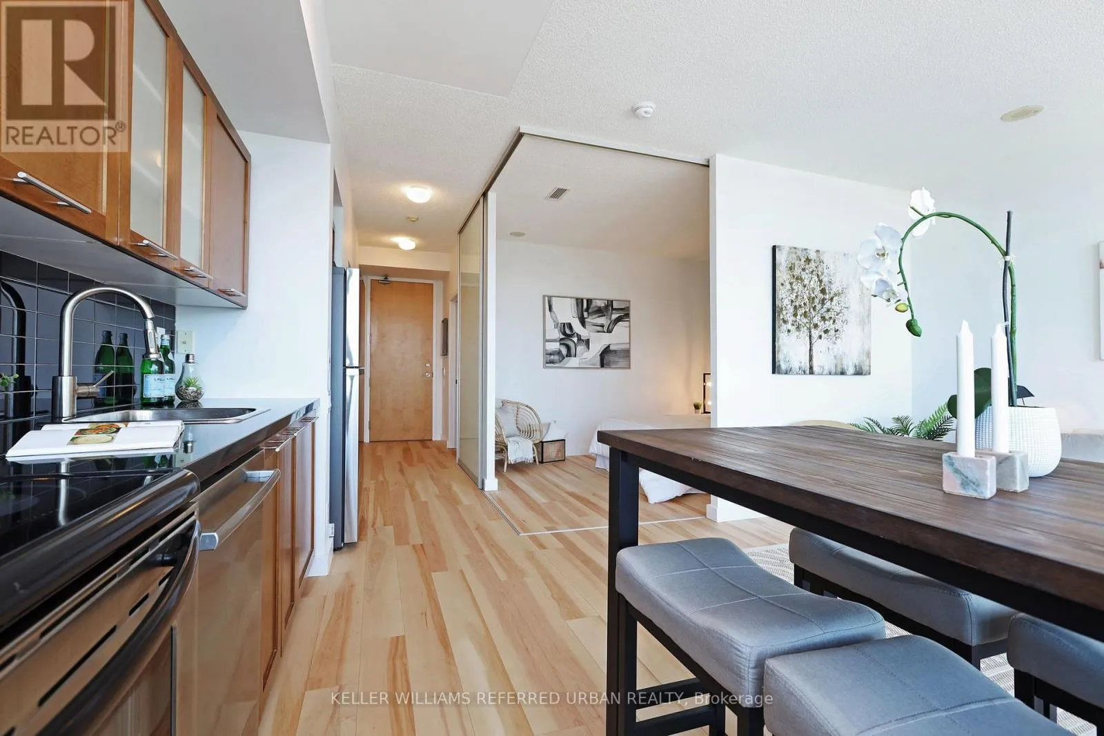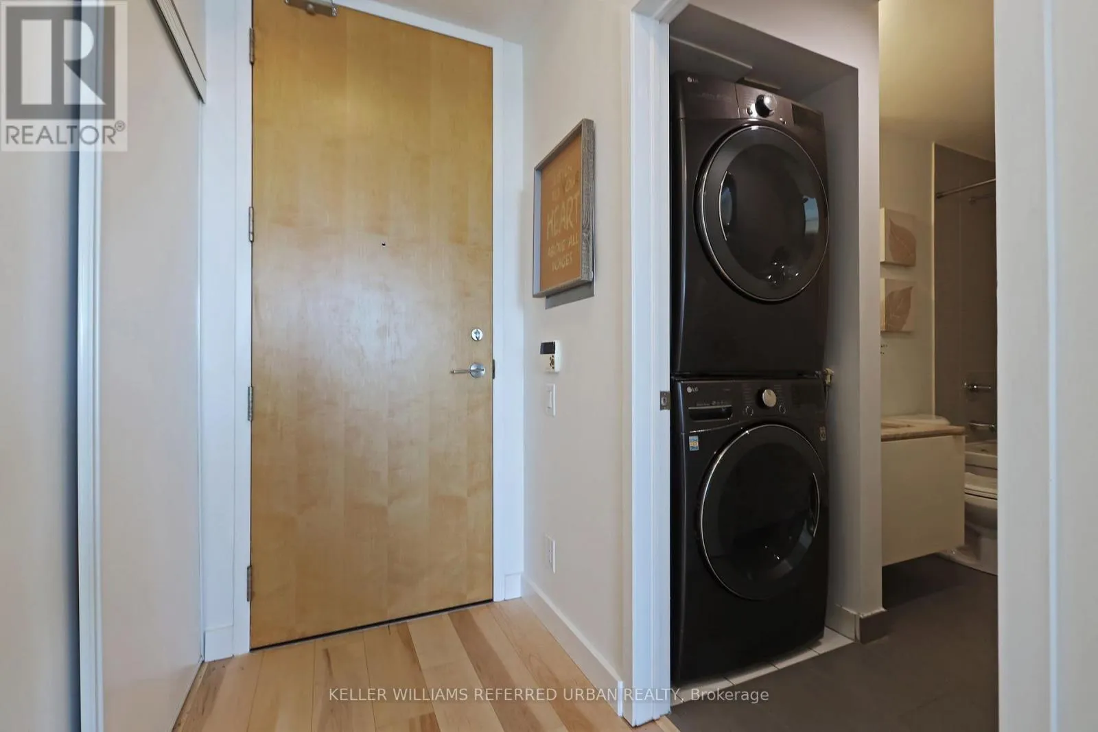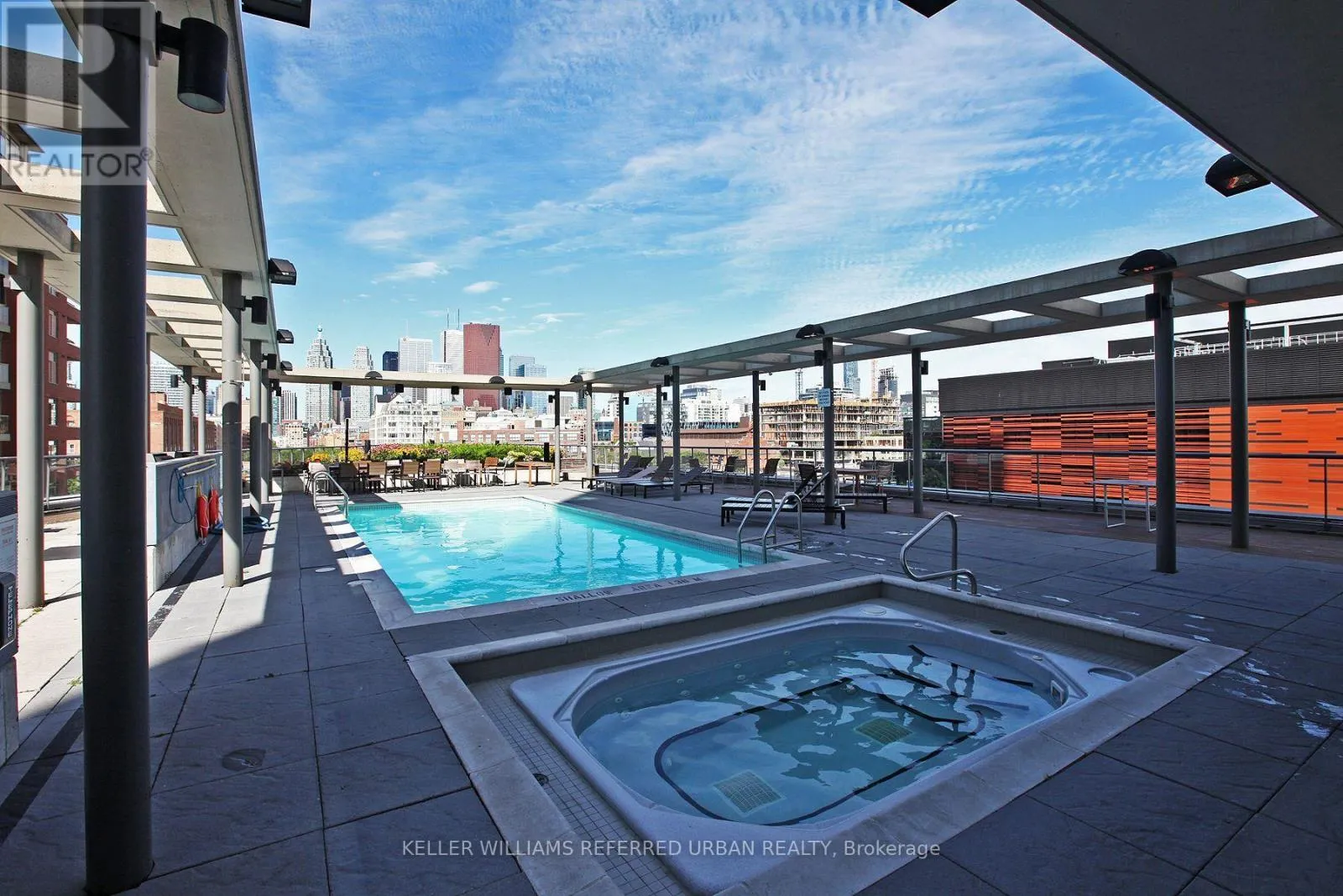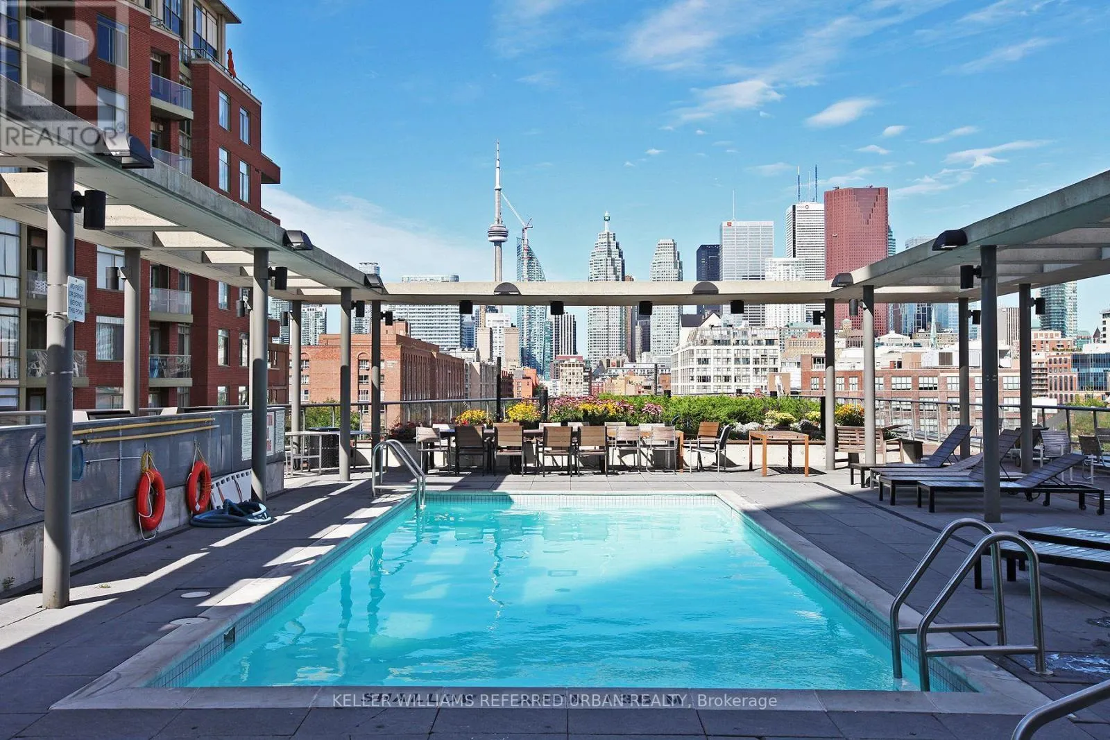 Cross Streets: Mill and Parliament. ** Directions: Mill St is one way West, park on P1. Welcome to Pure Spirit Condos at 33 Mill Street, nestled in Toronto's Iconic Distillery District. This stylish 1-bedroom, 1-bath suite offers a bright and efficient open-concept layout with floor-to-ceiling windows and an oversized balcony showcasing sweeping city views. The modern kitchen flows seamlessly into the sunlit living area, while the spacious bedroom easily accommodates a king-sized bed. Thoughtful features include large closets, ensuite laundry, and a locker for extra storage. Enjoy resort-inspired amenities such as an outdoor pool with hot tub, rooftop terrace with BBQs, fitness center, yoga studio, sauna, guest suites, and 24-hour concierge. With a 95 Walk Score, you're steps from trendy cafés, boutiques, and world-class dining in the Distillery, minutes to St. Lawrence Market, Corktown Station (coming soon), the Waterfront, Gardiner, and DVP. Whether you're a first-time buyer or investor, this move-in ready suite offers an opportunity to own in one of Toronto's most desirable communities (id:27476)