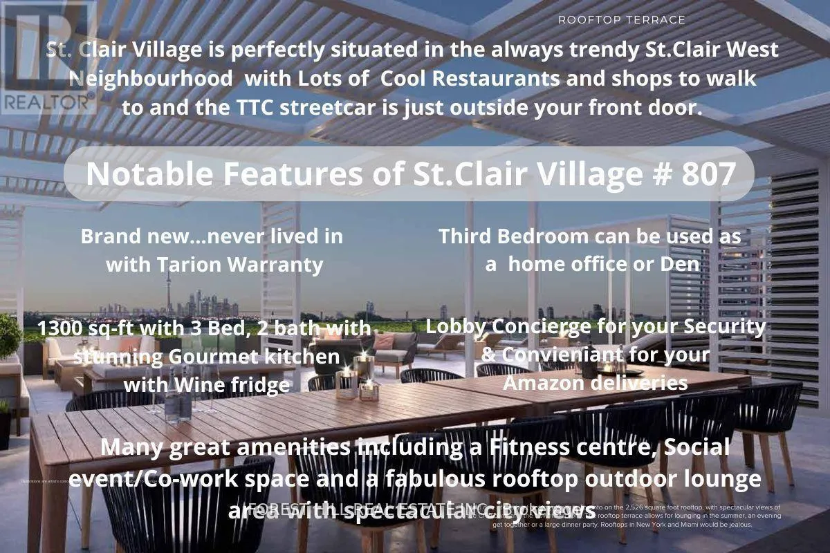 St.Clair Ave W & Alberta Ave **Price Reduced by $100k !! Now is your opportunity to own this brand new unit before its gone** Welcome To The Striking St. Clair Village Boutique Condo In The Always Trendy St Clair West Neighbourhood. This Spacious 1300 Sq/Ft Newly Built 3-Bedroom, 2-Bathroom Condo Has 9Ft Ceilings & Engineered Hardwood Flooring Throughout. The Stunning Kitchen Has Custom Cabinetry With Panel Doors, Elegant Stone Counters, Miele Appliances And A Sleek And Functional Island. When You Want A Little Bit Of Fresh Air, There Are Two Fabulous Balconies For You To Enjoy. Grab A Glass Of Wine From Your Wine Fridge And Enjoy A Good Book Or Grill Some Delicious BBQ While You Enjoy The Wonderful Views ---- This Boutique Buiding Has Wonderful Amenities Including A Well Equipped Fitness Centre, Lounge/Party Room With Temperature Controlled Wine Storage And An Expansive Roof Top Terrace To Socialize And Enjoy The Awesome City And Skyline Views. All Along St. Clair West You Have Many Cool And Hip Restaurants, Shops And Services, The TTC At Your Doorstep And Your Very Own LCBO Downstairs To Keep That Wine Fridge Stocked. (id:27476)
