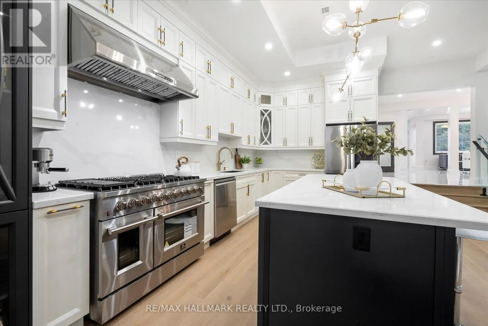 Cross Streets: Lawrence Ave E/ Manse Rd. ** Directions: Lawrence Ave E. Welcome to 134 Manse Road, a stunning custom-built home redesigned from the ground up with exceptional craftsmanship, energy-efficient systems, and upscale finishes. Perfectly located near scenic waterfront trails, this property combines modern elegance with everyday convenience. Offering over 4,500 square feet, the home features six bedrooms and four full bathrooms in an open-concept layout ideal for both entertaining and family life. Soaring ceilings, premium lighting, engineered hardwood floors, and a striking cast-iron staircase set a sophisticated tone. A main-floor bedroom with a private ensuite and walk-in closet is perfect for guests or multi-generational living. The great room impresses with dramatic smooth ceiling heights, a sleek linear fireplace, and 14-foot sliding glass doors leading to a private patio. The chef's kitchen includes a massive centre island with additional storage, quartz counters and backsplash, a walk-in pantry, and premium built-in appliances, including a 48-inch gas range and wine cooler. Upstairs, the sunlit primary suite offers a walk-in closet and spa-like ensuite with a freestanding soaking tub, custom double vanity, and a glass-enclosed rain shower with body jets. Spacious second story family room retreat perfect for movie & game nights. The finished lower level adds versatility with above-grade windows, a full kitchen, large living area, and a bedroom with a four-piece ensuite ideal for extended family or guests. Professionally landscaped stonework enhances the nine-car driveway and backyard patio, ready for a pool, garden suite, or outdoor kitchen. Situated near Port Union and Lawrence, commuting is effortless with quick access to the Port Union GO Station and Highway 401. Parks, waterfront paths, shopping, and dining are all close at hand, making this a rare blend of luxury and convenience! (id:27476)