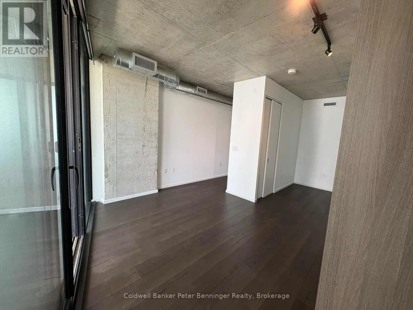 Cross Streets: Eastern Ave and Lawren Harris Square. ** Directions: Drive East on Old Foundry Rd. Welcome to this bright and efficiently designed Jr. 1 bedroom suite in the heart of Toronto's sought-after East End! Located at 21 Lawren Harris Square, this stylish unit features east-facing exposure, bathing the space in natural morning light through floor-to-ceiling windows. Enjoy contemporary finishes, an open-concept layout, and smart use of space, perfect for first-time buyers, young professionals, or savvy investors. The unit includes a dedicated storage locker and two secure bike racks - ideal for urban living. Situated in a modern building less than 5 years old, residents have access to top-tier amenities including a fully equipped gym, children's playroom, outdoor BBQs, and guest suites for visiting family and friends. Steps from Corktown Commons, Riverside, the DVP, and the vibrant Distillery District, with easy access to transit, parks, and downtown core - you can't beat this location! Don't miss your chance to own a piece of this dynamic and growing neighbourhood! (id:27476)