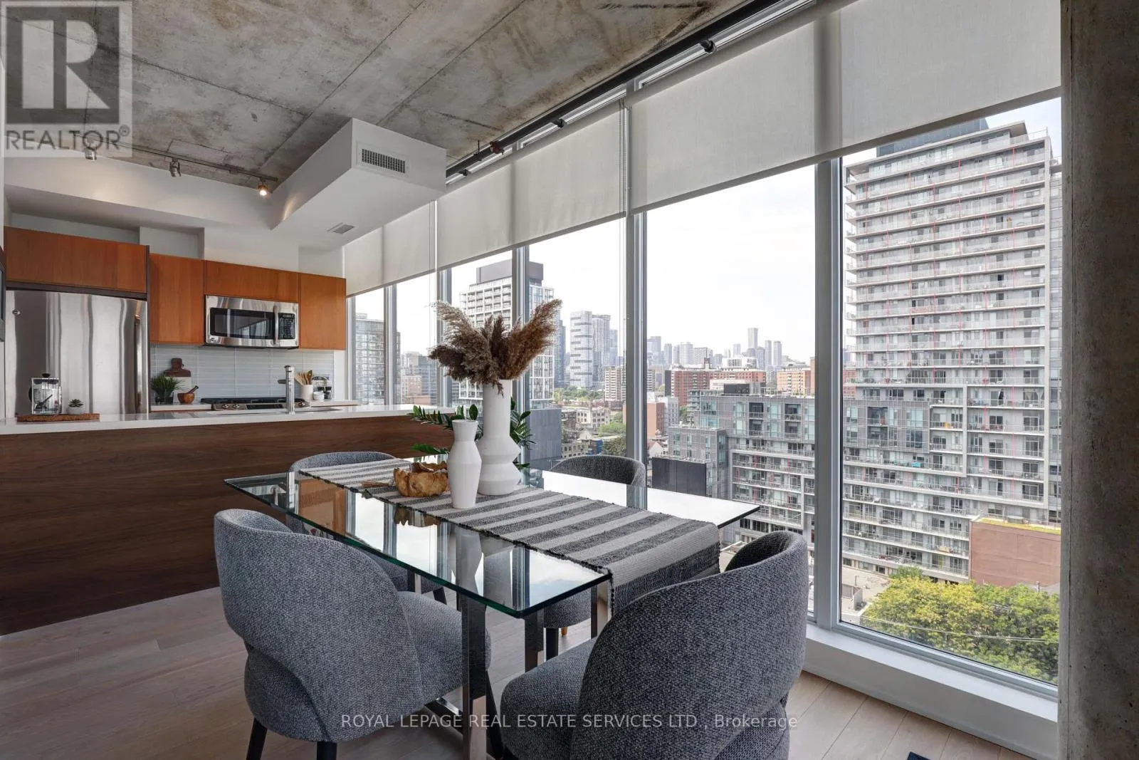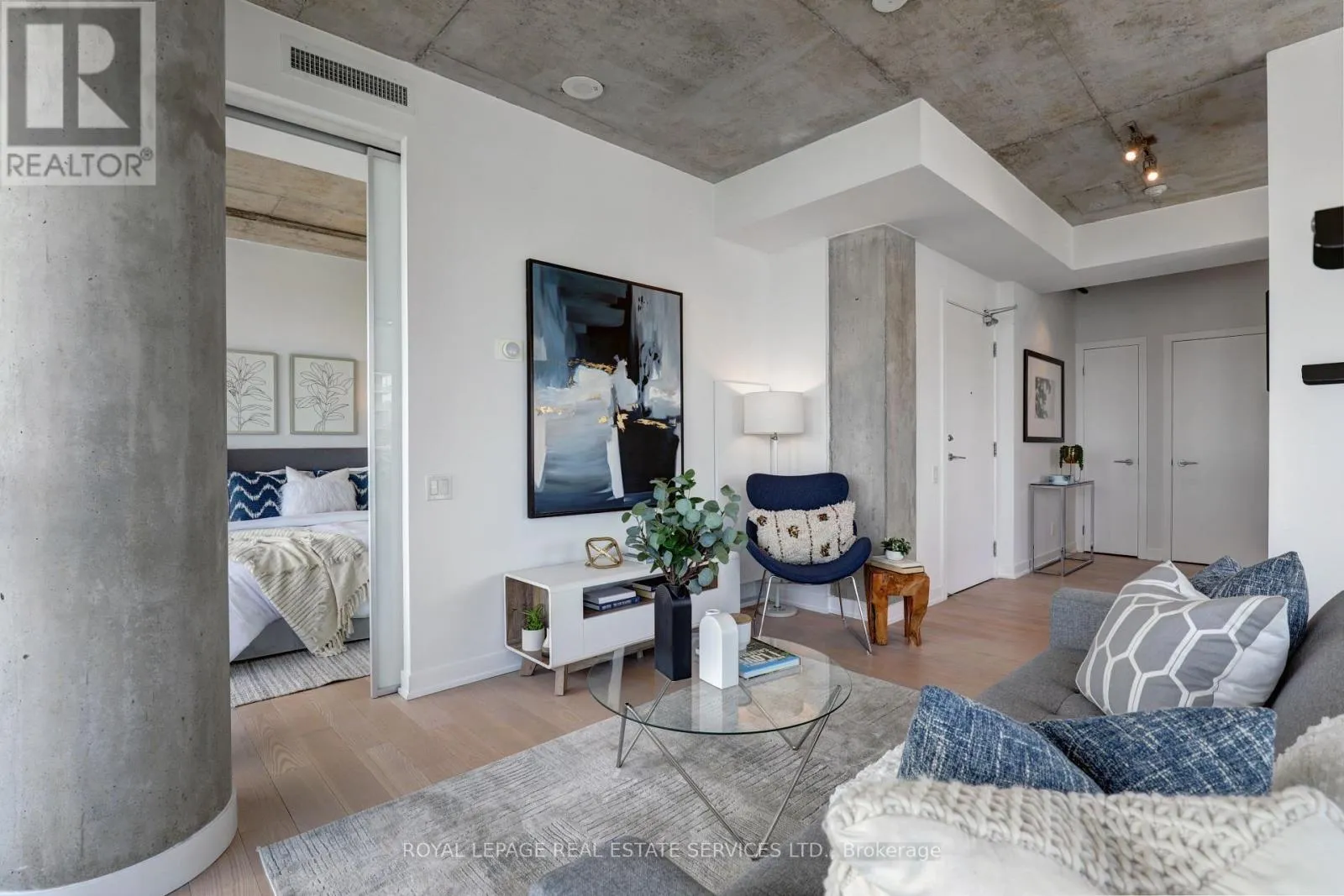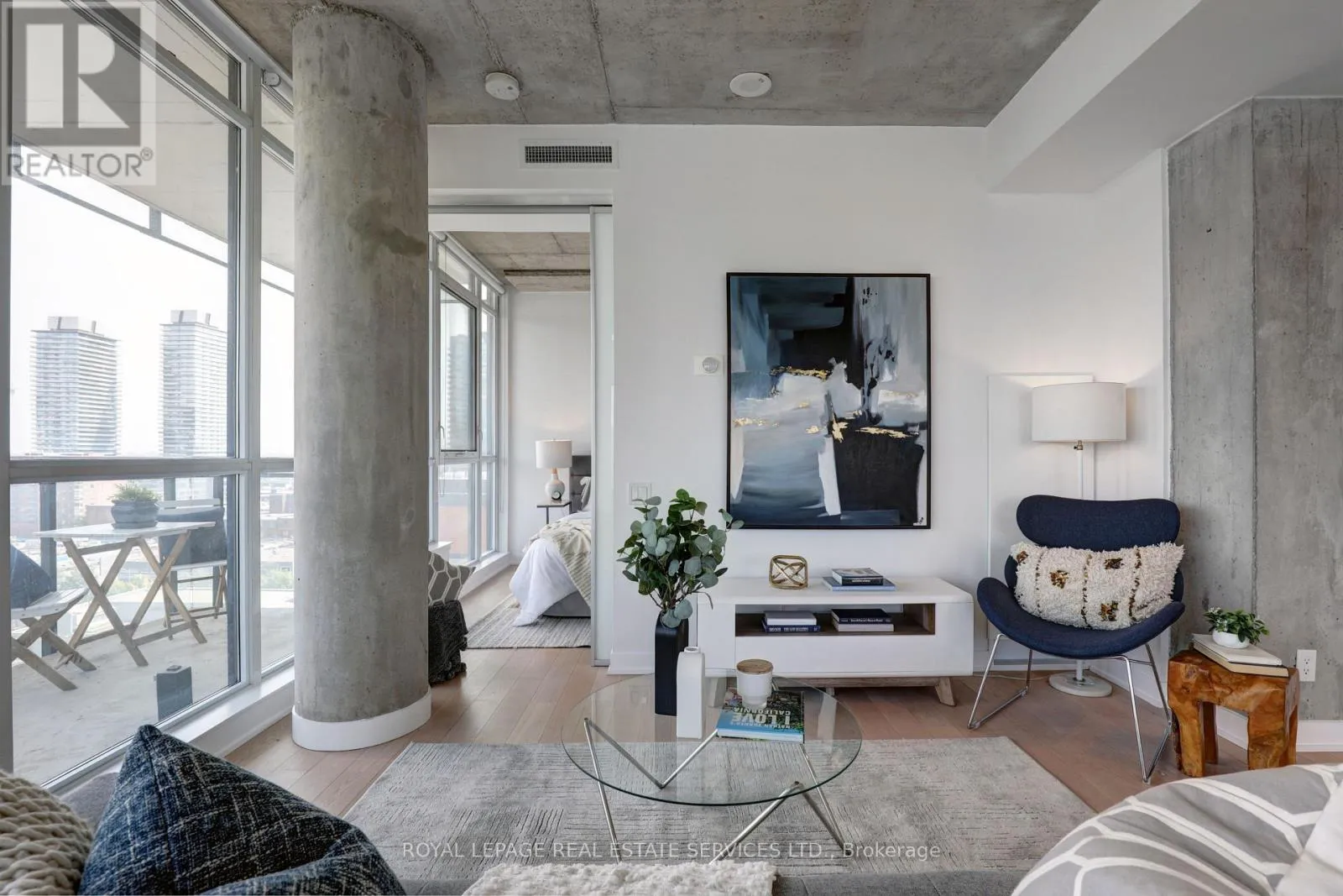 Cross Streets: King St E And Parliament. ** Directions: Per GPS. Experience contemporary sophistication in this stunning southwest corner residence at one of the most coveted addresses in the Lower East Side. Designed with an exceptional sense of space and light, this 1-bedroom, 1-bath suite showcases floor-to-ceiling glass, exposed concrete ceilings, and warm hardwood floors, creating a seamless blend of modern elegance and industrial edge.An expansive open-concept layout flows effortlessly onto a large private terrace (129 sq. ft.), perfectly suited for entertaining or quiet evenings overlooking the city skyline and shimmering lake views.Offering 624 sq. ft. of thoughtfully designed interiors, this soft loft embodies refined urban living at its best. Ideally positioned just steps from the Distillery District and with the streetcar at your door, 318 King delivers the ultimate in downtown convenience and style. Locker Included. (id:27476)