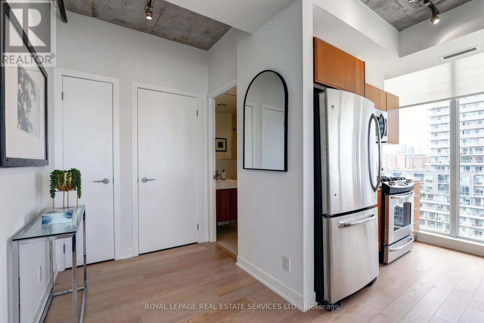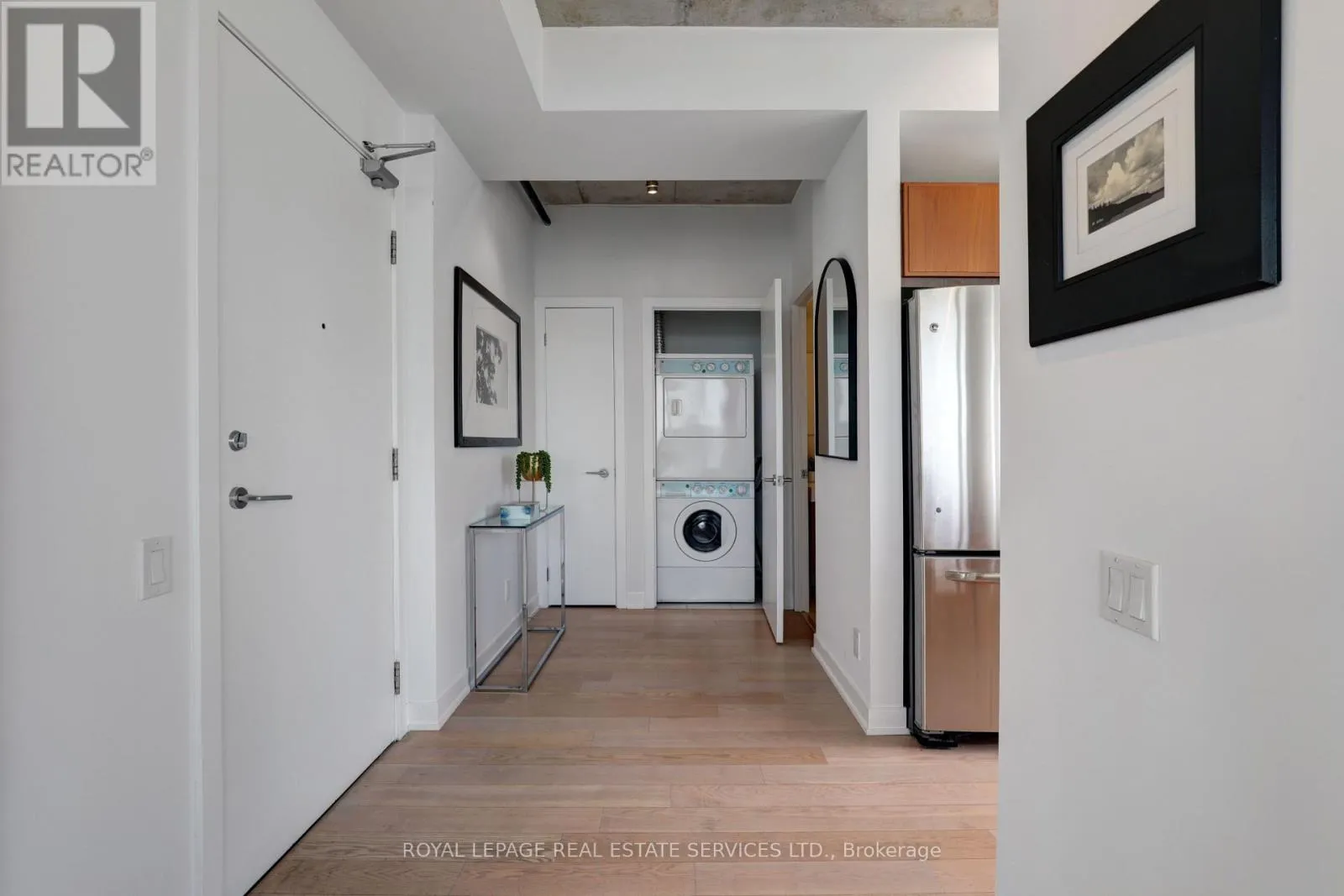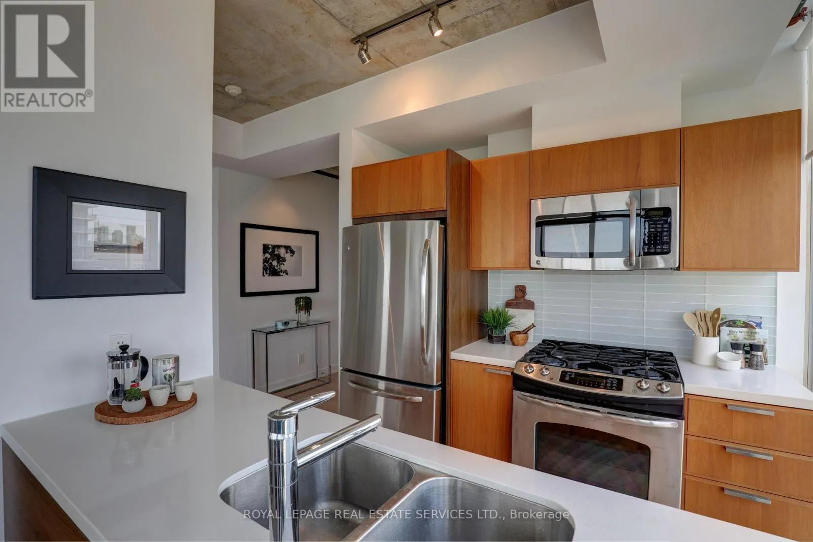 Cross Streets: King St E And Parliament. ** Directions: Per GPS. Experience contemporary sophistication in this stunning southwest corner residence at one of the most coveted addresses in the Lower East Side. Designed with an exceptional sense of space and light, this 1-bedroom, 1-bath suite showcases floor-to-ceiling glass, exposed concrete ceilings, and warm hardwood floors, creating a seamless blend of modern elegance and industrial edge.An expansive open-concept layout flows effortlessly onto a large private terrace (129 sq. ft.), perfectly suited for entertaining or quiet evenings overlooking the city skyline and shimmering lake views.Offering 624 sq. ft. of thoughtfully designed interiors, this soft loft embodies refined urban living at its best. Ideally positioned just steps from the Distillery District and with the streetcar at your door, 318 King delivers the ultimate in downtown convenience and style. Locker Included. (id:27476)