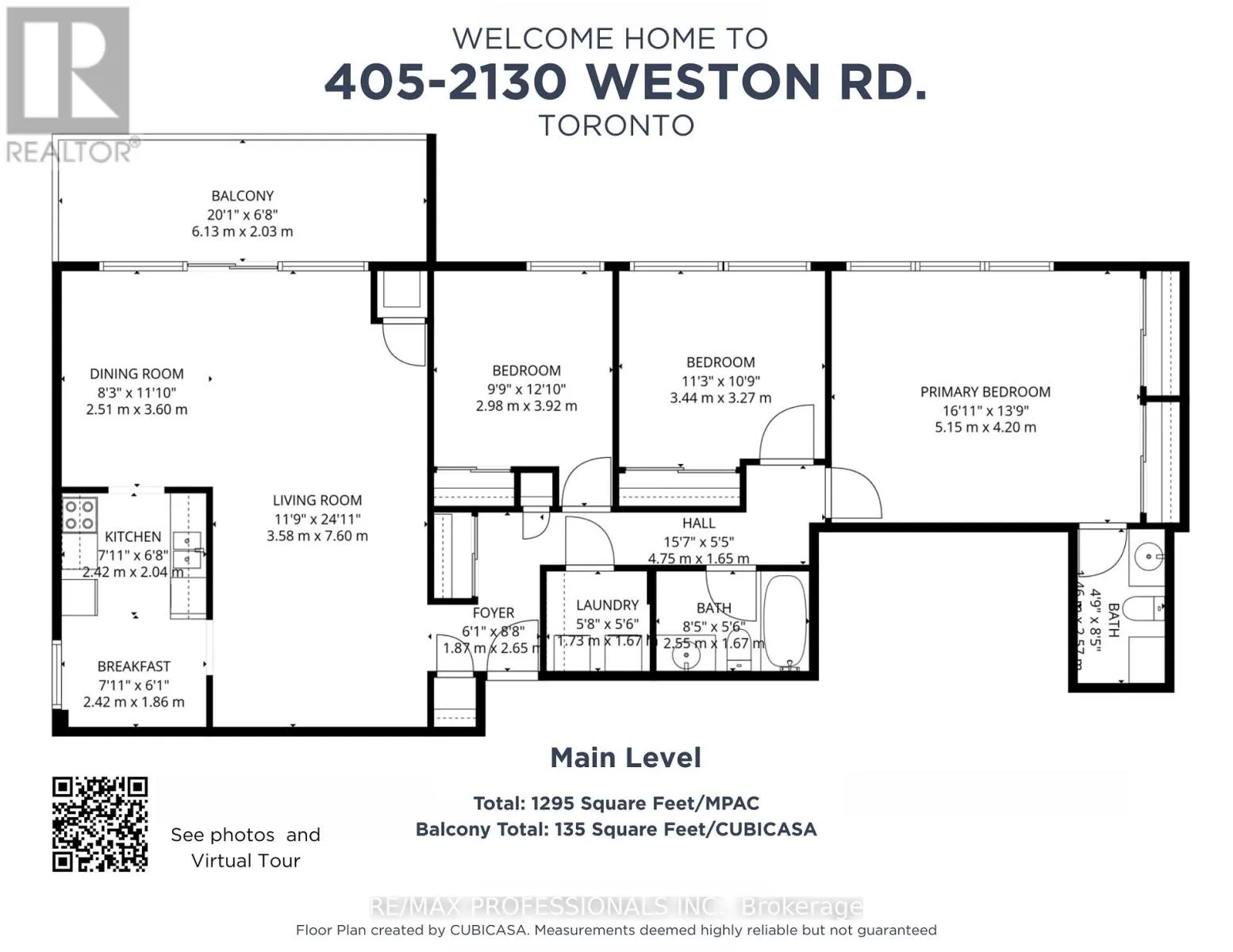 Cross Streets: Weston Rd & Church St. ** Directions: South on Weston Rd south of the 401. Welcome to Unit 405 at 2130 Weston Road - a rarely offered, exceptionally spacious 3-bedroom, 2-bathroom condo with 1,295 sq ft (MPAC) of bright, well-designed living space plus an oversized 135 sq ft balcony/CubiCasa)! This corner unit features large windows in every room, providing abundant natural light and serene south-western exposure overlooking mature trees and the Humber River. Enjoy a carpet-free lifestyle with hardwood floors in the open-concept living/dining room, laminate flooring in all three bedrooms, and tile in the front foyer, kitchen, bathrooms, and laundry room. The large, updated balcony with panoramic views has been recently reconditioned, and the unit features newer windows, a newer sliding door, and an in-suite laundry area equipped with a newer washer and dryer. Located in a well-managed, well-kept and sought-after building, this home is perfect for families, professionals, or downsizers seeking space, convenience, and tranquillity. Step outside to enjoy nearby outdoor trails, green space, and easy walking distance to both public and separate schools. Commuters will love the short walk to TTC bus stops, UP Express, GO Station, and the new Eglinton Crosstown LRT. For drivers, you're just minutes to major highways: 401 (3 mins), 400 (4 mins), 427 (8 mins), and 404 (15 mins). Condo fees offer excellent value and include: Water, Cable TV, High-Speed Internet, Parking, Building Insurance, Common Elements, Exercise Room, Party Room, Workshop, Additional Coin-op Laundry Room, and Separate Saunas for Men & Women. This is a fantastic opportunity to own a spacious, well-appointed condo in a convenient and evolving Toronto neighbourhood. Don't miss out on making this wonderful space your new home! (id:27476)