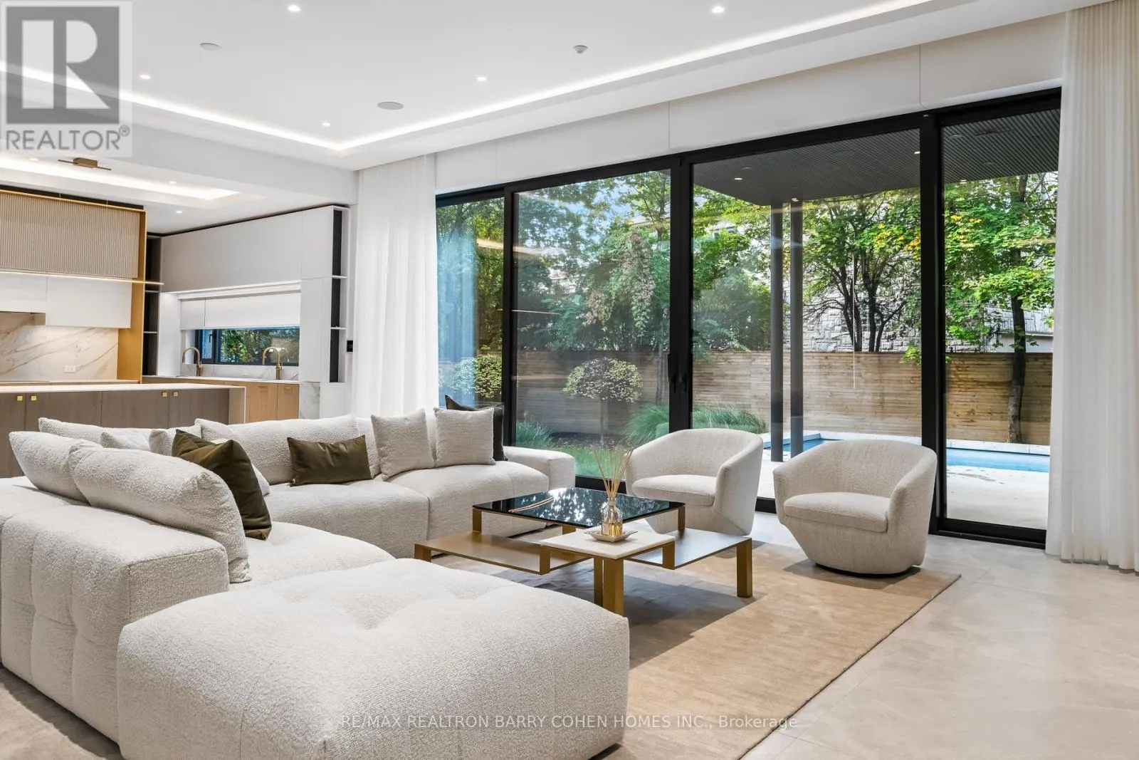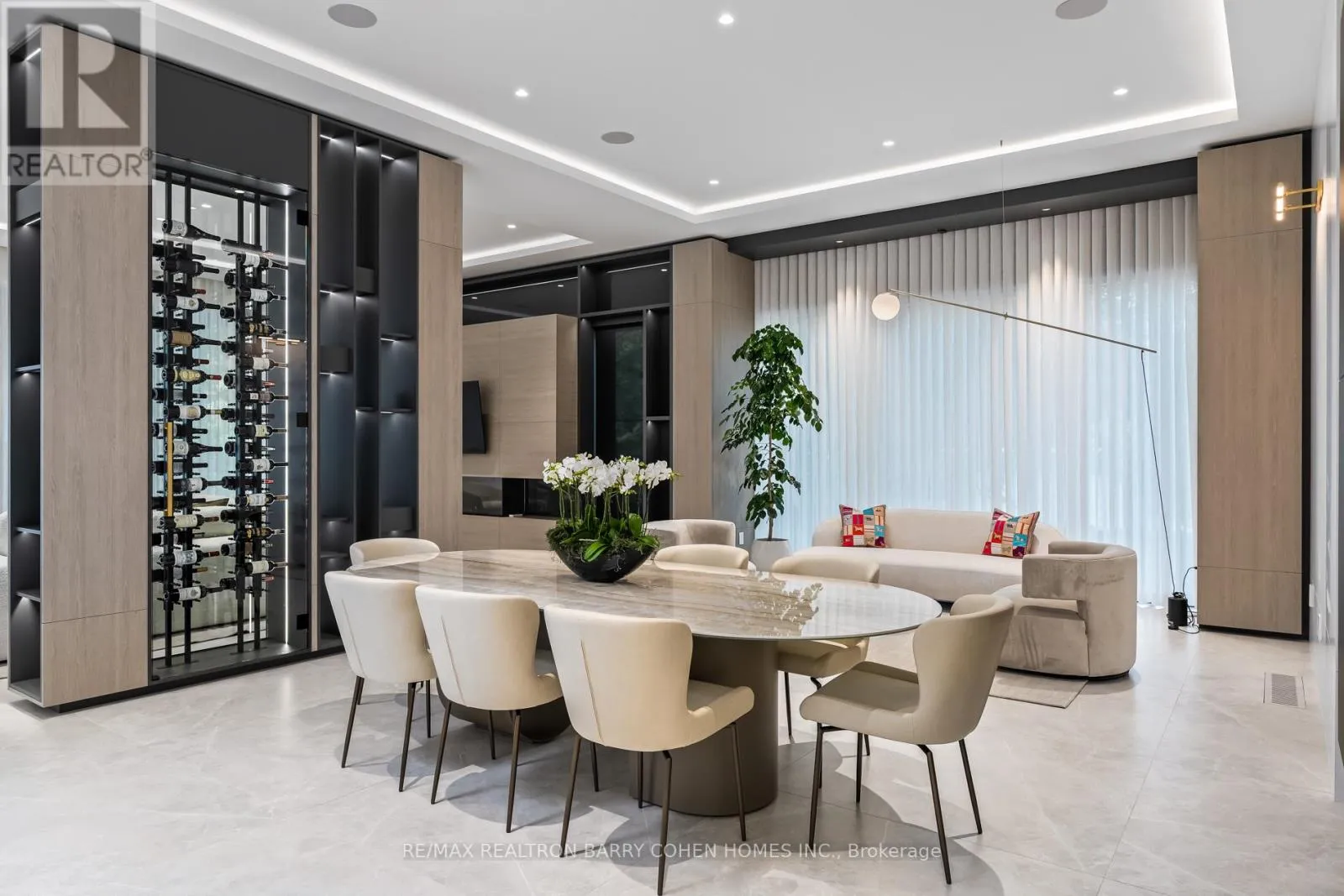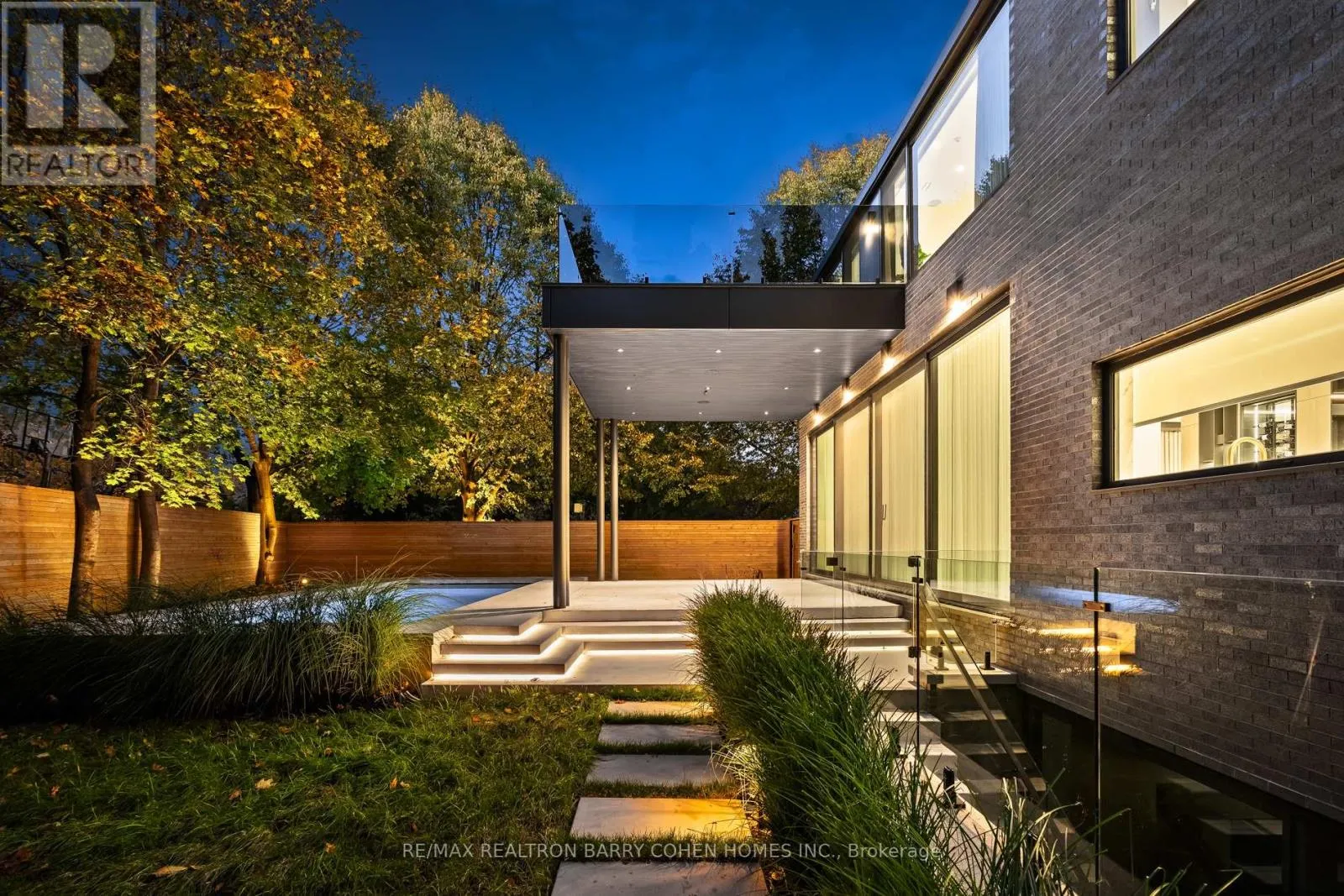 Cricket Club-Yonge Blvd/Wilson Custom Masterpiece On Coveted Corner Lot In The Cricket Club Neighbourhood Is the Pinnacle of Modern Luxury Living. Stunning Residence Has Been Meticulously Designed To Seamlessly Combine Modern Comfort With Functionality. The Home's Imposing Exterior Combines Brick And Modern ACM Panelling For Unparalleled Curb Appeal, Along W/ A Snow-Melting 4-Car Private Drive And Floating Concrete Stair Entry. The Interior Combines Soaring Ceilings w/ Floor-To-Ceiling Windows Throughout To Create An Unmatched Sense of Openness and Grandeur. The Main Floor Immediately Greets You With Premium Finishes That Continue Throughout The Entire Property. Bespoke Lighting, Automated Window Coverings, And A Breathtaking Oversized Sliding Glass Wall Allow The Spacious Family Room To Flow Seamlessly To The Outdoor Dining Area Overlooking The Heated Pool. The Stunning Chef's Kitchen With Premium-Grade Appliances, Striking Wine Display, Dining Room And Lounge Complete The Main Floor's Meticulously Engineered Open Plan Layout To Make This Property The Perfect Place To Relax And Entertain Guests. A Modern Concrete Staircase And Central Elevator Service Every Level In The Home Including The Guest Suite Level, 2nd Floor, Mudroom Mezzanine, and Lower Level. Over 2000 SQFT Has Been Allocated to The Primary Retreat With A Sprawling Dressing Room, Luxurious 7-Piece Ensuite and Private Terrace Overlooking The Rear Garden. Three More Spacious Bedrooms w/ Ensuites Plus A Fully Equipped Laundry Room Complete The 2nd Floor. Guest Level Includes One Bedroom with Ensuite & Den/Office. The Lower Level Has Been Designed And Executed With The Same Level Of Detail As The Rest Of The Residence To Include In-Home Staff Suite, Exercise Room W/Ensuite, Rec Room W/A Full Bar, Theatre, And Convenient Pool Change Room With Walkup To The Rear Garden. Control4 Automation Adds To The Home's Luxurious Functionality. Ideally Located Near Top-Ranked Schools And A Short Drive From Yonge St and HWY 401 For Effortless Commuting. (id:27476)