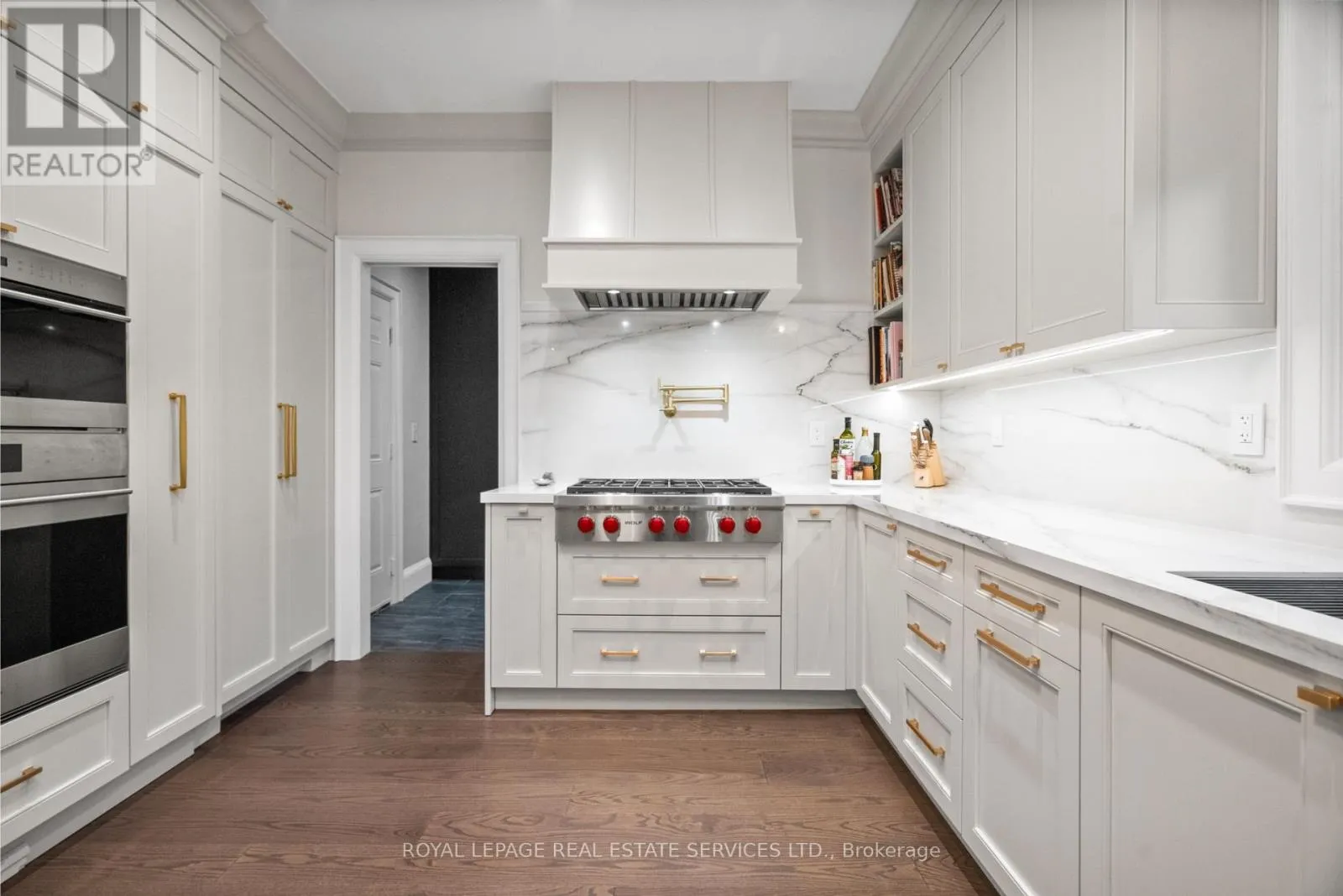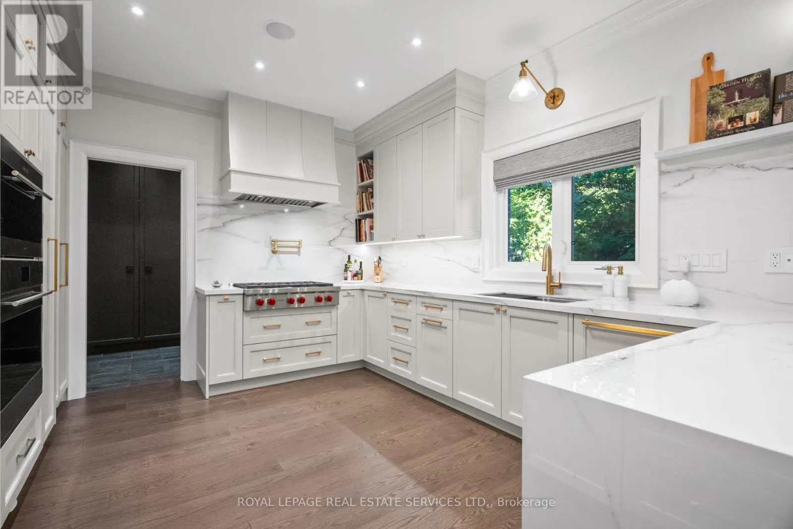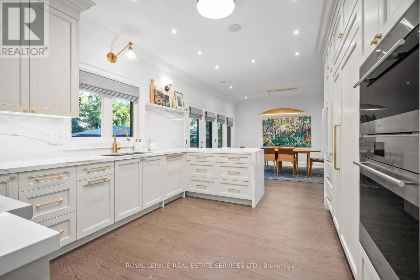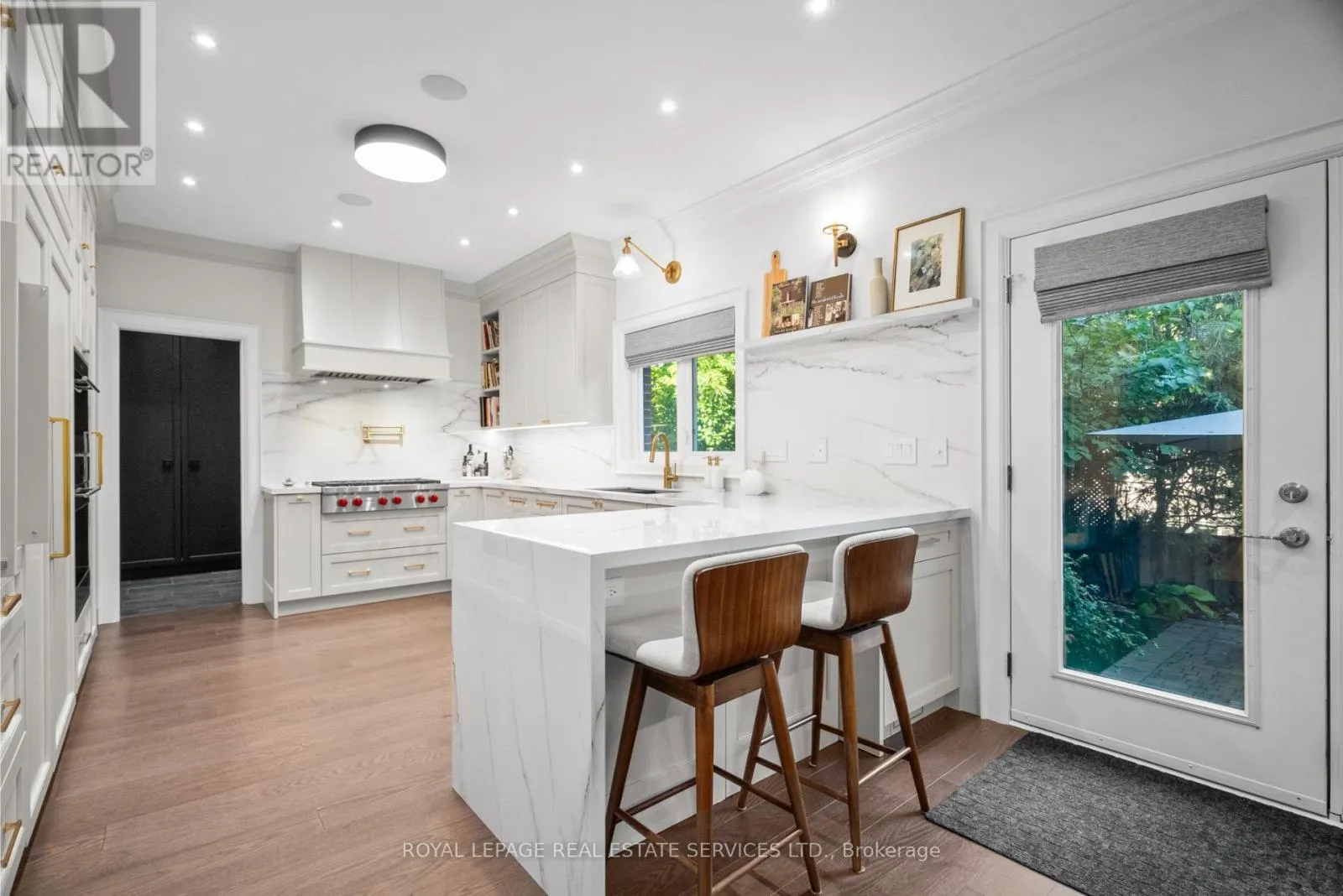 Government/The Kingsway Welcome to 132 Strath Avenue in The Kingsway - Set on one of the neighbourhoods most prestigious streets, this custom-built residence combines timeless elegance with modern renovations for the ultimate family home. Thoughtfully updated throughout, it offers over 4,000 sqft of luxurious living space designed for both comfort and entertaining. The main floor greets you with a grand foyer featuring classic wainscotting, setting the tone for the homes refined style. A stunning new kitchen is the heart of the home, complete with Quartz counters, breakfast bar, Sub-Zero, Wolf, and Miele appliances, plus a clever built-in pot filler in the dog nook. The open concept kitchen flows seamlessly into the family/dining room with walk-out to the backyard. Formal living and dining/family rooms, a spacious home office, a gorgeous new powder room, and a custom mudroom with abundant storage and direct garage access complete this level. Upstairs, 4 spacious bedrooms include a private primary retreat with a walk-in closet, 6pc ensuite with double showers, and a Juliette balcony. A 2nd bedroom enjoys its own ensuite, while the 3rd and 4th share a stylish Jack & Jill bath - ideal for growing families. The fully finished lower level expands the living space with a versatile rec room, state-of-the-art laundry, gym/5th bedroom, and an epic den with wet bar - the perfect man cave or teen hangout. A walk-up provides direct access to the backyard. Outside, a low-maintenance yard with patio and turf offers both space to entertain and room for kids to play. Located just steps to LKS, and within walking distance of Bloor Streets boutiques, cafes, dining, and the subway - this is the quintessential Kingsway lifestyle. (id:27476)