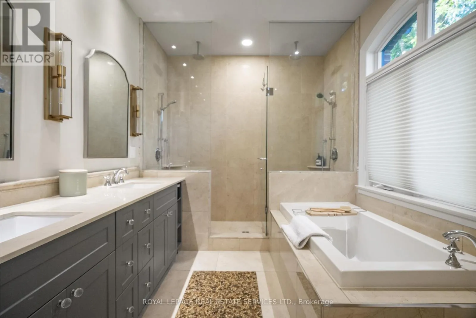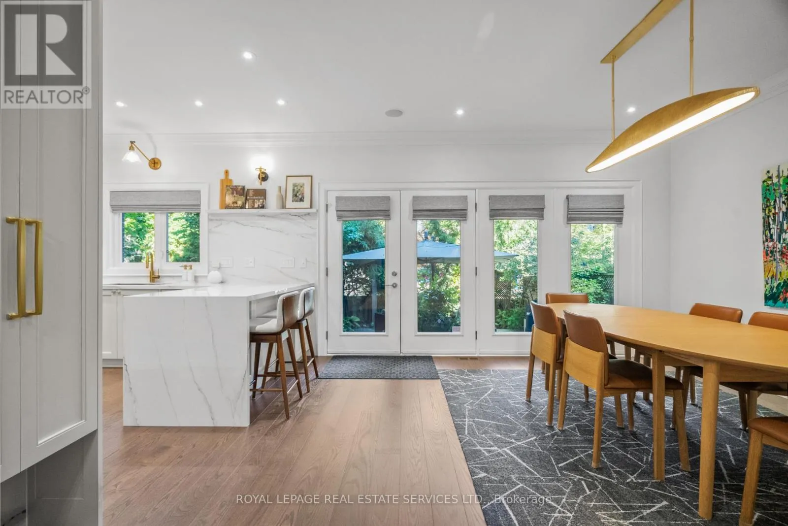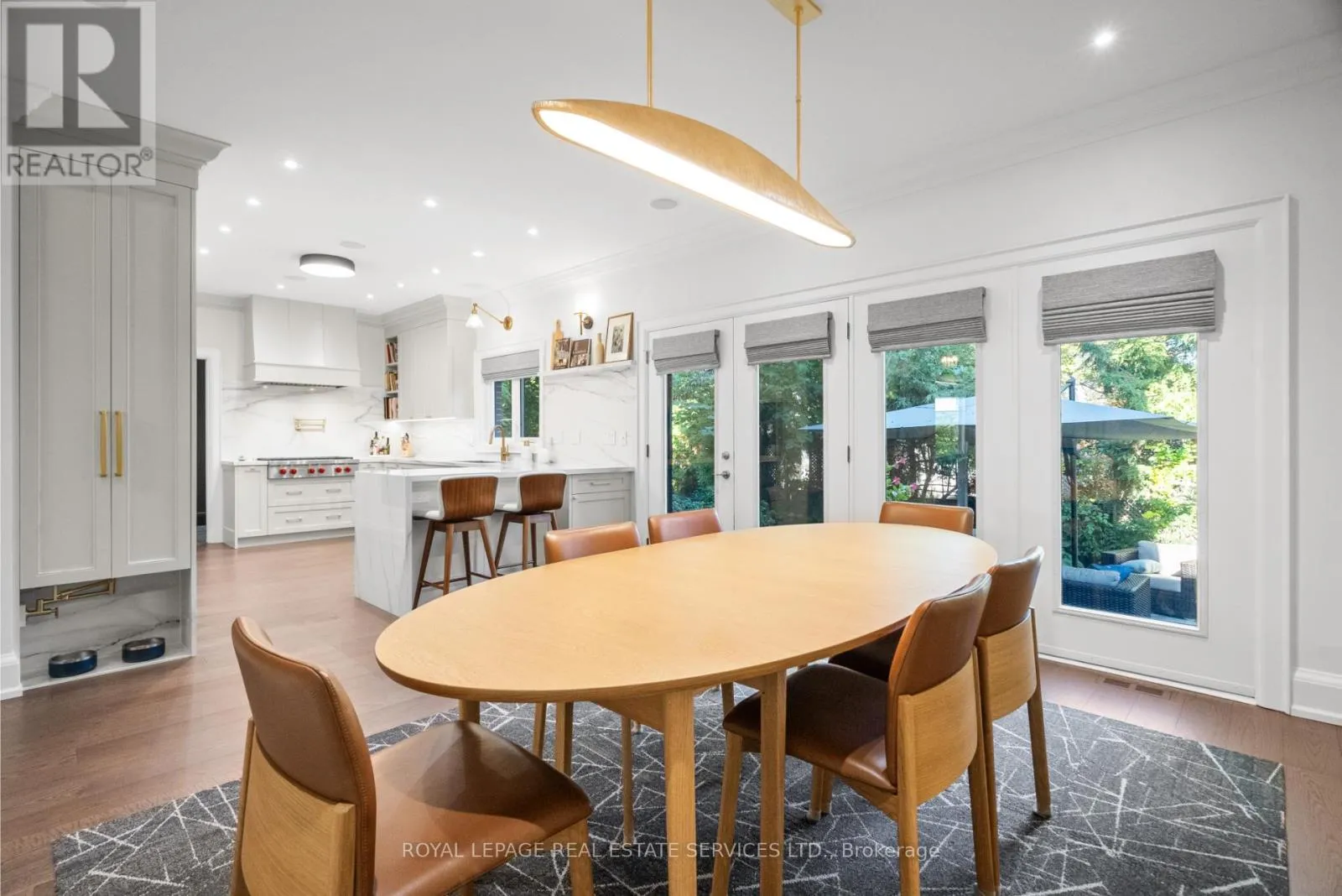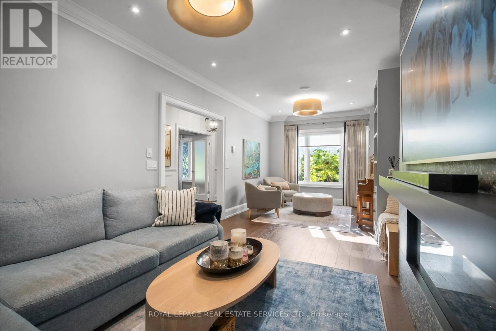 Government/The Kingsway Welcome to 132 Strath Avenue in The Kingsway - Set on one of the neighbourhoods most prestigious streets, this custom-built residence combines timeless elegance with modern renovations for the ultimate family home. Thoughtfully updated throughout, it offers over 4,000 sqft of luxurious living space designed for both comfort and entertaining. The main floor greets you with a grand foyer featuring classic wainscotting, setting the tone for the homes refined style. A stunning new kitchen is the heart of the home, complete with Quartz counters, breakfast bar, Sub-Zero, Wolf, and Miele appliances, plus a clever built-in pot filler in the dog nook. The open concept kitchen flows seamlessly into the family/dining room with walk-out to the backyard. Formal living and dining/family rooms, a spacious home office, a gorgeous new powder room, and a custom mudroom with abundant storage and direct garage access complete this level. Upstairs, 4 spacious bedrooms include a private primary retreat with a walk-in closet, 6pc ensuite with double showers, and a Juliette balcony. A 2nd bedroom enjoys its own ensuite, while the 3rd and 4th share a stylish Jack & Jill bath - ideal for growing families. The fully finished lower level expands the living space with a versatile rec room, state-of-the-art laundry, gym/5th bedroom, and an epic den with wet bar - the perfect man cave or teen hangout. A walk-up provides direct access to the backyard. Outside, a low-maintenance yard with patio and turf offers both space to entertain and room for kids to play. Located just steps to LKS, and within walking distance of Bloor Streets boutiques, cafes, dining, and the subway - this is the quintessential Kingsway lifestyle. (id:27476)