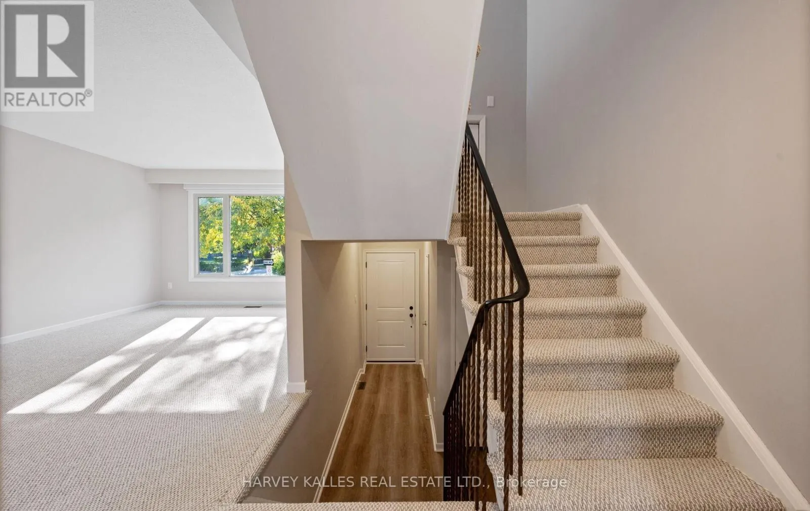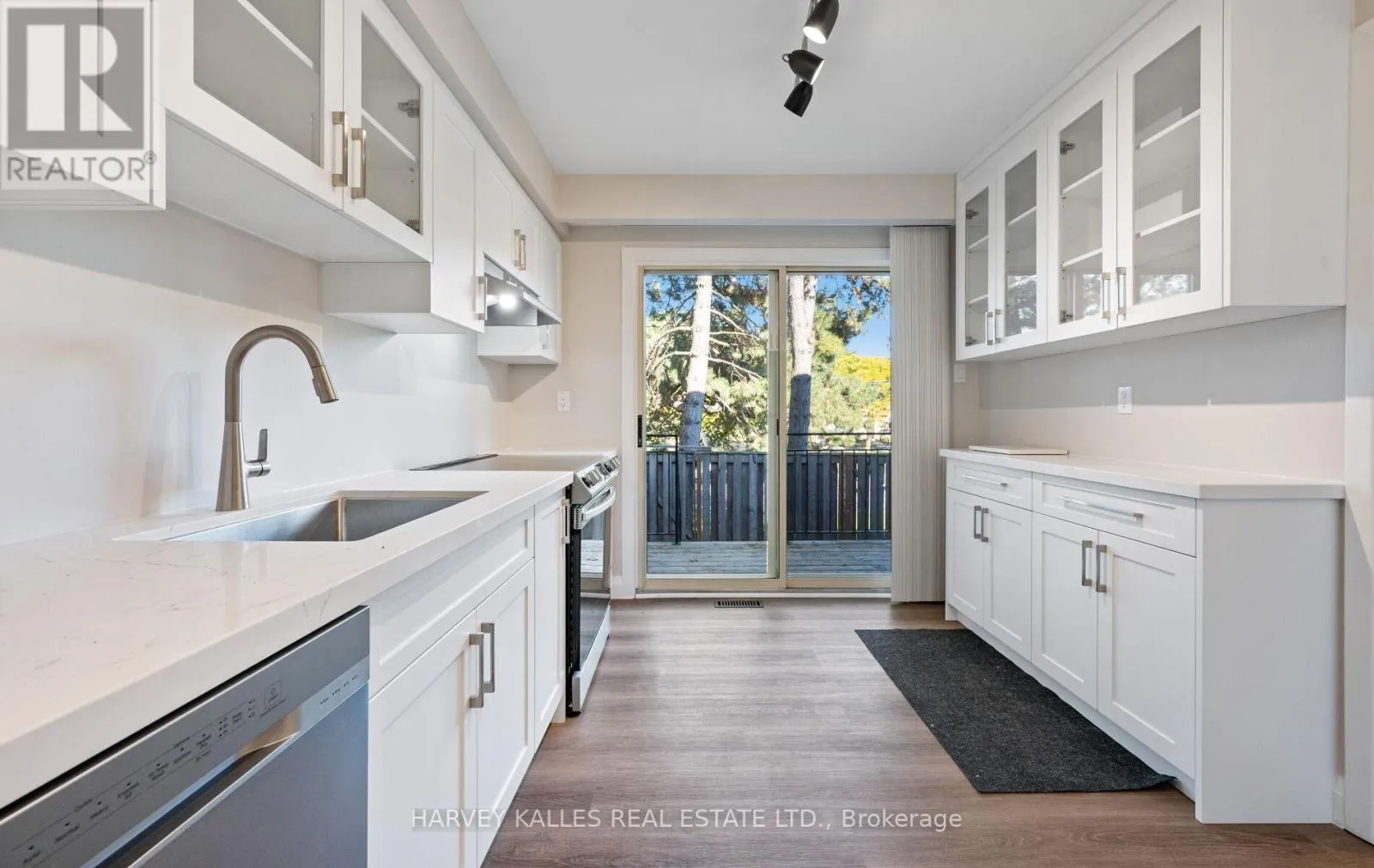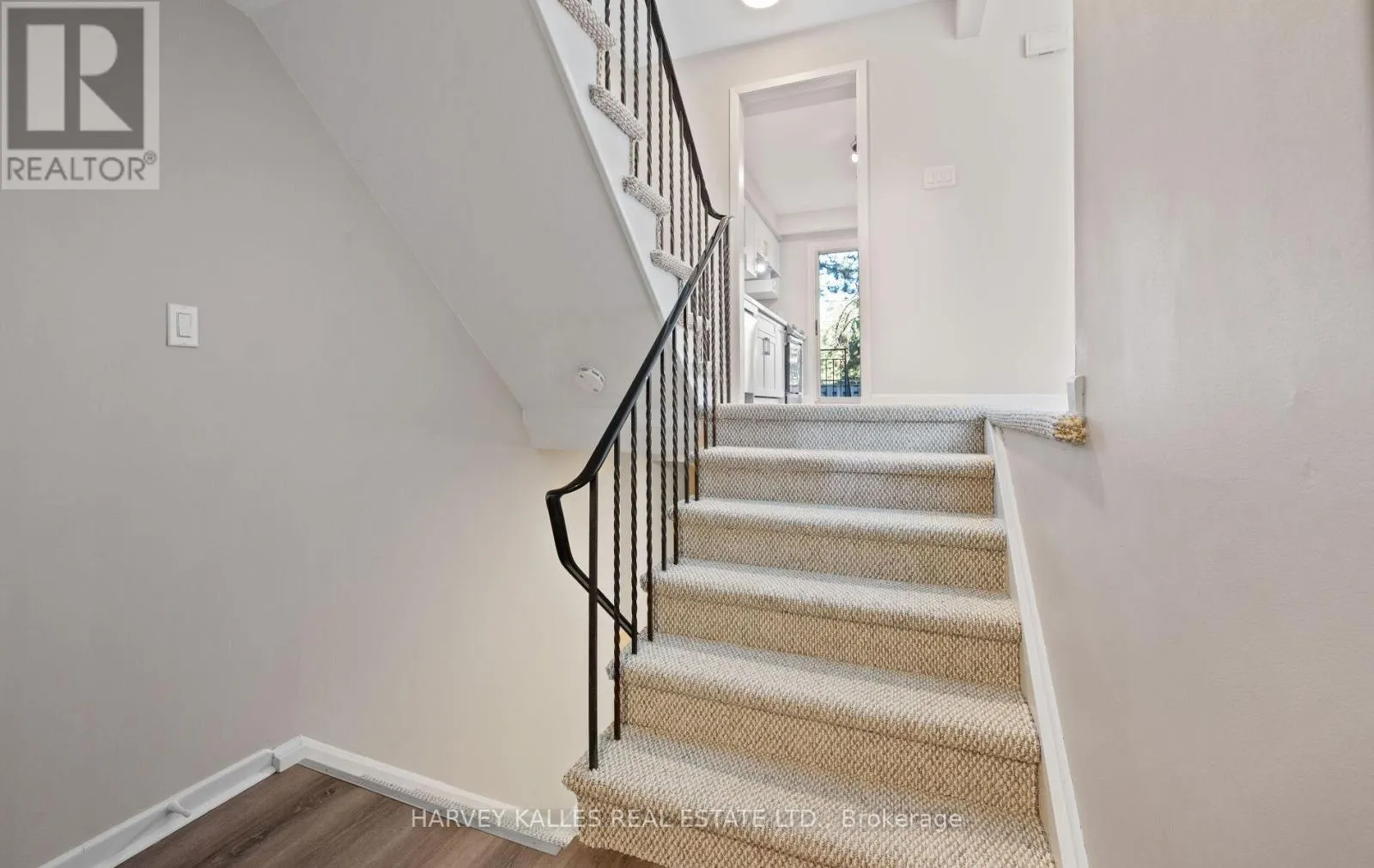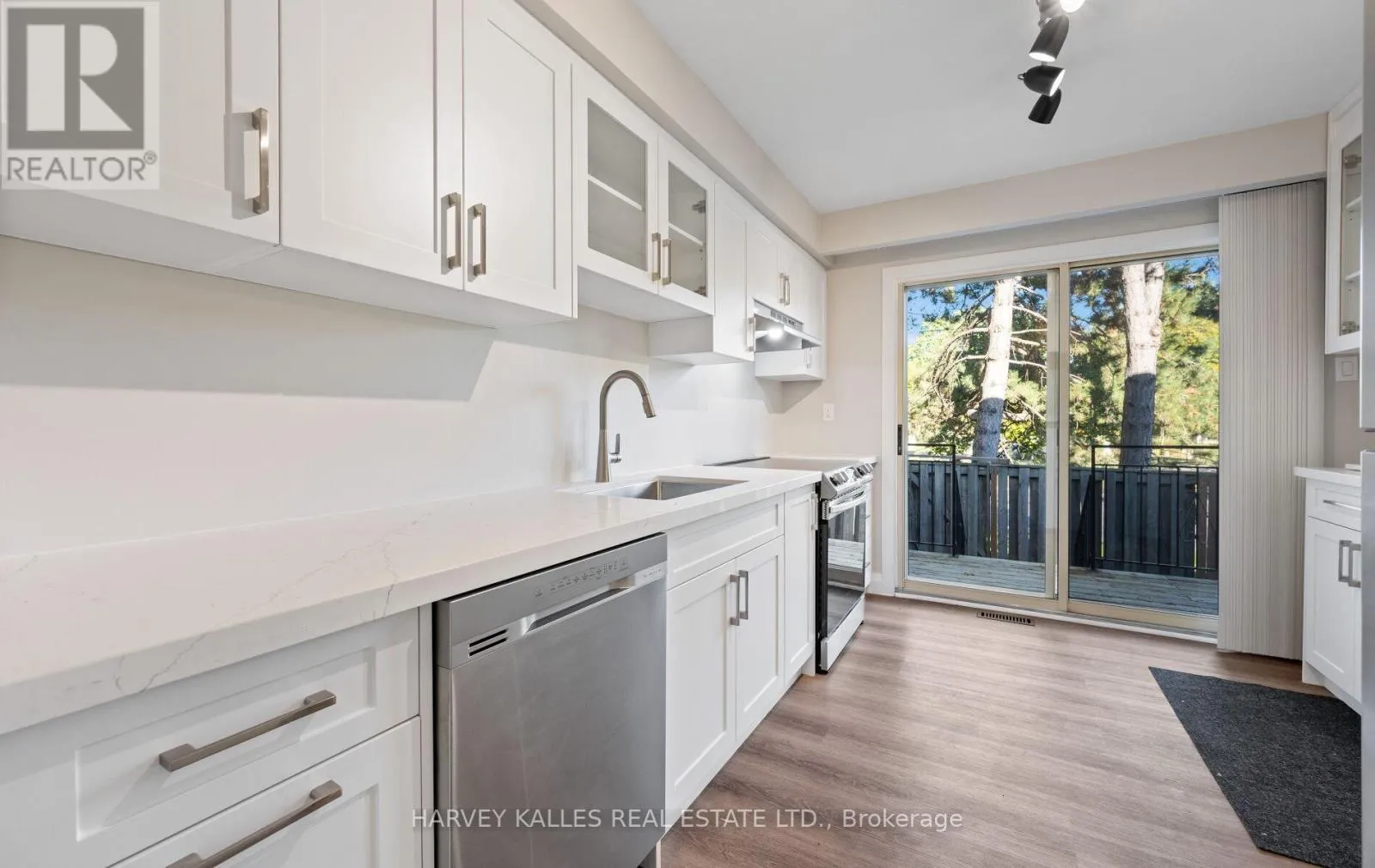 Burnhamthorpe / Mill Welcome to 18 Silver Shadow Path, a beautifully updated townhouse situated in the highly sought-after Markland Wood community. This charming home offers a perfect blend of modern upgrades and comfortable living spaces, making it an ideal place for families, professionals, or anyone looking for a welcoming and functional home. The heart of the home is the chef's kitchen, featuring stunning quartz countertops that provide both style and durability. The kitchen is equipped with high-quality stainless steel appliances, making meal preparation a breeze. From here, step out onto a spacious deck and large patio area perfect for outdoor dining, summer barbecues, or simply relaxing while enjoying the serene surroundings. The open-concept living and dining room creates a bright and airy environment, ideal for entertaining guests or enjoying quality family time. Large windows flood the space with natural light, enhancing the warm and inviting atmosphere. Upstairs, you'll find three generously-sized bedrooms, each offering ample closet space and new broadloom carpeting for added comfort. The large four-piece bathroom is modern and functional, providing a relaxing space for daily routines. The lower level features a spacious recreation room, offering versatile space for a home theater, gym, playroom, or additional living area. The entire home has been thoughtfully maintained and updated, ensuring comfort and style throughout. Additional highlights include a friendly neighborhood setting, nearby amenities, parks, and easy access to transportation routes. Whether you're looking for a family home or a low-maintenance property with plenty of space, offering a wonderful opportunity to settle into a vibrant community with all the comforts of modern living. (id:27476)