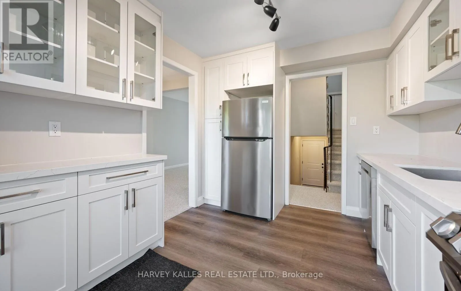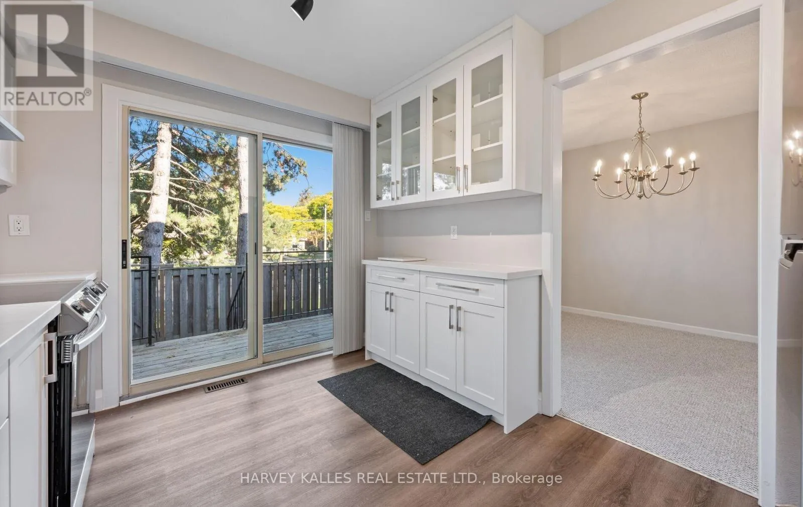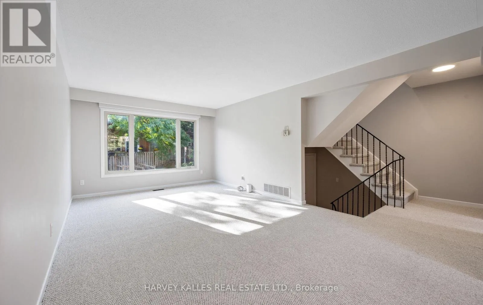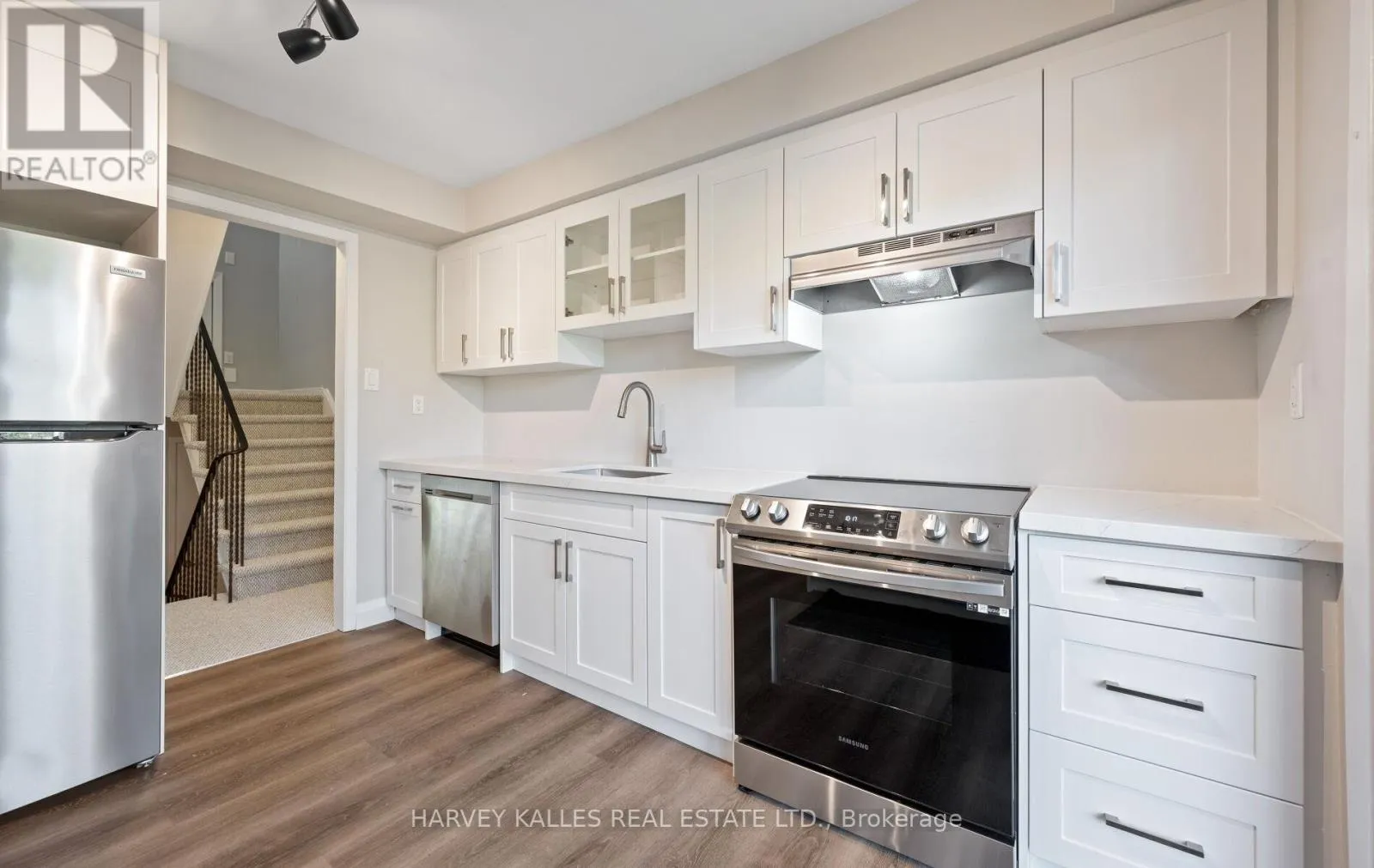 Burnhamthorpe / Mill Welcome to 18 Silver Shadow Path, a beautifully updated townhouse situated in the highly sought-after Markland Wood community. This charming home offers a perfect blend of modern upgrades and comfortable living spaces, making it an ideal place for families, professionals, or anyone looking for a welcoming and functional home. The heart of the home is the chef's kitchen, featuring stunning quartz countertops that provide both style and durability. The kitchen is equipped with high-quality stainless steel appliances, making meal preparation a breeze. From here, step out onto a spacious deck and large patio area perfect for outdoor dining, summer barbecues, or simply relaxing while enjoying the serene surroundings. The open-concept living and dining room creates a bright and airy environment, ideal for entertaining guests or enjoying quality family time. Large windows flood the space with natural light, enhancing the warm and inviting atmosphere. Upstairs, you'll find three generously-sized bedrooms, each offering ample closet space and new broadloom carpeting for added comfort. The large four-piece bathroom is modern and functional, providing a relaxing space for daily routines. The lower level features a spacious recreation room, offering versatile space for a home theater, gym, playroom, or additional living area. The entire home has been thoughtfully maintained and updated, ensuring comfort and style throughout. Additional highlights include a friendly neighborhood setting, nearby amenities, parks, and easy access to transportation routes. Whether you're looking for a family home or a low-maintenance property with plenty of space, offering a wonderful opportunity to settle into a vibrant community with all the comforts of modern living. (id:27476)