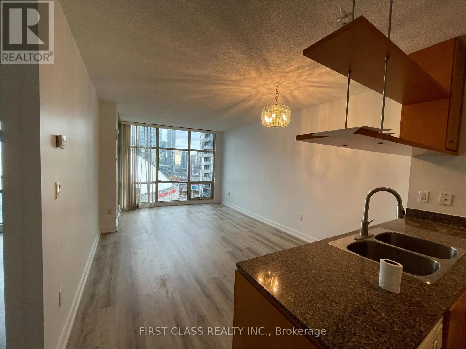 Bremner & Spadina This Renovated Spacious 1 + Den Unit Features Fresh Paint And New Flooring. Unobstructed Views Of The CN Tower And The Lake. Open Concept With Floor-Ceiling Windows. Parking & Locker. The Den Can Be Used as a Second Bedroom Or Office, Door will be install. Most comprehensive amenities in DT Toronto, Over 30,000 Sq Ft, Gym, Bowling Alley, Tennis Court, Squash Court, and Basketball Court. Steps To Transit, Restaurants, Groceries, Shopping, Daycare, Schools, Rogers Center, The Lake, and All Downtown Has To Offer. (id:27476)