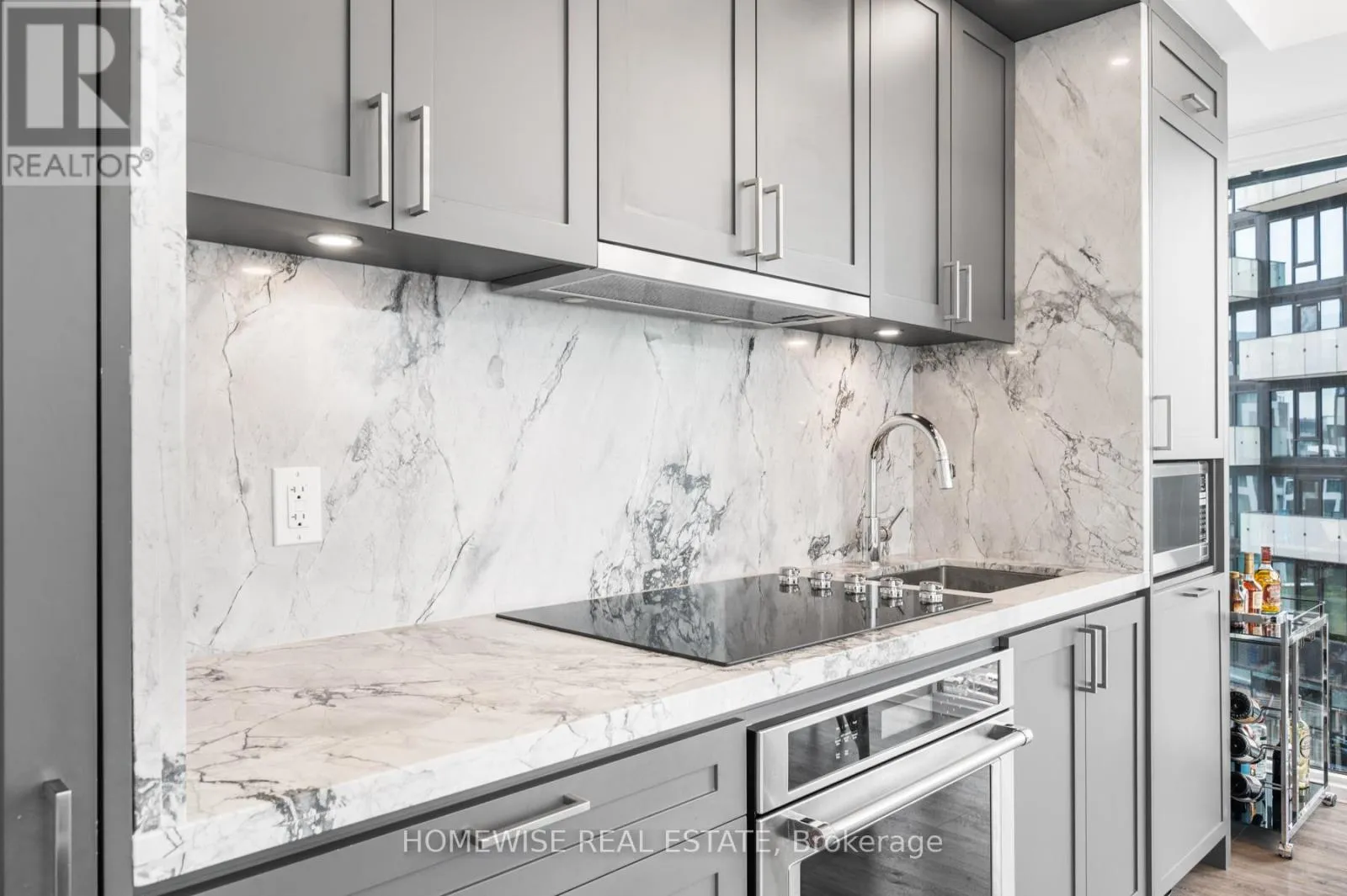 Front St W and Spadina Ave $60,000 + in upgrades, and the best layout in the most prestigious new complex in downtown Toronto! Welcome to the Well! Live in luxury with 2 spacious bedrooms and 2 stunning bathrooms. Every inch of this gorgeous condo is upgraded - MDF kitchen cabinets, Quartzite backsplash and double thick counters, premium bathroom tiles, custom closets, potlights, and premium flooring throughout. This layout does not last! The Well redefines luxury urban living. Step outside your door to a world of high-end boutiques, gourmet dining, and the vibrant Wellington Market - or unwind with five-star amenities including a state-of-the-art fitness centre, outdoor pool, concierge service, and elegant social lounges. Just moments from the waterfront, King West, and the Financial District, this is downtown living at its absolute finest. (id:27476)