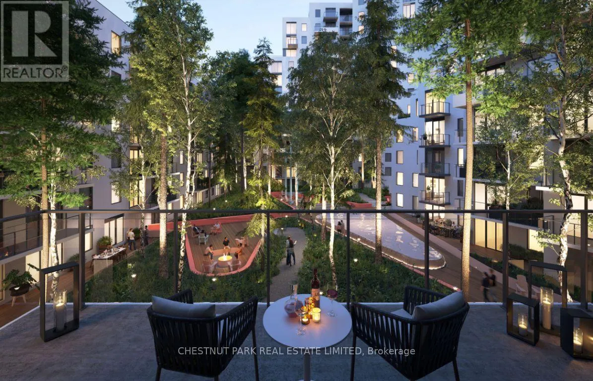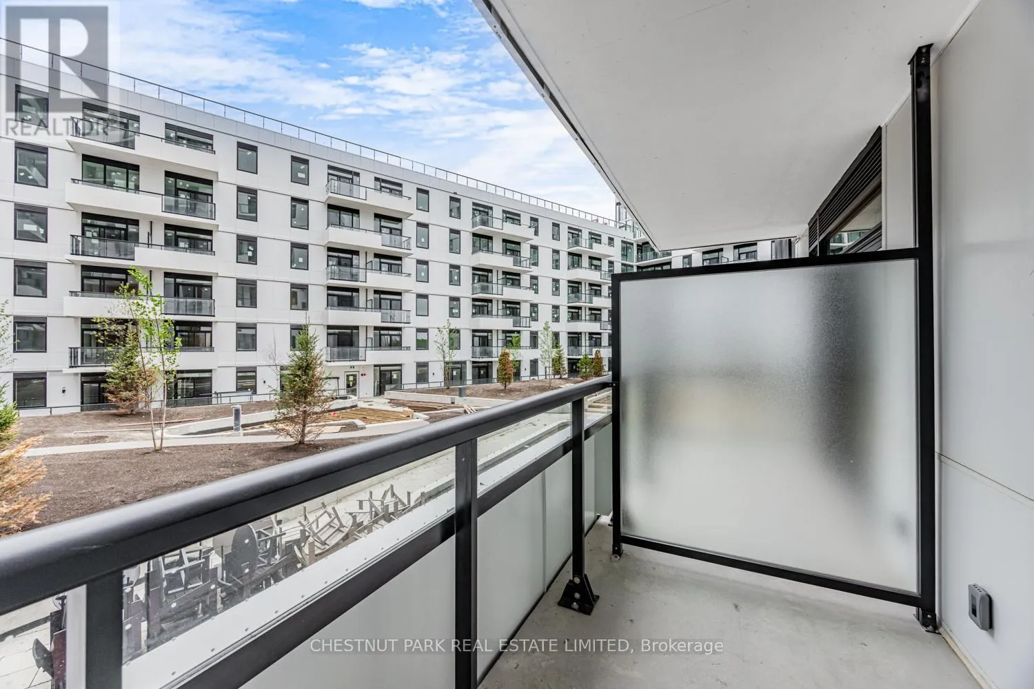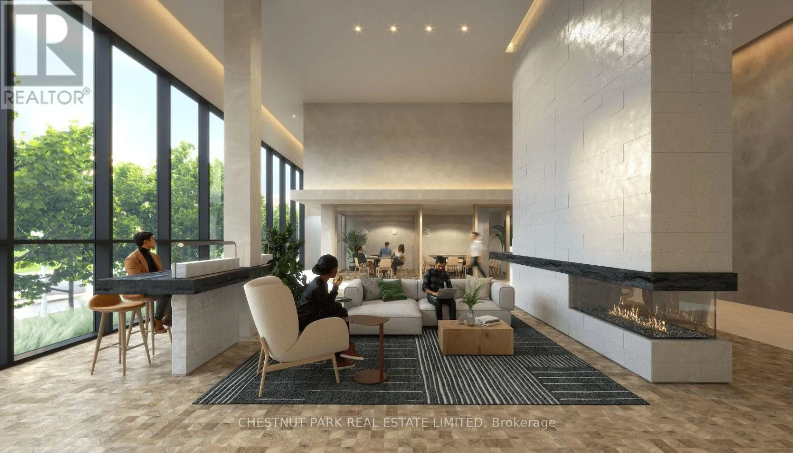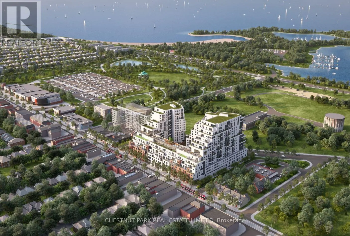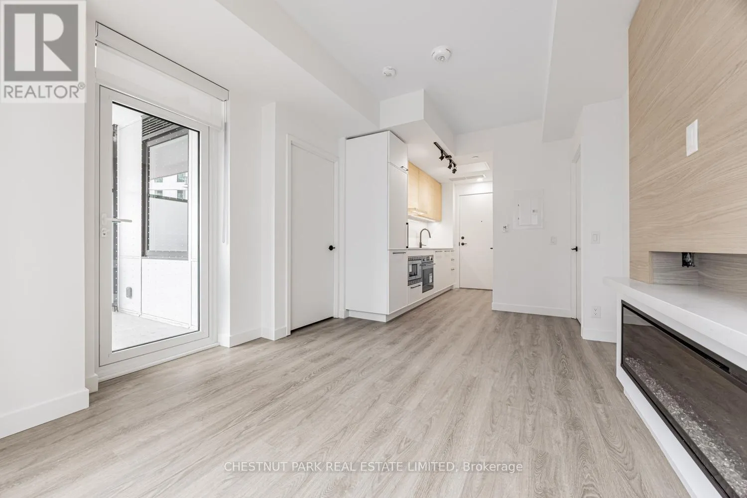 Cross Streets: Queen & Coxwell. ** Directions: Across Woodbine Park & Ashbridges Bay. Upgraded 1 bedroom with fireplace & rooftop green views at Queen & Ashbridge Condominiums. Open concept layout with light, bright & modern finishes including oak design vinyl flooring throughout, spacious walk-in closet and electric fireplace. Kitchen features quartz countertops/backsplash and integrated appliances. Stylish bathroom includes soaker tub, handheld shower head with slide bar and vanity with storage drawers. Balcony overlooks podium rooftop urban forest with trees and resident gardening plots, away from the surrounding streets. Building will feature exceptional amenities for this location, including concierge, spacious fitness centre (spin studio, cardio area, strength training area, functional training space, yoga studio, change rooms & steam rooms), beautifully furnished co-working space with double-height ceilings and windows, sky lounge with BBQ terrace and 7 guest suites. Located directly across from Woodbine Park with services, shopping, dining, and entertainment at doorstep. Quick commute to downtown via 501 streetcar or bike along Lake Shore. Farm Boy, Loblaw's & Bruno's Fine Foods approximately 15 minute walk away. Some images have been virtually staged. (id:27476)