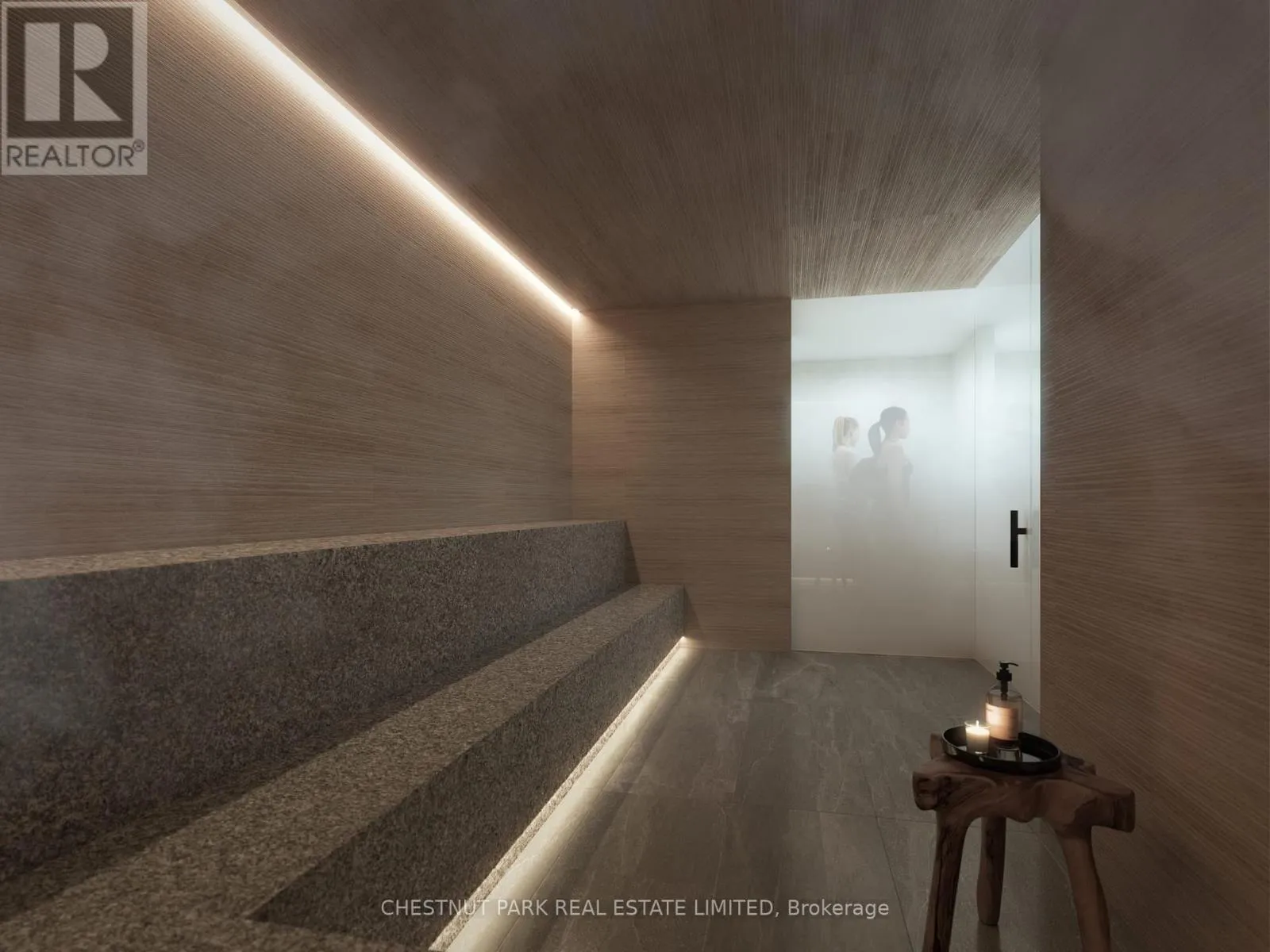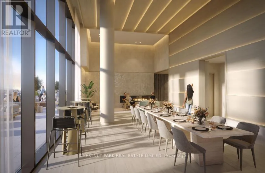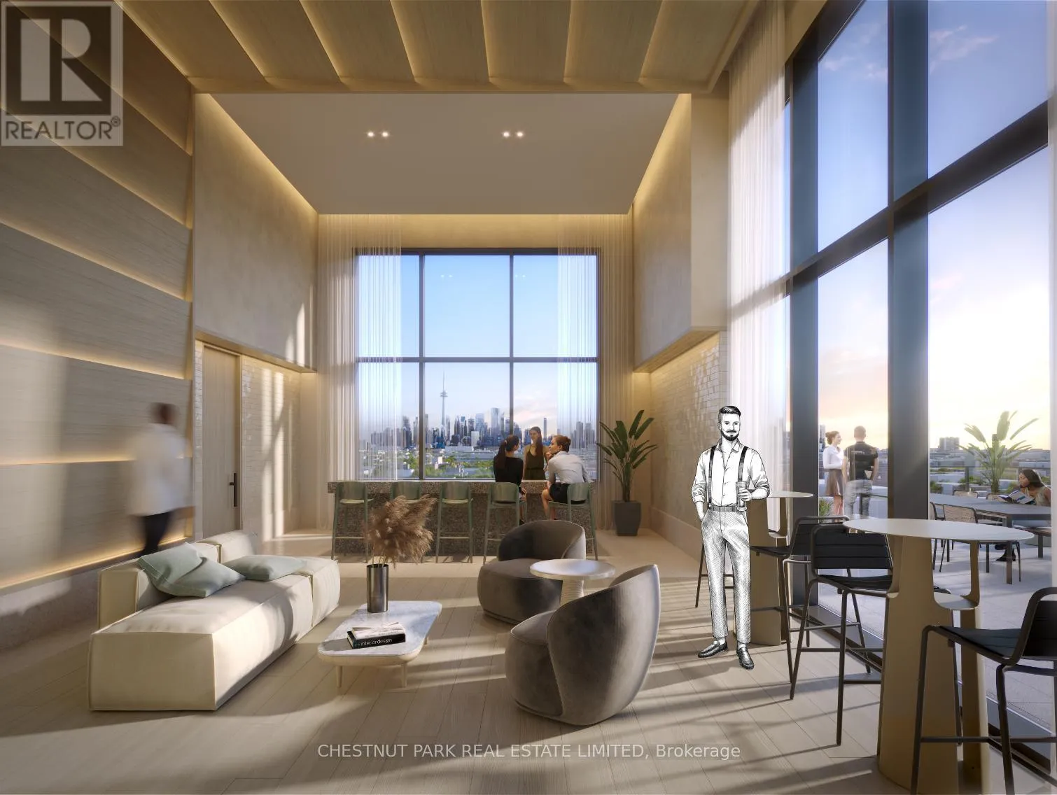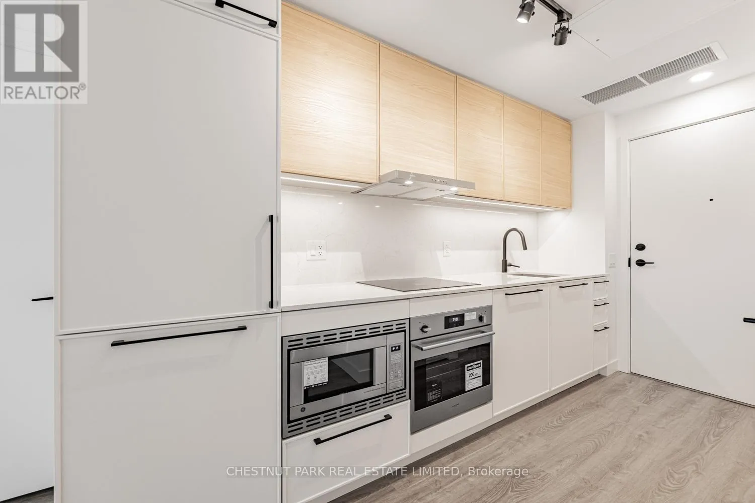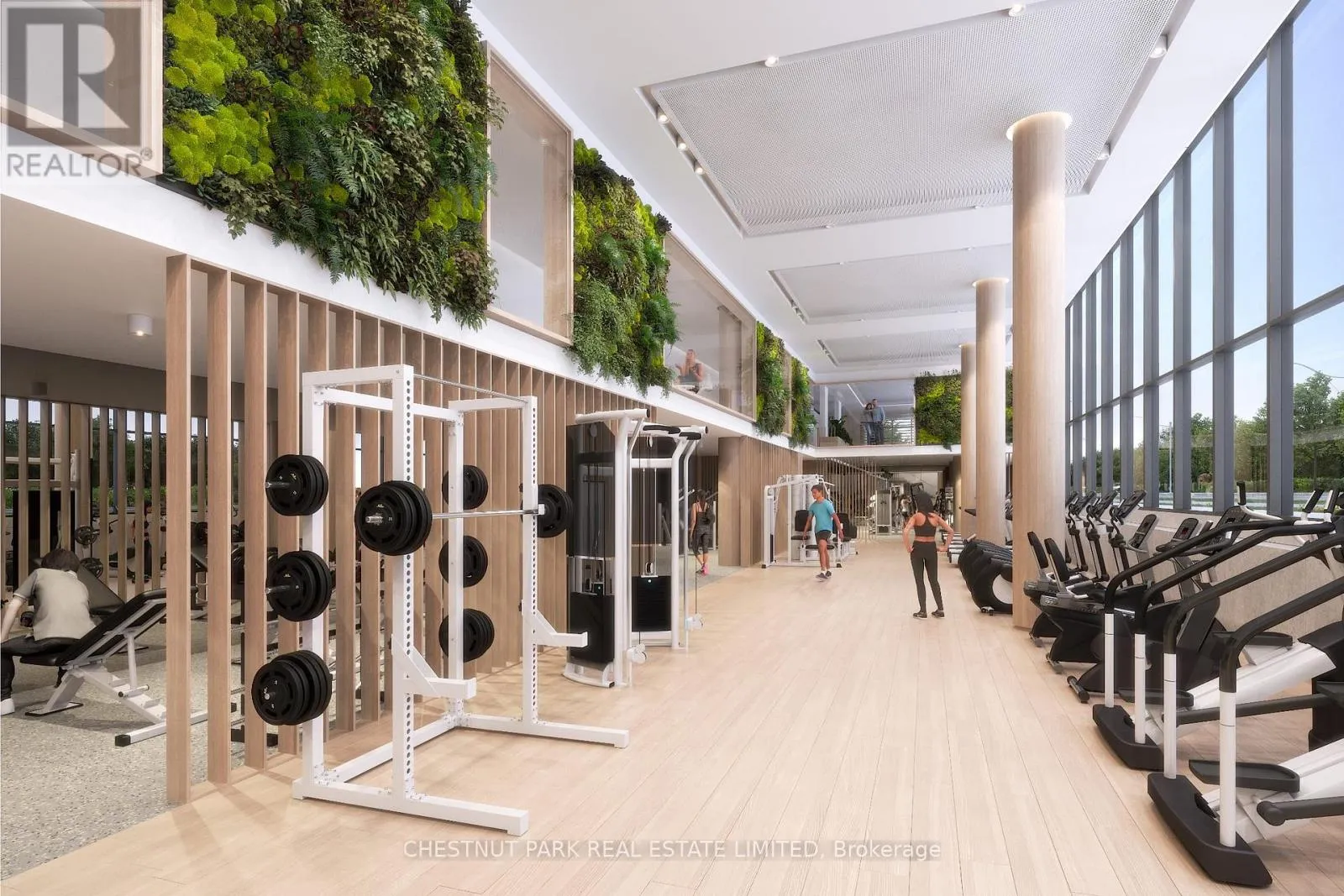 Cross Streets: Queen & Coxwell. ** Directions: Across Woodbine Park & Ashbridges Bay. Upgraded 1 bedroom with fireplace & rooftop green views at Queen & Ashbridge Condominiums. Open concept layout with light, bright & modern finishes including oak design vinyl flooring throughout, spacious walk-in closet and electric fireplace. Kitchen features quartz countertops/backsplash and integrated appliances. Stylish bathroom includes soaker tub, handheld shower head with slide bar and vanity with storage drawers. Balcony overlooks podium rooftop urban forest with trees and resident gardening plots, away from the surrounding streets. Building will feature exceptional amenities for this location, including concierge, spacious fitness centre (spin studio, cardio area, strength training area, functional training space, yoga studio, change rooms & steam rooms), beautifully furnished co-working space with double-height ceilings and windows, sky lounge with BBQ terrace and 7 guest suites. Located directly across from Woodbine Park with services, shopping, dining, and entertainment at doorstep. Quick commute to downtown via 501 streetcar or bike along Lake Shore. Farm Boy, Loblaw's & Bruno's Fine Foods approximately 15 minute walk away. Some images have been virtually staged. (id:27476)