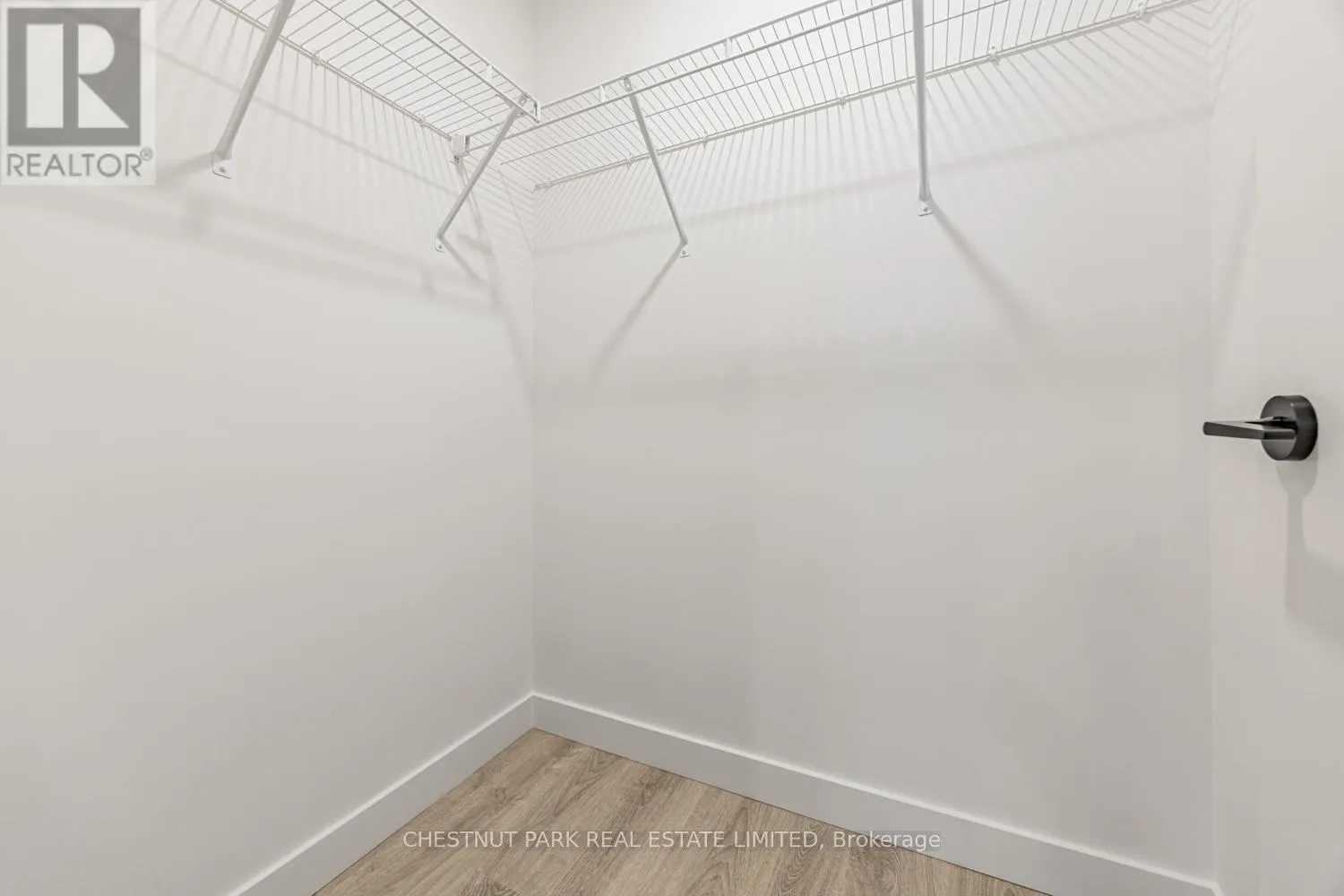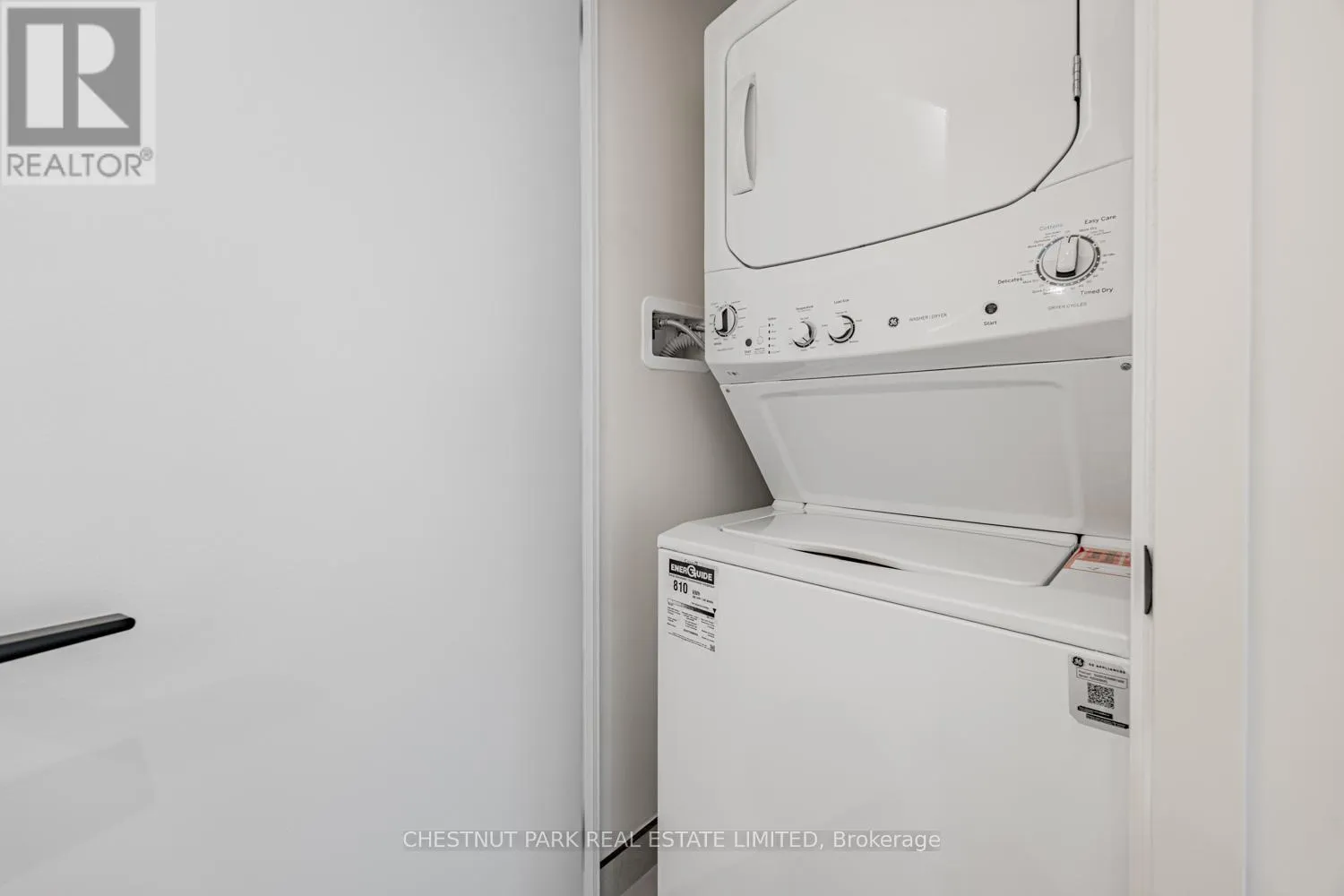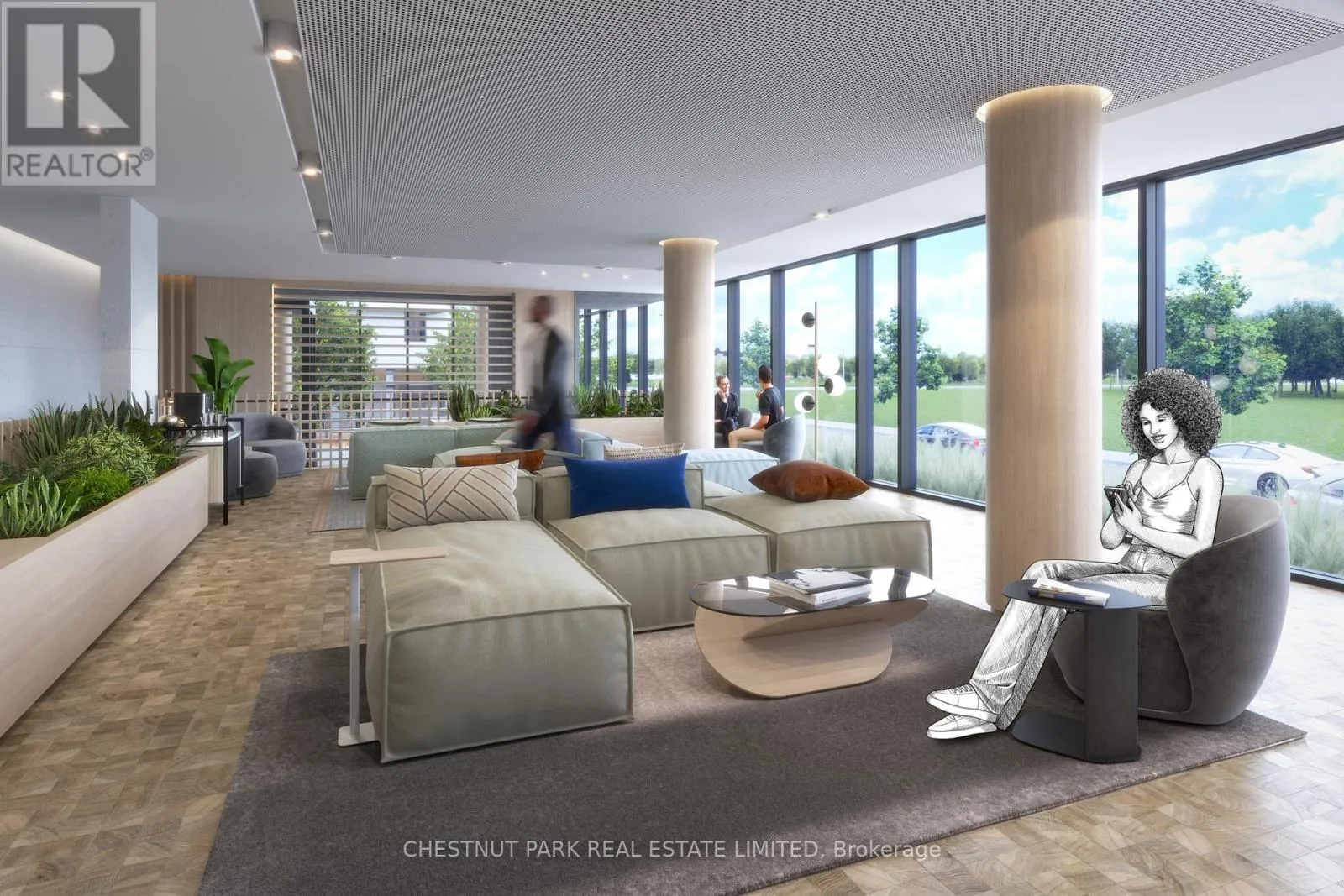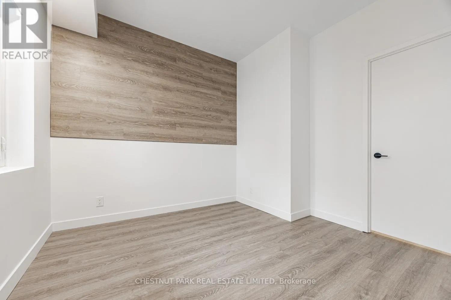 Cross Streets: Queen & Coxwell. ** Directions: Across Woodbine Park & Ashbridges Bay. Upgraded 1 bedroom with fireplace & rooftop green views at Queen & Ashbridge Condominiums. Open concept layout with light, bright & modern finishes including oak design vinyl flooring throughout, spacious walk-in closet and electric fireplace. Kitchen features quartz countertops/backsplash and integrated appliances. Stylish bathroom includes soaker tub, handheld shower head with slide bar and vanity with storage drawers. Balcony overlooks podium rooftop urban forest with trees and resident gardening plots, away from the surrounding streets. Building will feature exceptional amenities for this location, including concierge, spacious fitness centre (spin studio, cardio area, strength training area, functional training space, yoga studio, change rooms & steam rooms), beautifully furnished co-working space with double-height ceilings and windows, sky lounge with BBQ terrace and 7 guest suites. Located directly across from Woodbine Park with services, shopping, dining, and entertainment at doorstep. Quick commute to downtown via 501 streetcar or bike along Lake Shore. Farm Boy, Loblaw's & Bruno's Fine Foods approximately 15 minute walk away. Some images have been virtually staged. (id:27476)