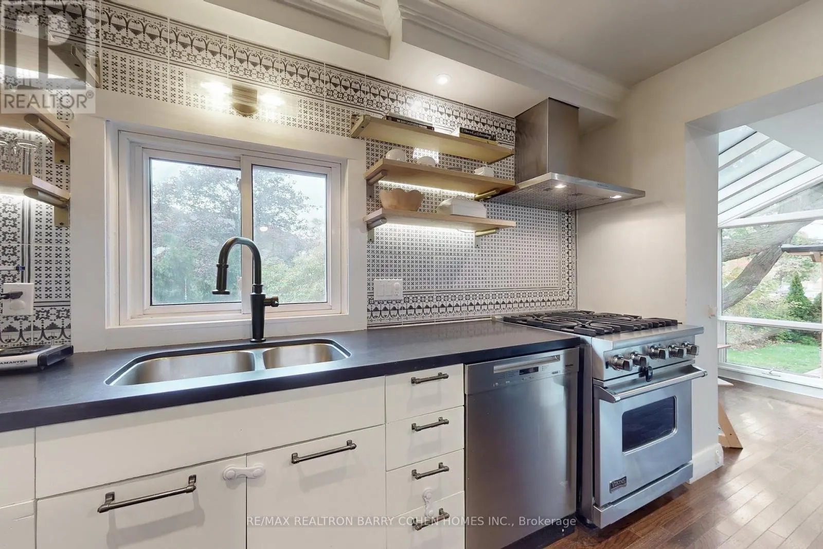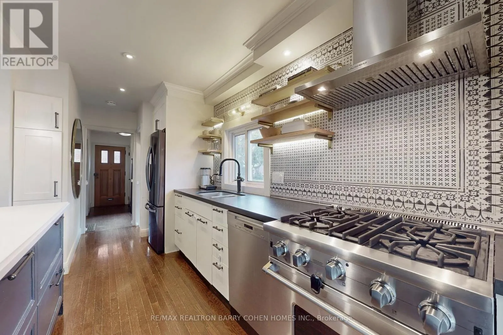 Cross Streets: Parkhurst/Sutherland. ** Directions: West of Laird. Welcome to 155 Parkhurst Blvd, a beautifully renovated and meticulously maintained 3-bedroom, 2-bathroom home in the heart of South Leaside. Set on an expansive lot with a rare private drive at the back, this residence blends timeless character with modern comfort. A bright breakfast nook overlooks the open-concept family room, creating a warm and inviting hub for everyday living. Formal living and dining rooms offer elegant spaces for entertaining, while the family room's walkout opens to a covered deck with an outdoor kitchen featuring a built-in grill and fridge. Beyond, a landscaped south-facing garden and patio set the stage for effortless summer gatherings. Upstairs, three generous bedrooms provide comfort and flexibility, highlighted by a remarkable primary bathroom with heated floors for a spa-like retreat. The lower level extends the living space with a finished recreation room and built-in shelving. Two additional rooms, each with closets, can be used as a study, guest room, home office, or playroom. A small mudroom adds practical storage, and a side entrance provides direct access to the basement, enhancing functionality. Additional highlights include a large attic for storage and a custom-built cedar shed. Ideally located within the coveted Bessborough school district and steps to local shops, cafes, and parks, this home presents a rare opportunity to enjoy family living in one of Leaside's most desirable neighbourhoods. (id:27476)