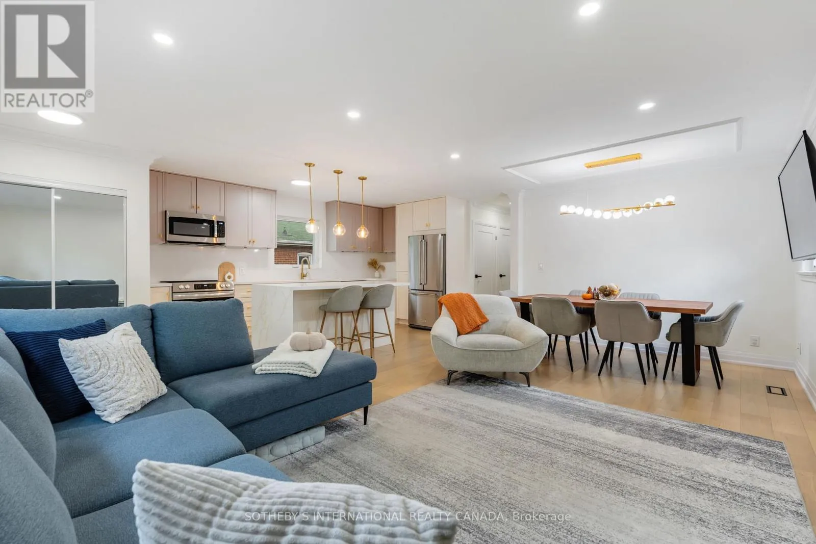 Cross Streets: Lawrence & Birchmount. ** Directions: Ask Google/Waze ;). A seamless blend of style and sophistication, this beautifully renovated bungalow offers refined living in the heart of Dorset Park. Defined by an open-concept design, the interiors showcase subtle textures and a palette of soft tones that evoke warmth and modern luxury. The living and dining areas flow effortlessly beneath recessed lighting and statement fixtures, creating a bright and inviting atmosphere ideal for both entertaining and everyday living.The kitchen is a contemporary showpiece featuring quartz countertops, sleek custom cabinetry, and premium stainless steel appliances-all complemented by a spacious island with elegant pendant lighting. The main floor hosts three serene bedrooms, each designed with understated sophistication and thoughtful detail.The finished lower level, complete with a separate entrance, offers two independent suites-each with its own kitchen and bath-providing an excellent opportunity for multi-generational living or additional income potential. Outside, a private backyard framed by mature trees offers a quiet retreat for al fresco dining or unwinding under the open sky.Perfectly situated near parks, schools, shopping, and major transit routes, this home delivers a rare balance of urban convenience and refined residential comfort. (id:27476)