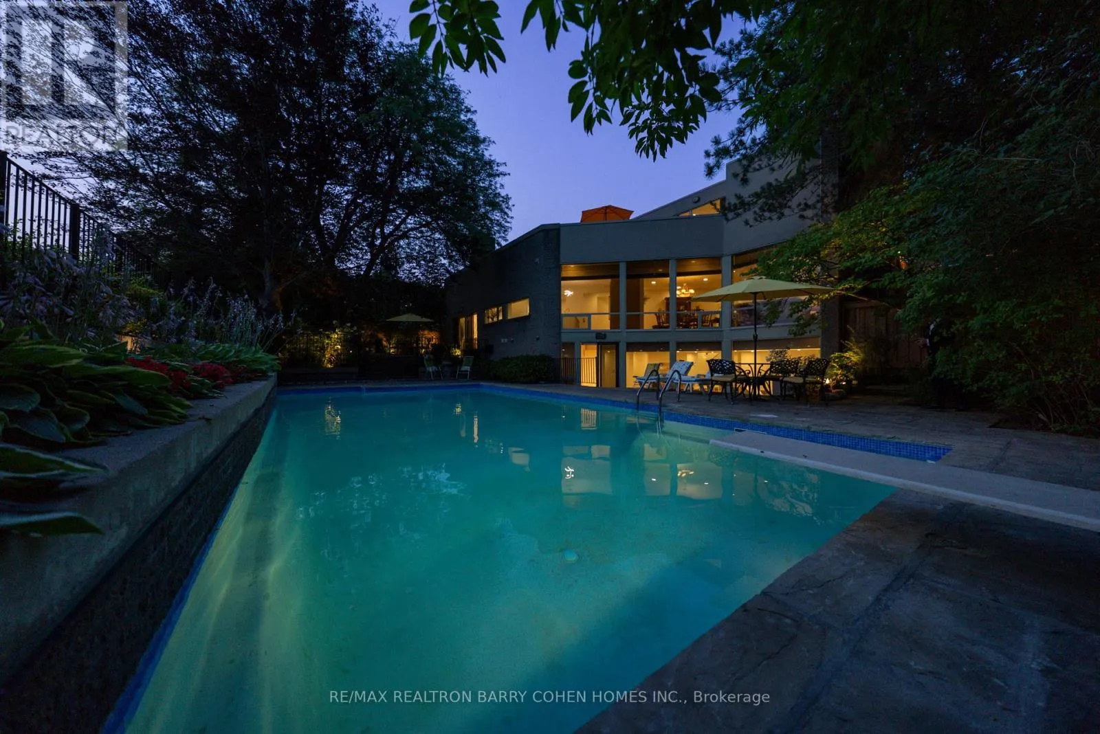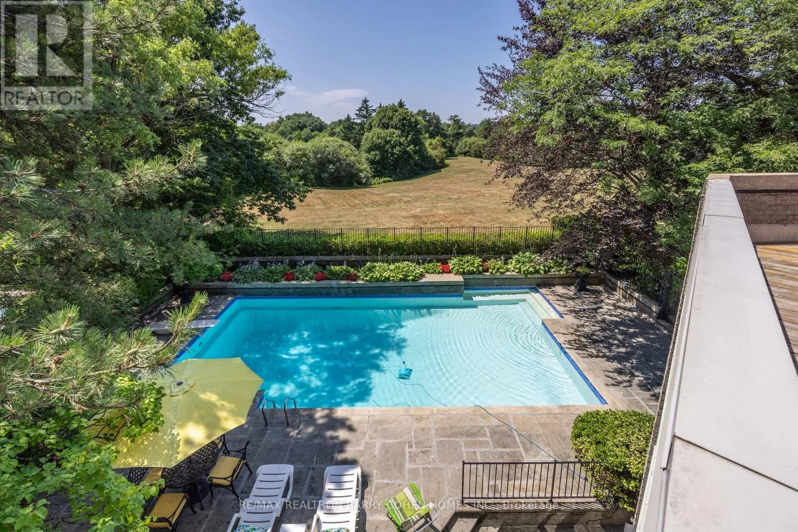Bayview/York Mills Architecturally Significant and Newly Renovated Residence In Prestigious Windfields Neighbourhood Backing Directly Onto Windfields Park. The Home's Brutalist Architecture Creates Immersive Privacy and An Idyllic Natural Sanctuary With Floor to Ceiling Picture Windows On Every Level Featuring Custom Belgian Linen Window Coverings, Expansive 2nd Floor Sundeck with Clear Views of Windfields Park and Access From All 4 Bedrooms on the 2nd Floor, Plus Walk-Up From Lower Level to Rear Gardens. 3-Car Garage With 8+ Car Circular Drive. Formal Living, Dining, Kitchen, Sunken Family Room Plus Servery on Main Level with Walk-Out to Flagstone Patio and Outdoor Pool. Open riser staircase connects all levels of the home, enhancing the flow of natural light throughout. Lower Level features 5th Bedroom, Wet Bar, Rec Room With Wood Burning Fireplace, Sauna, Laundry and Floor to Ceiling Picture Windows With Views of the Rear Gardens Plus Walk-Up to Patio. A True Escape From The City, Within The City! Convenient Access to 401, 404/DVP, Granite Club, Public and Private Schools in The Area. (id:27476)