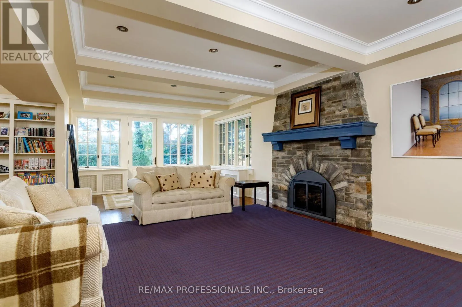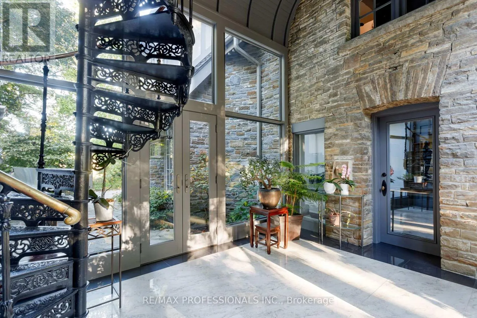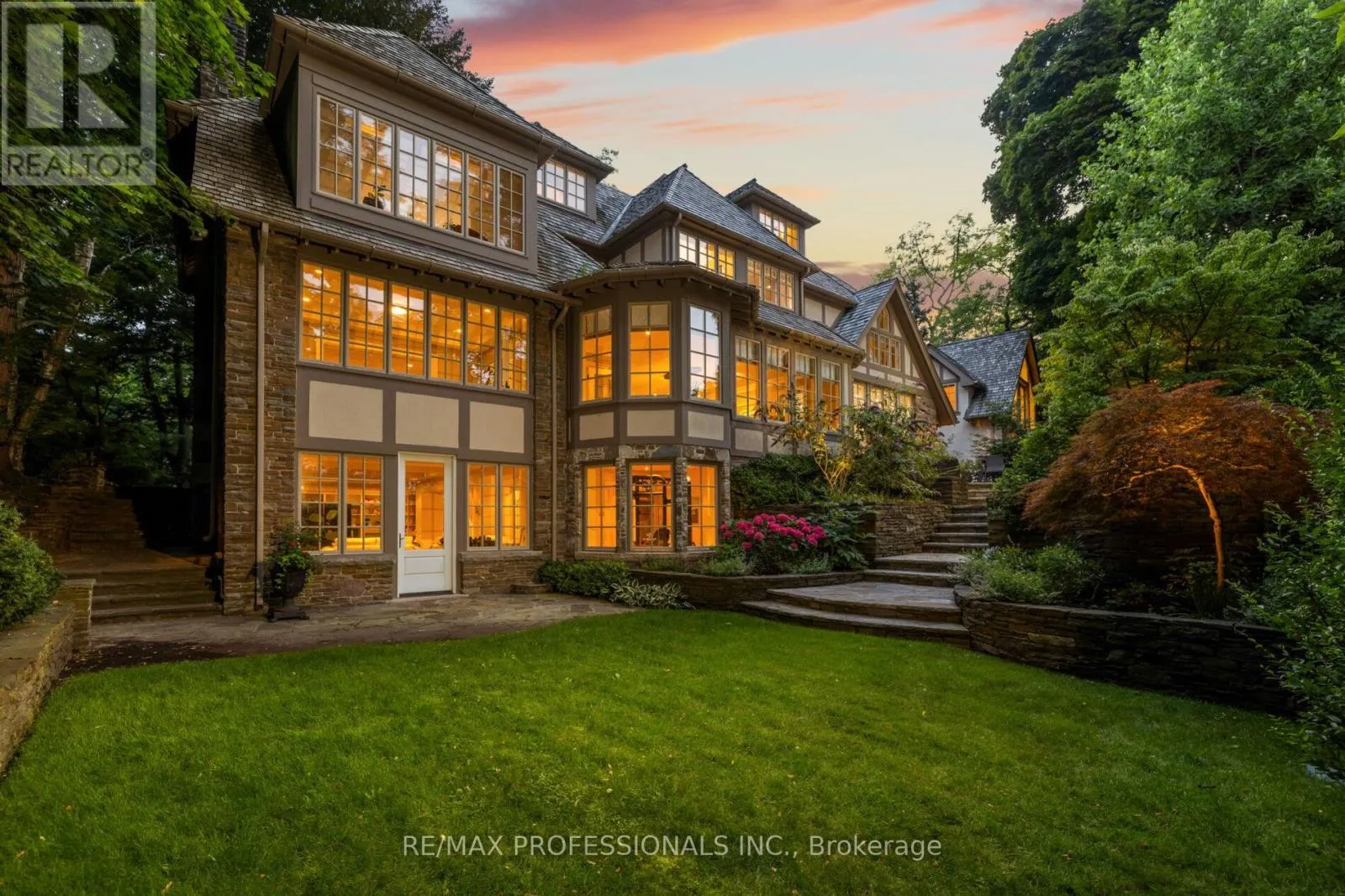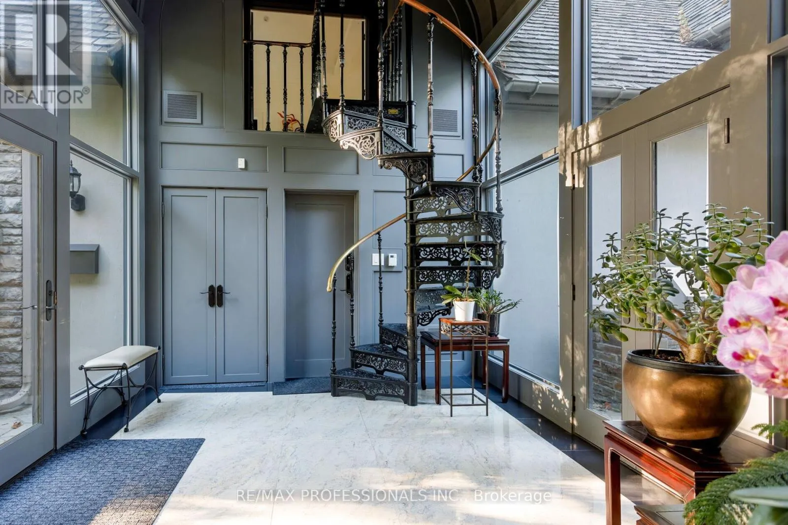 Cross Streets: The Kingsway & Bloor St. West. ** Directions: The Kingsway & Kingsway Crescent. The House that built the Kingsway. In a neighbourhood of stately homes, 43 The Kingsway stands apart. This is the first estate to be built in the Kingsway, located on the best and first lots in the Kingsway, selected for the most overall table land available on the Humber River ravine - 43 The Kingsway is the crown jewel of the neighbourhood. If you've ever driven through the neighbourhood, you already know this home - it's the one with the glass atrium with copper roof, the one that glows at night & is full of light during the day. Since construction, the home has been meticulously stewarded by its owners, & tastefully updated to blend modern sensibilities without losing the Kingsway feeling. From outside, you'll appreciate Jim Mosher's dramatic humber river stone landscaping, the elegant, & particularly Kingsway styling of the rear extension is seamless. Enter to the show stopping glass atrium, complete with heated floors and wrought iron spiral staircase. To your left, an oversized three car garage with ample storage. Up the spiral staircase, the guest or nanny suite is built to impress - vaulted ceilings, floor-to-cieling humber river ravine views. The main house is built for entertaining. The reimagined flow of the first floor features multiple formal living spaces, airy family room, elegant extended-family-sized dining room, & new chef's kitchen - overbuilt with the consummate entertainer in mind, with truly flawless marble work. The 2nd floor is built around the primary suite, featuring a sitting room to look out over the River, impressive walk-in closet, dual primary baths, & fireplace. The floor has three more bedrooms, all with abundant closet space & impressive views. The 3rd floor is adaptable - with large dormers overlooking the ravine, ample closet space & a four piece bathroom, this could be a secondary primary bedroom, a rec room with office, a playroom, or the alternate nanny suite.The lower level features rec room & gym, walkout to the rear lawns. (id:27476)