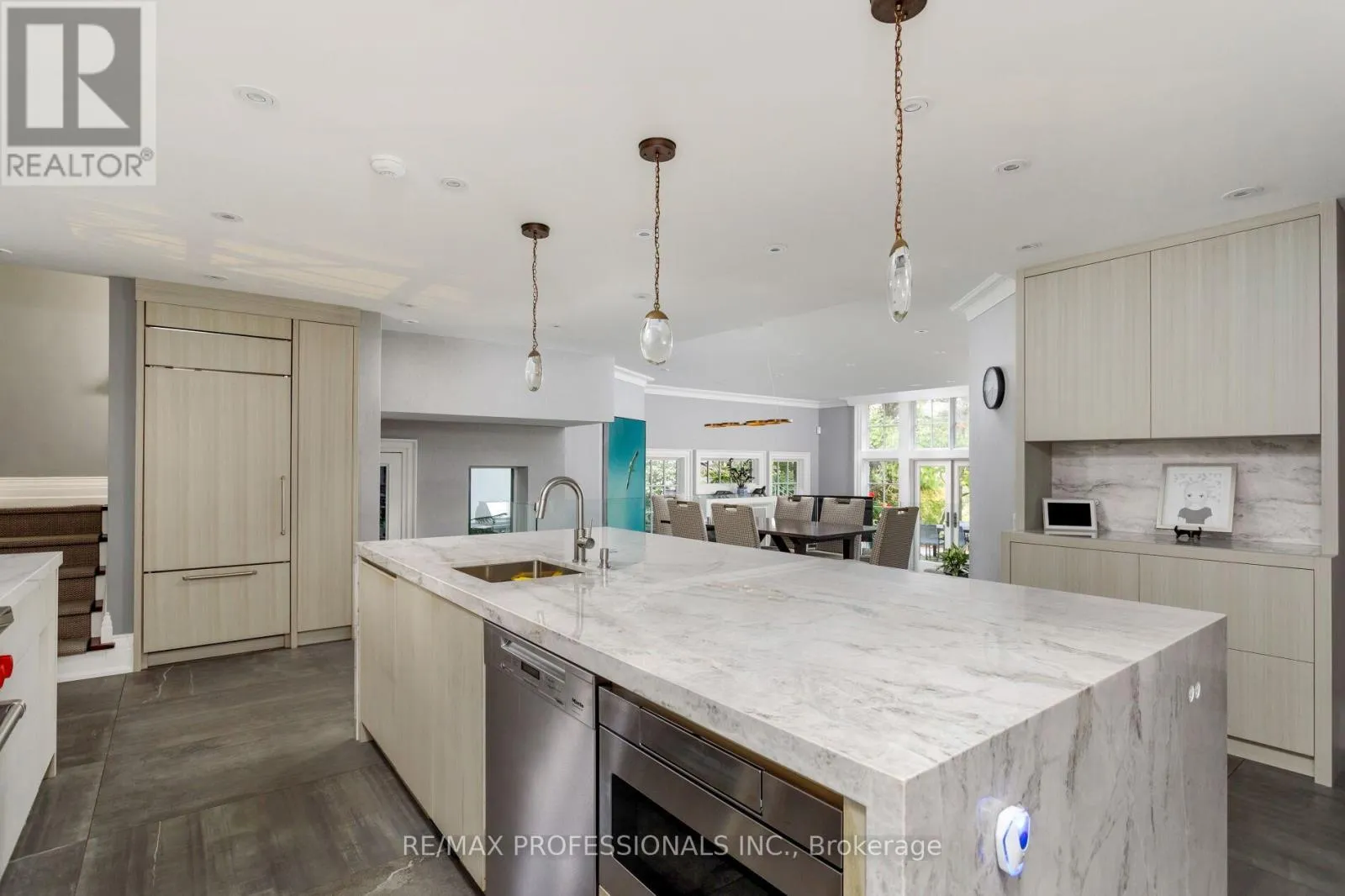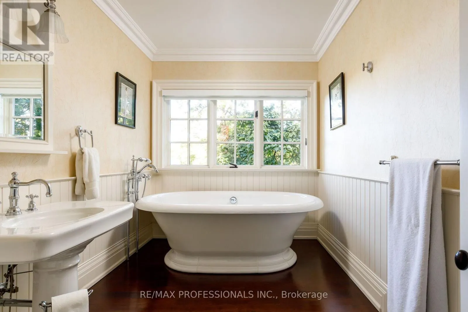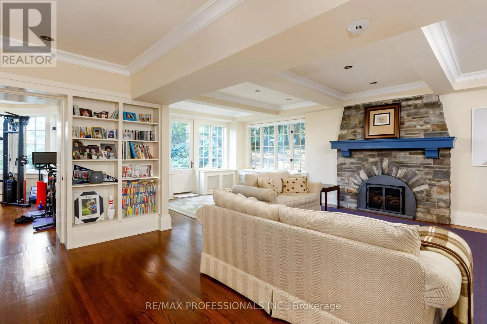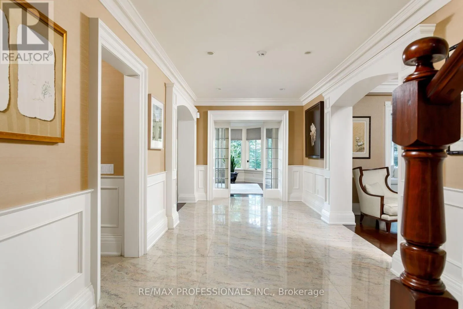 Cross Streets: The Kingsway & Bloor St. West. ** Directions: The Kingsway & Kingsway Crescent. The House that built the Kingsway. In a neighbourhood of stately homes, 43 The Kingsway stands apart. This is the first estate to be built in the Kingsway, located on the best and first lots in the Kingsway, selected for the most overall table land available on the Humber River ravine - 43 The Kingsway is the crown jewel of the neighbourhood. If you've ever driven through the neighbourhood, you already know this home - it's the one with the glass atrium with copper roof, the one that glows at night & is full of light during the day. Since construction, the home has been meticulously stewarded by its owners, & tastefully updated to blend modern sensibilities without losing the Kingsway feeling. From outside, you'll appreciate Jim Mosher's dramatic humber river stone landscaping, the elegant, & particularly Kingsway styling of the rear extension is seamless. Enter to the show stopping glass atrium, complete with heated floors and wrought iron spiral staircase. To your left, an oversized three car garage with ample storage. Up the spiral staircase, the guest or nanny suite is built to impress - vaulted ceilings, floor-to-cieling humber river ravine views. The main house is built for entertaining. The reimagined flow of the first floor features multiple formal living spaces, airy family room, elegant extended-family-sized dining room, & new chef's kitchen - overbuilt with the consummate entertainer in mind, with truly flawless marble work. The 2nd floor is built around the primary suite, featuring a sitting room to look out over the River, impressive walk-in closet, dual primary baths, & fireplace. The floor has three more bedrooms, all with abundant closet space & impressive views. The 3rd floor is adaptable - with large dormers overlooking the ravine, ample closet space & a four piece bathroom, this could be a secondary primary bedroom, a rec room with office, a playroom, or the alternate nanny suite.The lower level features rec room & gym, walkout to the rear lawns. (id:27476)