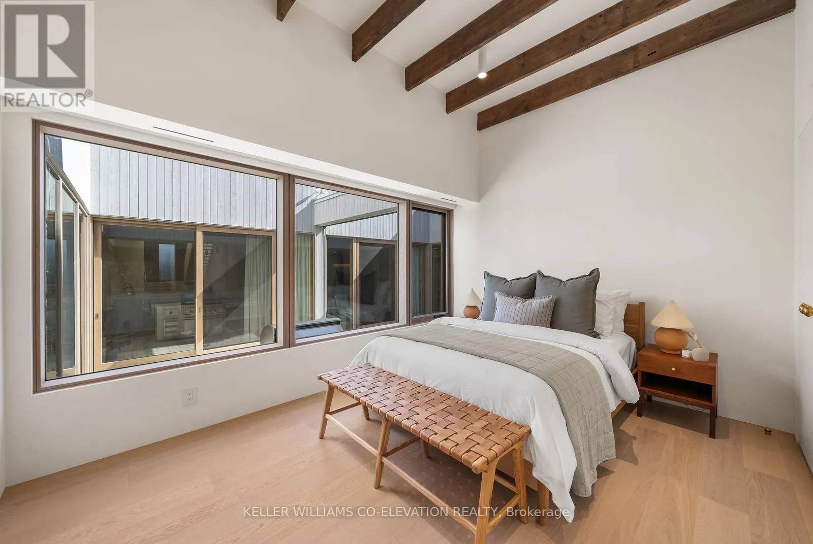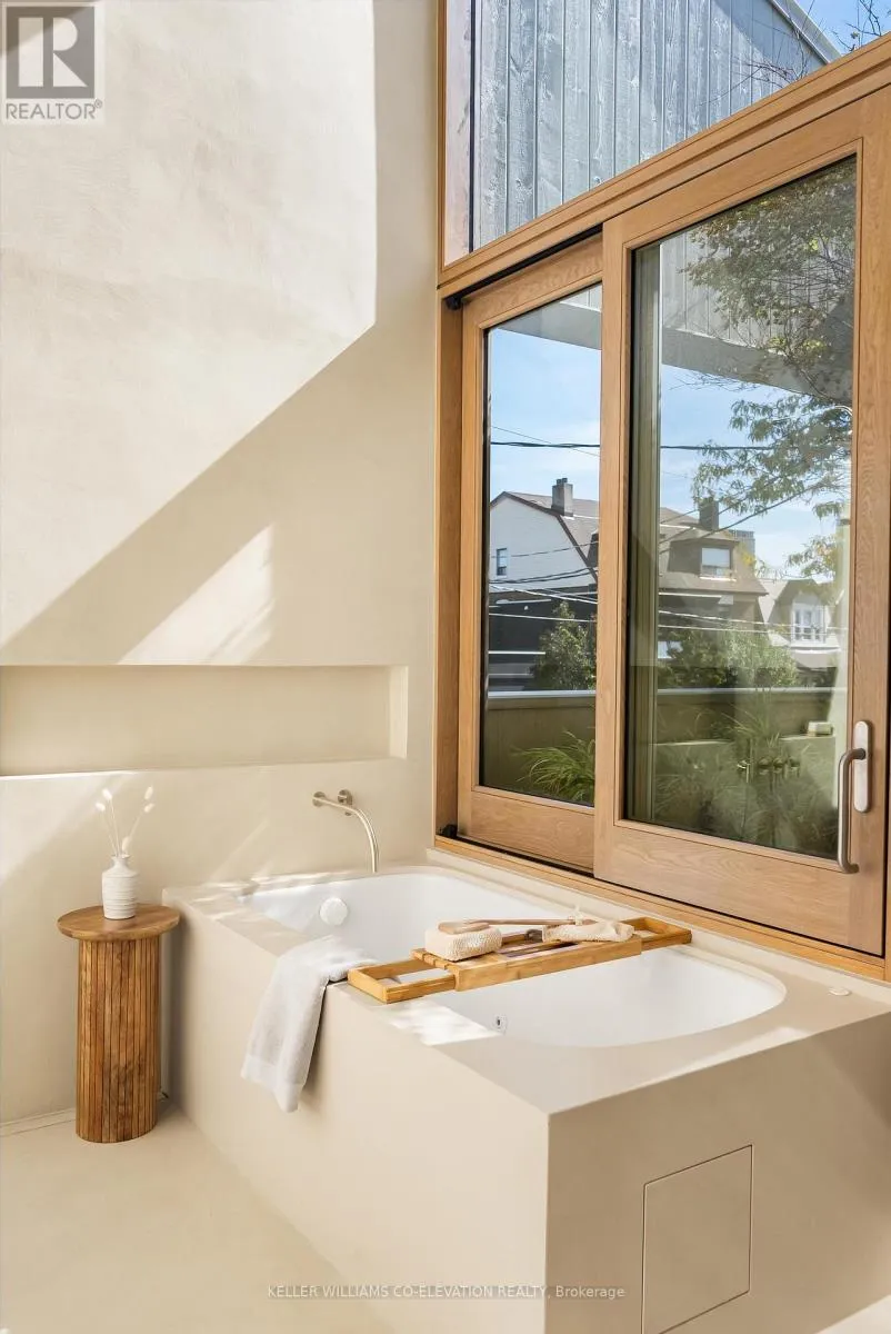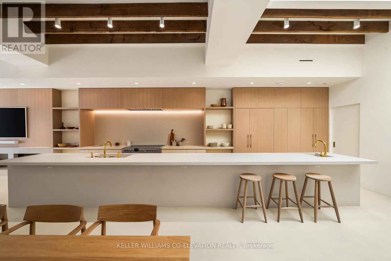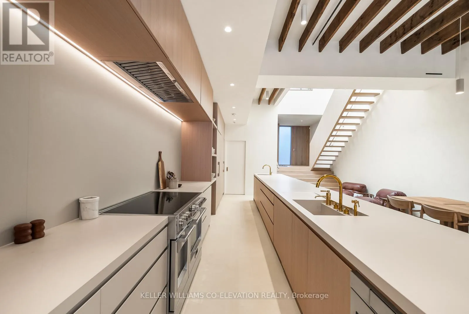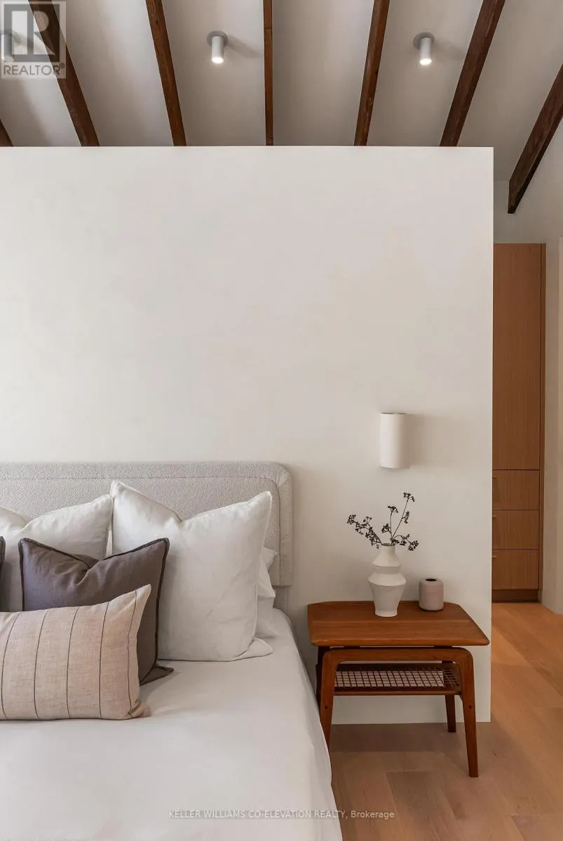 Cross Streets: Lansdowne & Wallace. ** Directions: South of Dupont. Welcome to the North Residence at 722 Lansdowne, a fully furnished Executive Mid-Term Rental located in Toronto's vibrant Junction neighbourhood. Designed by StudioAC, one of Canada's most celebrated architecture firms, this luxurious 2 bed, 2 bath home is a perfect balance of heritage, innovation, serenity and refined opulence. The interior features a monochromatic palette of limewash painted walls, micro-cement floors, and solid white oak millwork. The main floor opens to a double height atrium and a monumental dining, kitchen and living space. Original exposed rafters and brickwork nod to the building's history, while curated stone surfaces bring elegant modern craftsmanship to every detail. A centre courtyard and expansive rooftop terrace provide this home with a connection to nature and light. The huge primary suite has a spa like en suite with a walk out to a signature Japanese maple courtyard. Fully furnished with a King bed in the primary, Queen bed in the second bedroom, sectional couch, dining table, dining chairs and accent furniture. All appliances, equipped kitchen, gym equipment, built in office, gas bbq & secure interior parking. (id:27476)