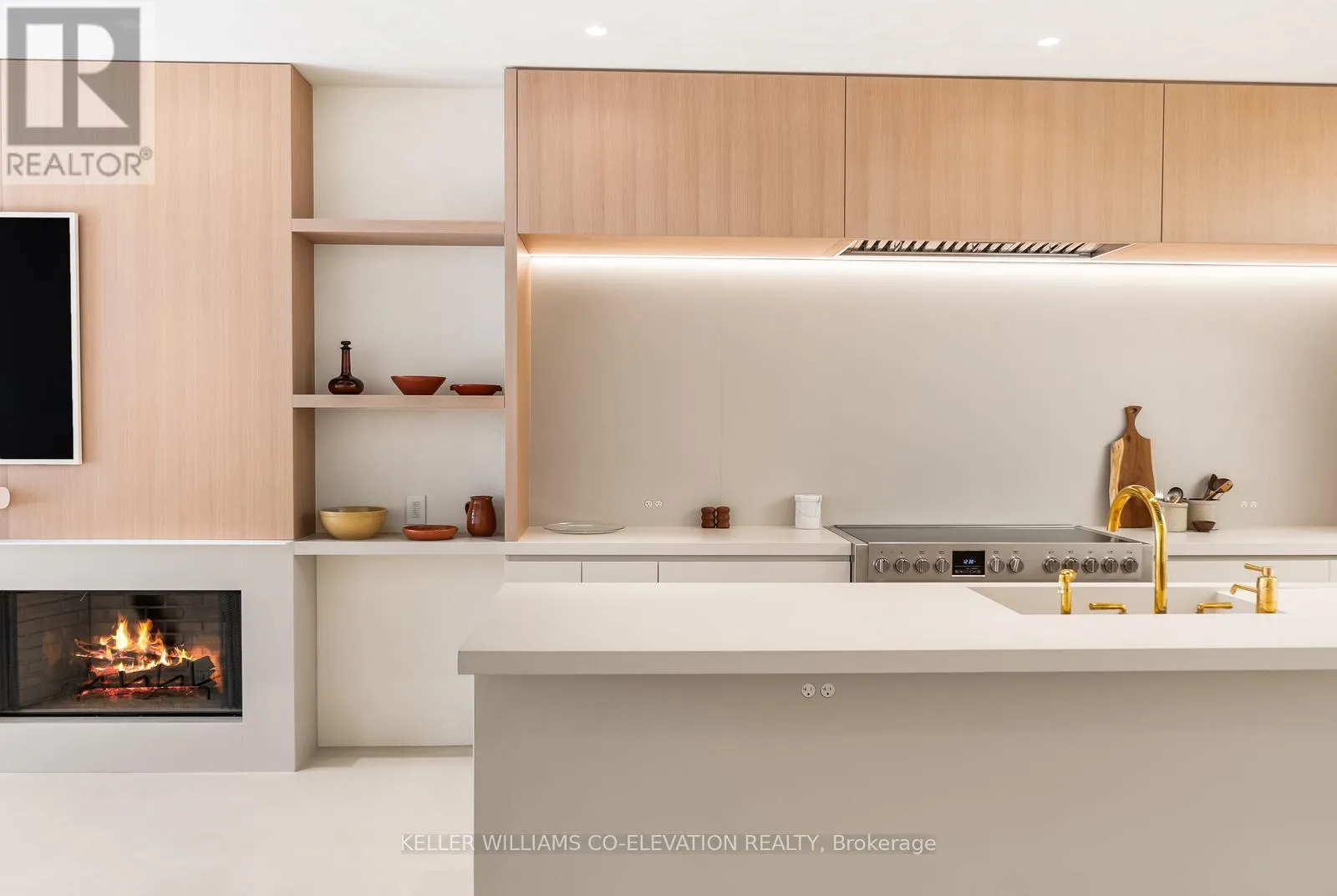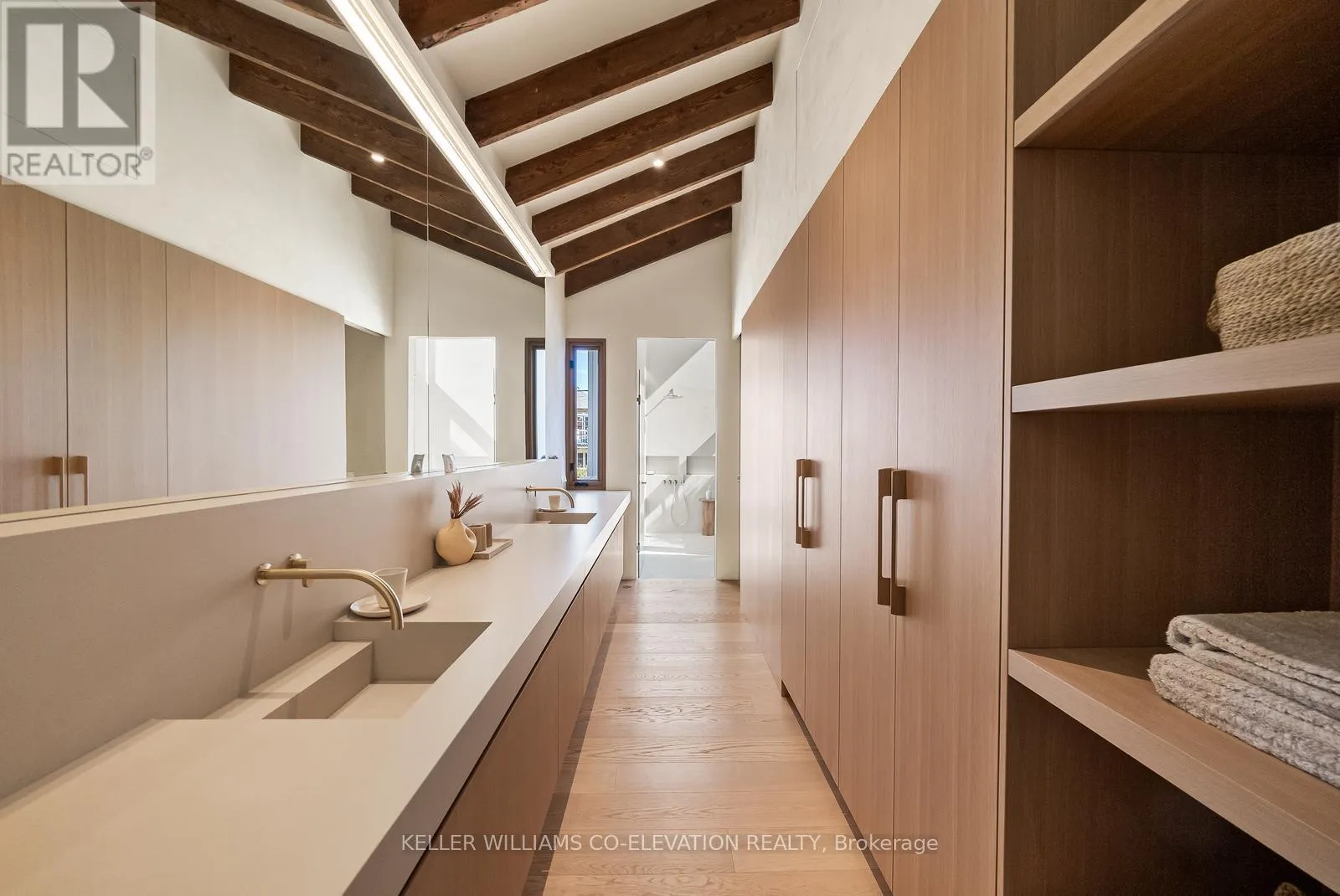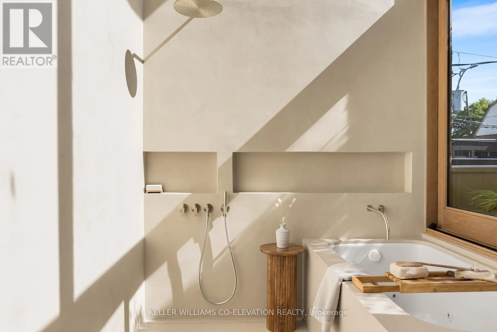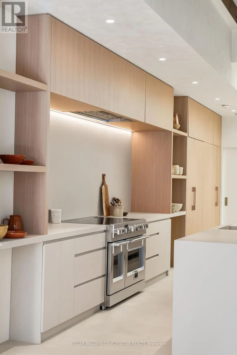 Cross Streets: Lansdowne & Wallace. ** Directions: South of Dupont. Welcome to the North Residence at 722 Lansdowne, a fully furnished Executive Mid-Term Rental located in Toronto's vibrant Junction neighbourhood. Designed by StudioAC, one of Canada's most celebrated architecture firms, this luxurious 2 bed, 2 bath home is a perfect balance of heritage, innovation, serenity and refined opulence. The interior features a monochromatic palette of limewash painted walls, micro-cement floors, and solid white oak millwork. The main floor opens to a double height atrium and a monumental dining, kitchen and living space. Original exposed rafters and brickwork nod to the building's history, while curated stone surfaces bring elegant modern craftsmanship to every detail. A centre courtyard and expansive rooftop terrace provide this home with a connection to nature and light. The huge primary suite has a spa like en suite with a walk out to a signature Japanese maple courtyard. Fully furnished with a King bed in the primary, Queen bed in the second bedroom, sectional couch, dining table, dining chairs and accent furniture. All appliances, equipped kitchen, gym equipment, built in office, gas bbq & secure interior parking. (id:27476)