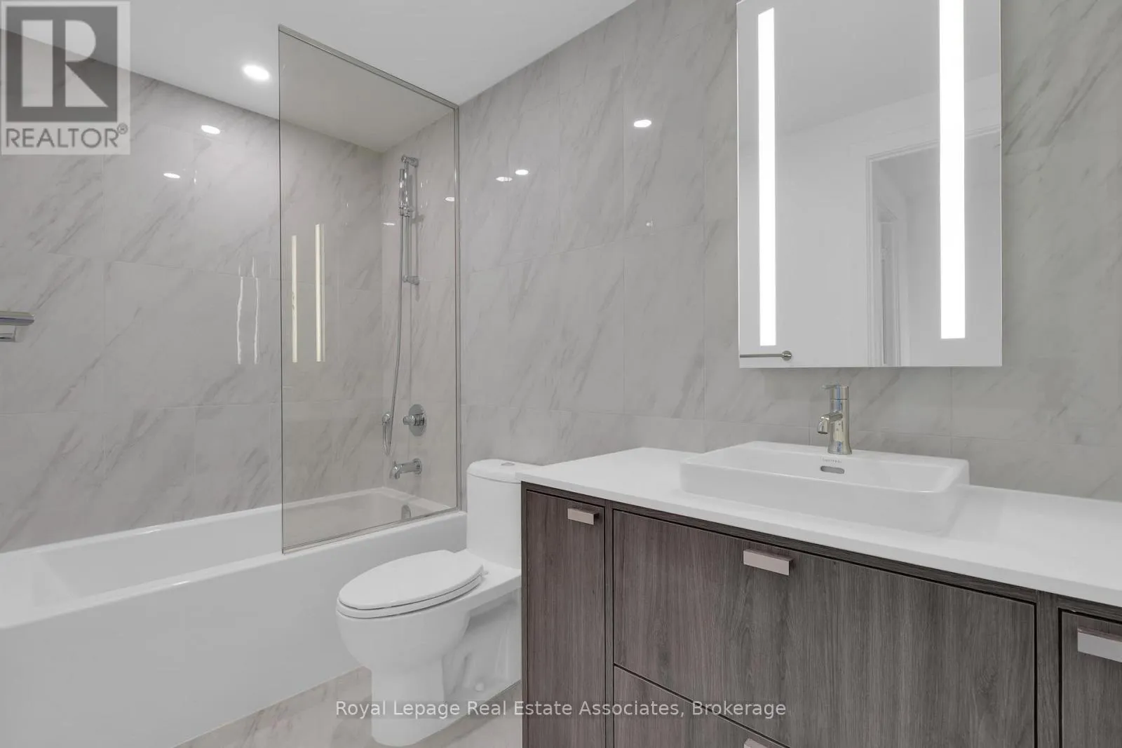 Royal York/Dundas St W Welcome to Edenbridge by Tridel, a premier community blending contemporary design with timeless sophistication in The Kingsway. This spacious 2-bedroom, 2-bathroom corner suite offers 947 sq. ft. of thoughtfully designed living space with a bright, open layout and high-quality finishes throughout. The sleek kitchen features integrated stainless-steel appliances, modern dark cabinetry, quartz countertops, and under-cabinet lighting - seamlessly opening to a large living and dining area with floor-to-ceiling windows and access to a private wraparound balcony. The primary bedroom includes a walk-in closet and luxurious ensuite bath, while the second bedroom provides plenty of natural light and versatility for guests or a home office. A second full bathroom, in-suite laundry, and one parking space complete the offering .Enjoy exclusive access to resort-inspired amenities, including a fitness centre, indoor pool, yoga studio, rooftop terrace, elegant party lounge, and 24-hour concierge. Perfectly located steps from Humbertown Shopping Centre, parks, top schools, and transit, this residence delivers elevated living in one of Etobicoke's most desirable neighbourhoods. (id:27476)