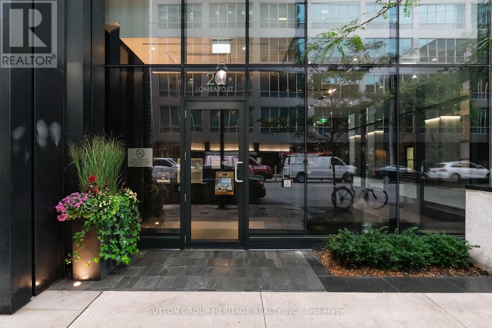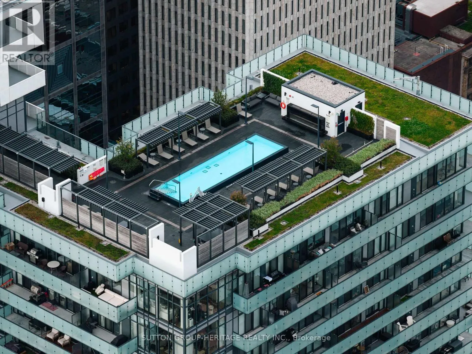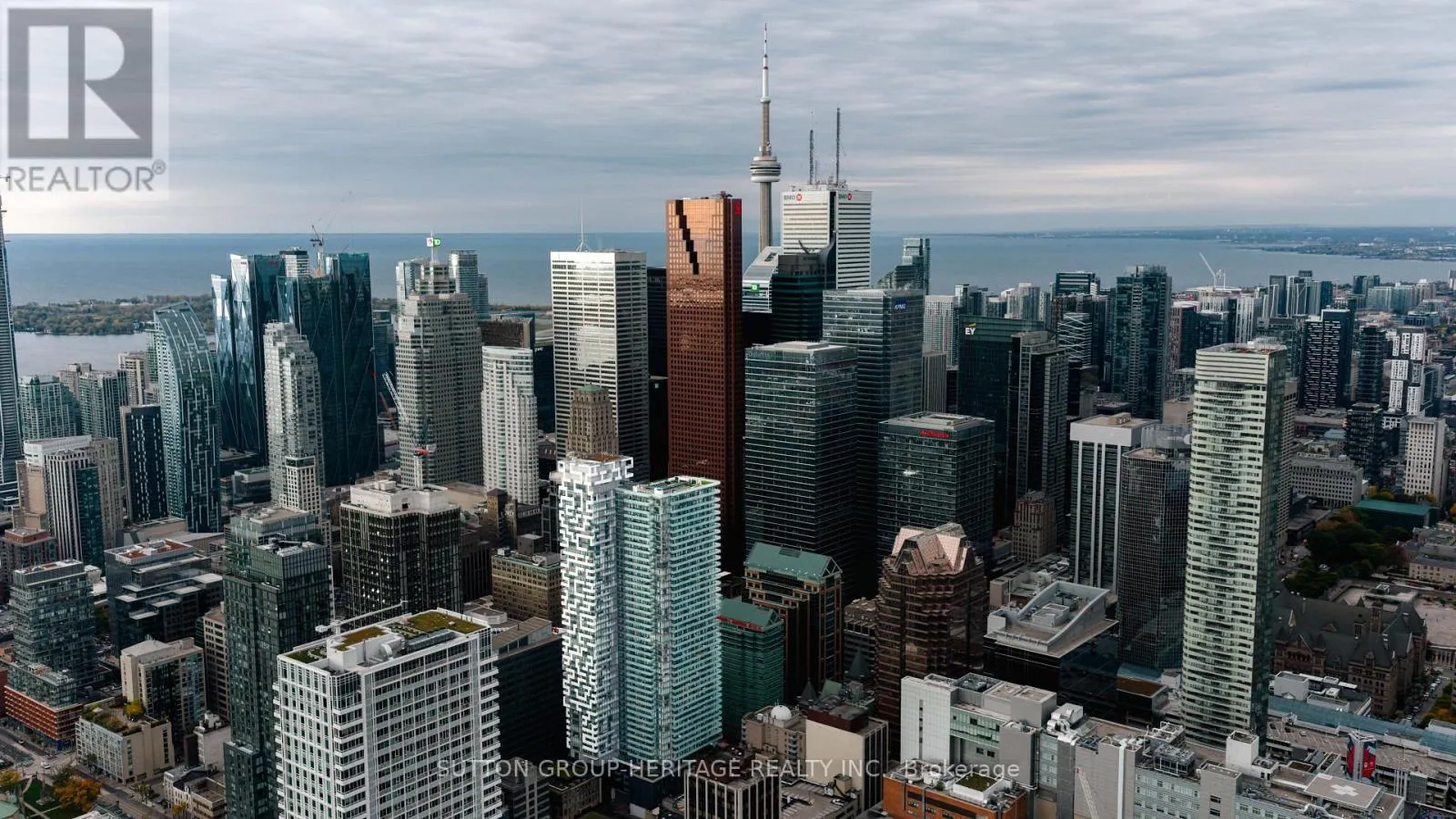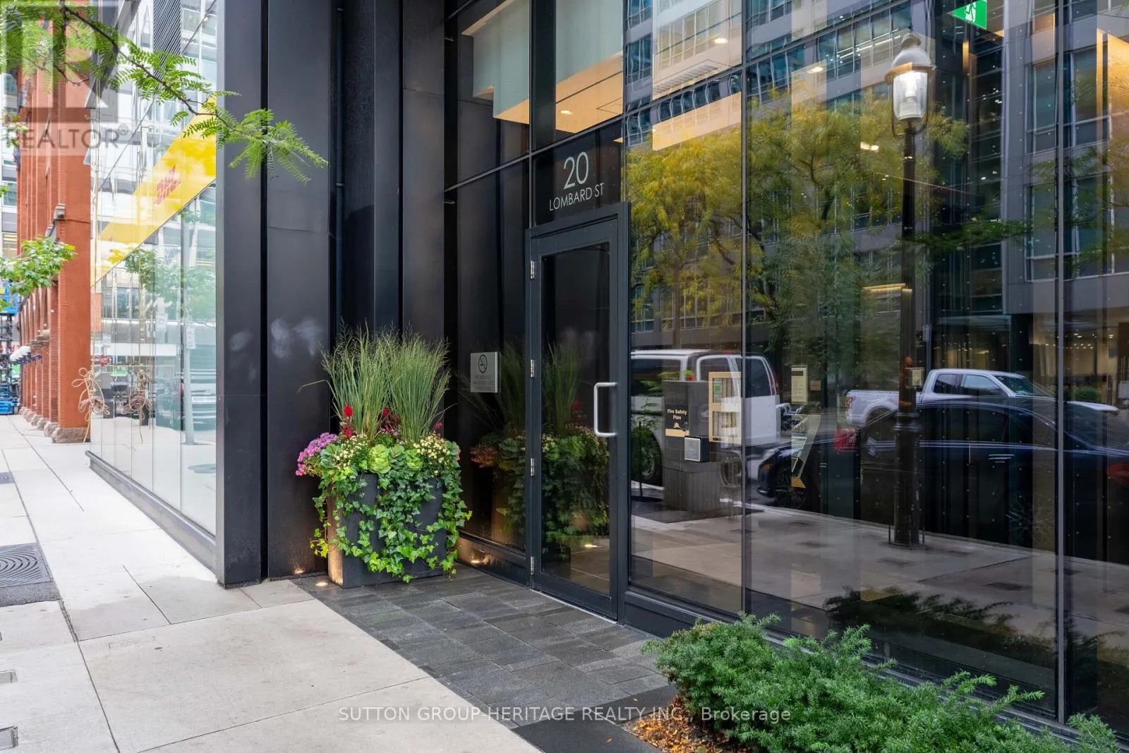 Richmond St. East/Victoria St. Experience luxury living in the heart of downtown Toronto at Great Gulf's iconic 20 Lombard! Perched high above the city on the 40th floor, this stunning south-facing 1 bed + spacious den (with doors), 2 bath residence showcases breathtaking views of Lake Ontario. Thoughtfully designed with high-end finishes throughout, this suite features upgraded wood flooring, 9 ft smooth ceilings, custom cabinetry, and a gourmet kitchen complete with Caesarstone countertops and backsplash, premium European built-in appliances, a gas cooktop, and a sleek centre island-ideal for cooking, dining, and entertaining. The bright and airy open-concept living and dining area is framed by floor-to-ceiling windows, filling the space with natural light and highlighting the modern urban design. Step out onto your expansive 234 sq. ft. balcony with two walkouts, a water line, power outlets, and a built-in gas line-perfect for enjoying morning coffee, evening cocktails, or simply taking in the mesmerizing lake and city views. The spacious den offers flexibility to serve as a comfortable second bedroom, home office, or guest space, adapting effortlessly to your lifestyle. This building has an explicit ban on AirBNB rentals. Residents of 20 Lombard enjoy access to an exceptional array of amenities, two fully equipped fitness centres, two outdoor swimming pools, two lockers for extra storage one conveniently located on the 5th floor, a meeting and party room, quiet study areas, and an expansive rooftop deck and garden with panoramic city views. Perfectly situated, you're just steps from Yonge-Dundas Square, the Toronto Eaton Centre, St. Lawrence Market, and the Distillery District, with King and Queen Street subway and streetcar lines moments away for effortless connectivity across the city. (id:27476)