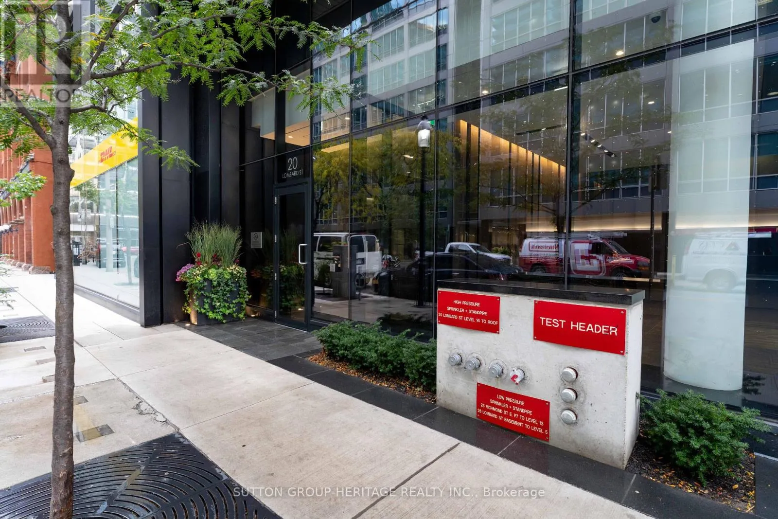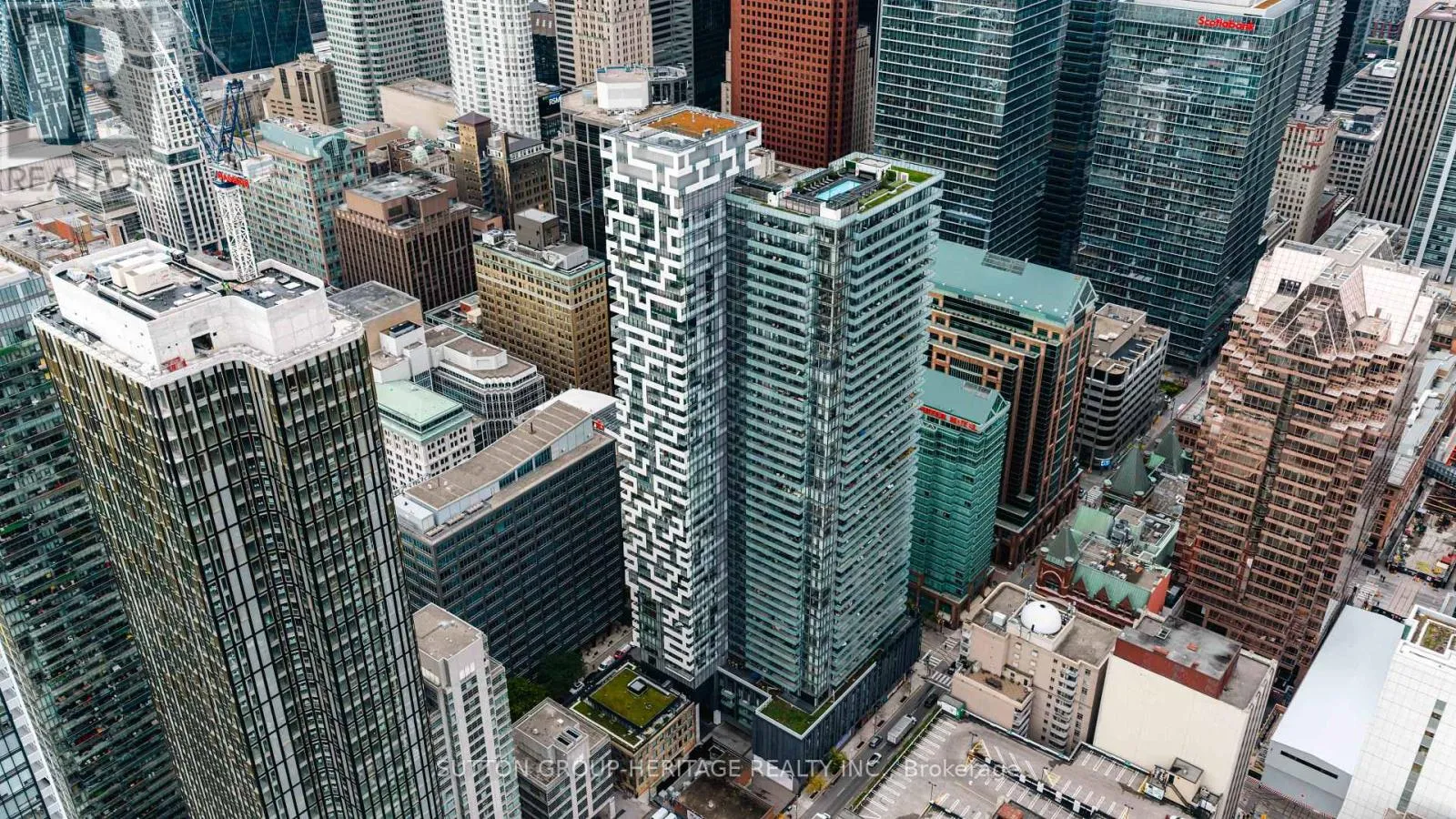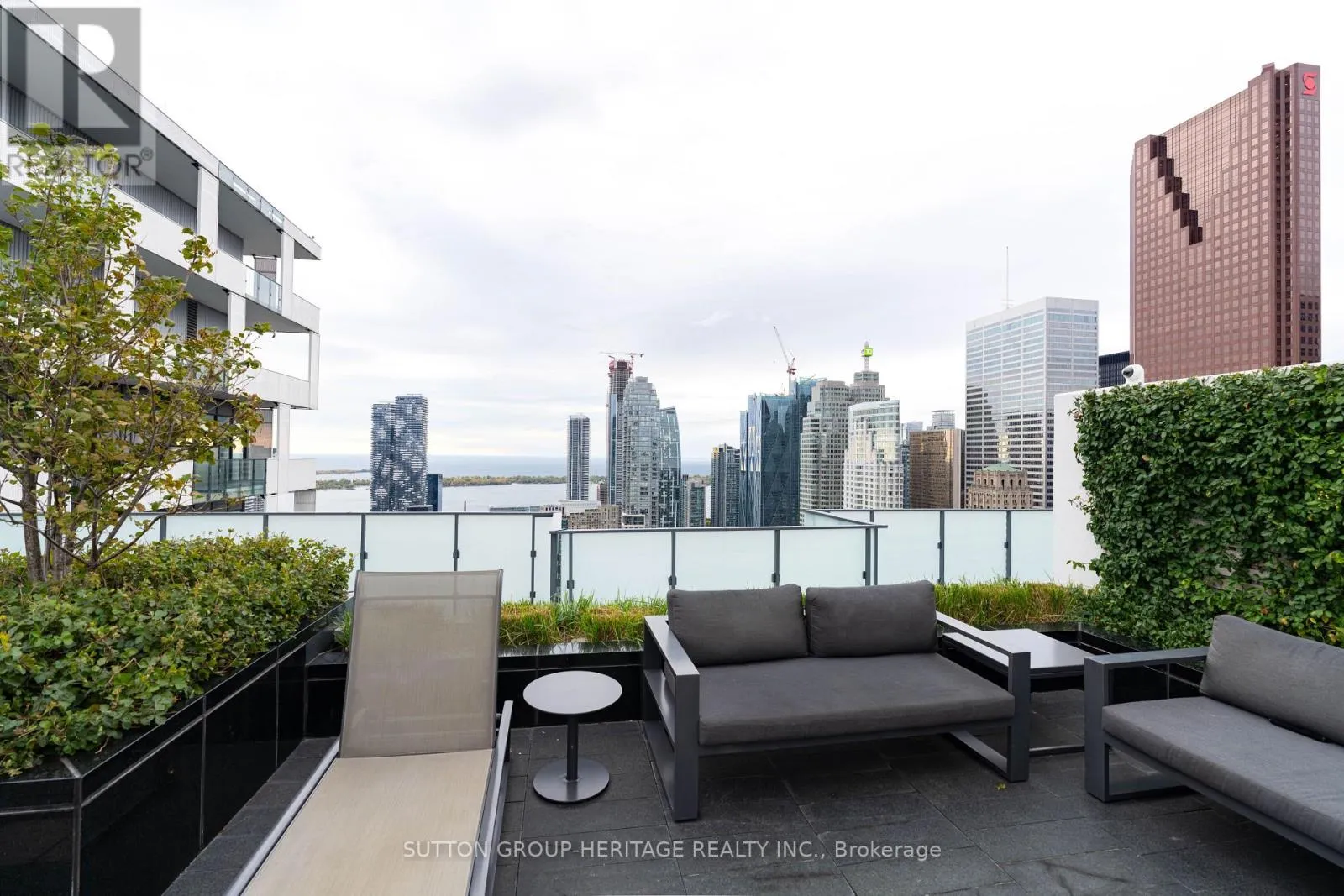 Richmond St. East/Victoria St. Experience luxury living in the heart of downtown Toronto at Great Gulf's iconic 20 Lombard! Perched high above the city on the 40th floor, this stunning south-facing 1 bed + spacious den (with doors), 2 bath residence showcases breathtaking views of Lake Ontario. Thoughtfully designed with high-end finishes throughout, this suite features upgraded wood flooring, 9 ft smooth ceilings, custom cabinetry, and a gourmet kitchen complete with Caesarstone countertops and backsplash, premium European built-in appliances, a gas cooktop, and a sleek centre island-ideal for cooking, dining, and entertaining. The bright and airy open-concept living and dining area is framed by floor-to-ceiling windows, filling the space with natural light and highlighting the modern urban design. Step out onto your expansive 234 sq. ft. balcony with two walkouts, a water line, power outlets, and a built-in gas line-perfect for enjoying morning coffee, evening cocktails, or simply taking in the mesmerizing lake and city views. The spacious den offers flexibility to serve as a comfortable second bedroom, home office, or guest space, adapting effortlessly to your lifestyle. This building has an explicit ban on AirBNB rentals. Residents of 20 Lombard enjoy access to an exceptional array of amenities, two fully equipped fitness centres, two outdoor swimming pools, two lockers for extra storage one conveniently located on the 5th floor, a meeting and party room, quiet study areas, and an expansive rooftop deck and garden with panoramic city views. Perfectly situated, you're just steps from Yonge-Dundas Square, the Toronto Eaton Centre, St. Lawrence Market, and the Distillery District, with King and Queen Street subway and streetcar lines moments away for effortless connectivity across the city. (id:27476)