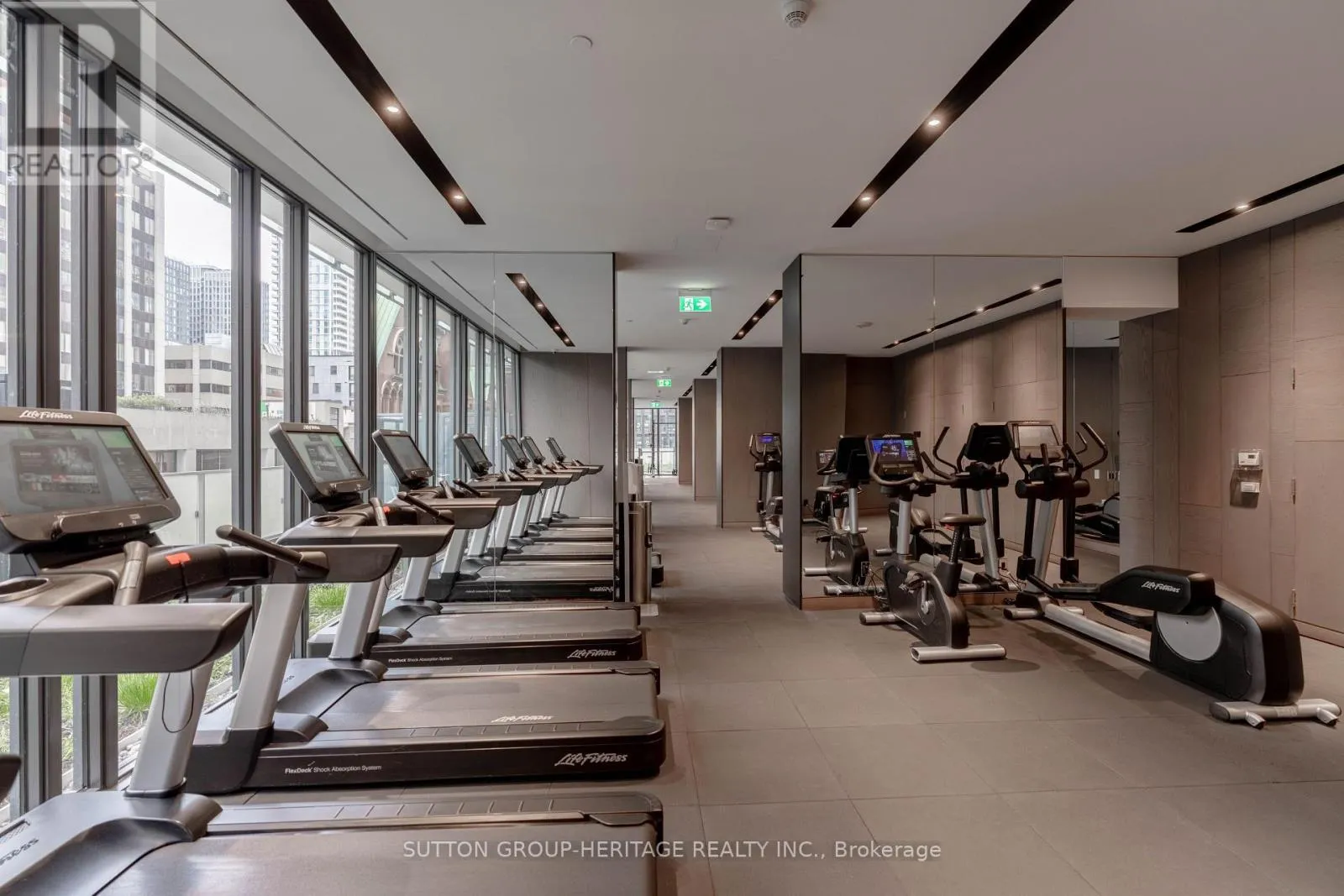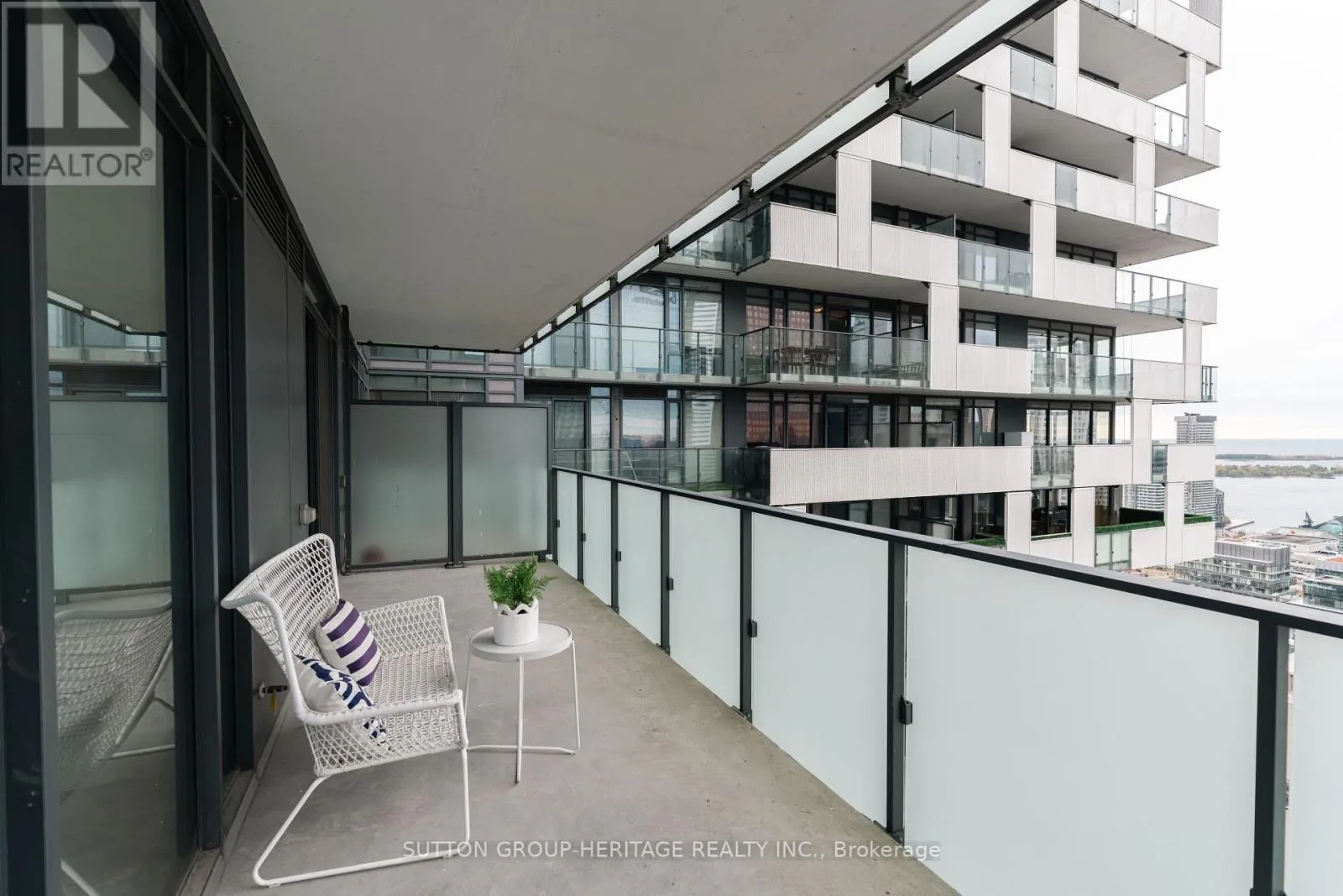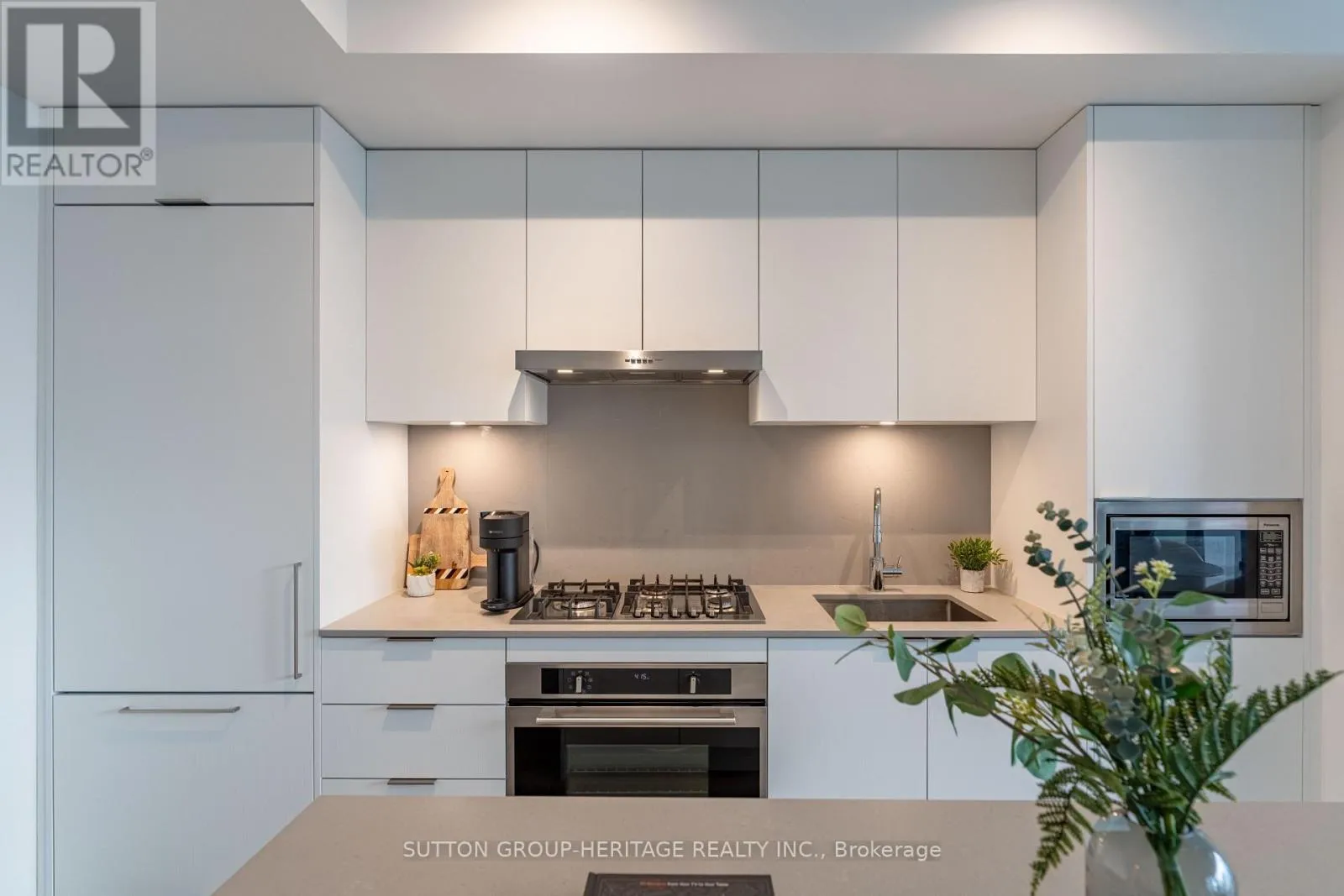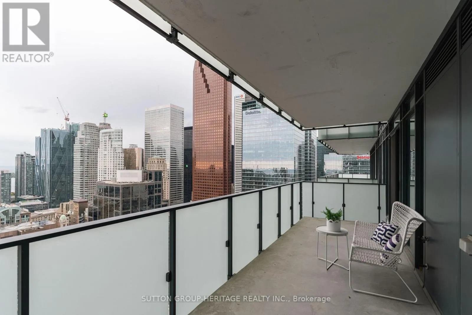 Richmond St. East/Victoria St. Experience luxury living in the heart of downtown Toronto at Great Gulf's iconic 20 Lombard! Perched high above the city on the 40th floor, this stunning south-facing 1 bed + spacious den (with doors), 2 bath residence showcases breathtaking views of Lake Ontario. Thoughtfully designed with high-end finishes throughout, this suite features upgraded wood flooring, 9 ft smooth ceilings, custom cabinetry, and a gourmet kitchen complete with Caesarstone countertops and backsplash, premium European built-in appliances, a gas cooktop, and a sleek centre island-ideal for cooking, dining, and entertaining. The bright and airy open-concept living and dining area is framed by floor-to-ceiling windows, filling the space with natural light and highlighting the modern urban design. Step out onto your expansive 234 sq. ft. balcony with two walkouts, a water line, power outlets, and a built-in gas line-perfect for enjoying morning coffee, evening cocktails, or simply taking in the mesmerizing lake and city views. The spacious den offers flexibility to serve as a comfortable second bedroom, home office, or guest space, adapting effortlessly to your lifestyle. This building has an explicit ban on AirBNB rentals. Residents of 20 Lombard enjoy access to an exceptional array of amenities, two fully equipped fitness centres, two outdoor swimming pools, two lockers for extra storage one conveniently located on the 5th floor, a meeting and party room, quiet study areas, and an expansive rooftop deck and garden with panoramic city views. Perfectly situated, you're just steps from Yonge-Dundas Square, the Toronto Eaton Centre, St. Lawrence Market, and the Distillery District, with King and Queen Street subway and streetcar lines moments away for effortless connectivity across the city. (id:27476)